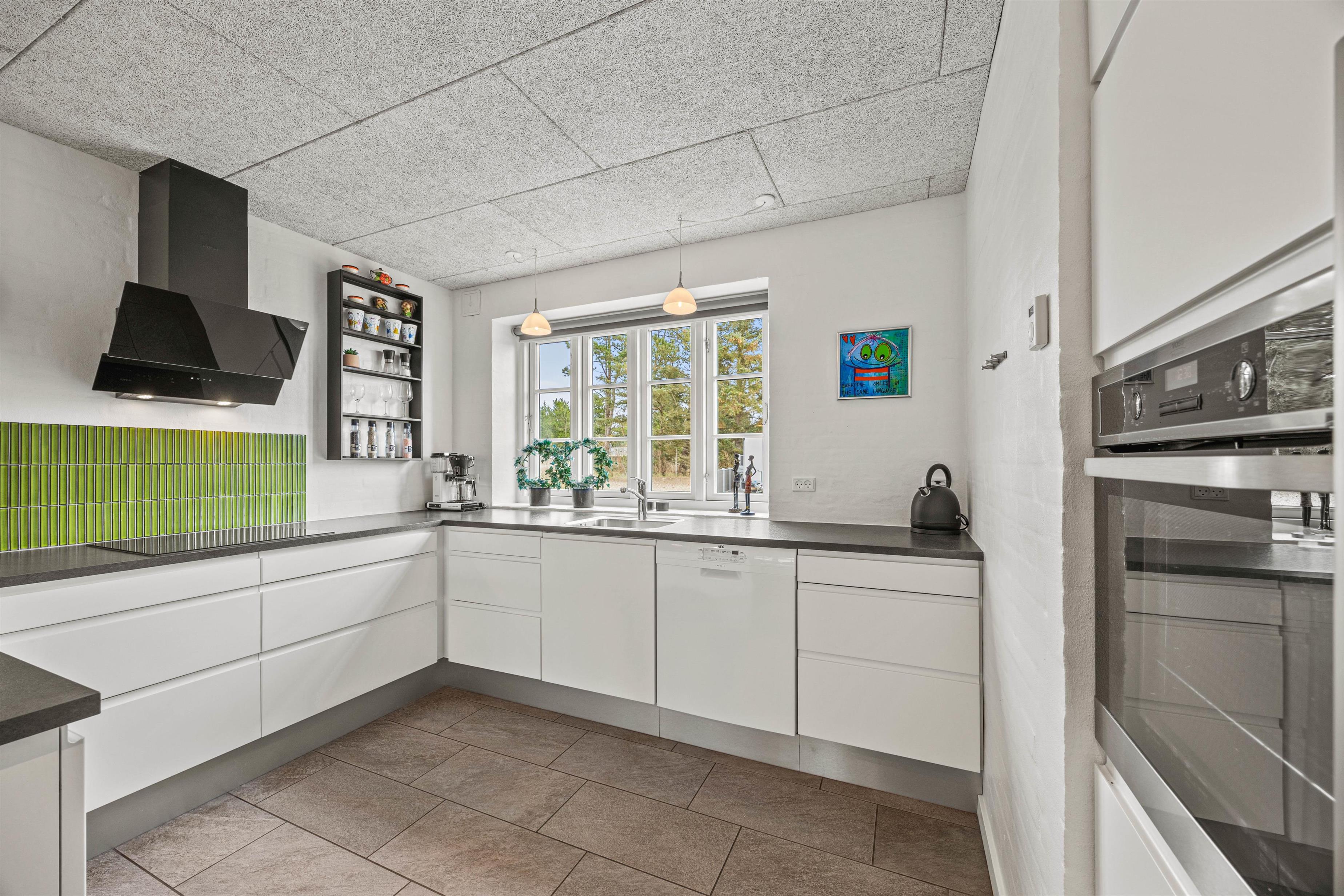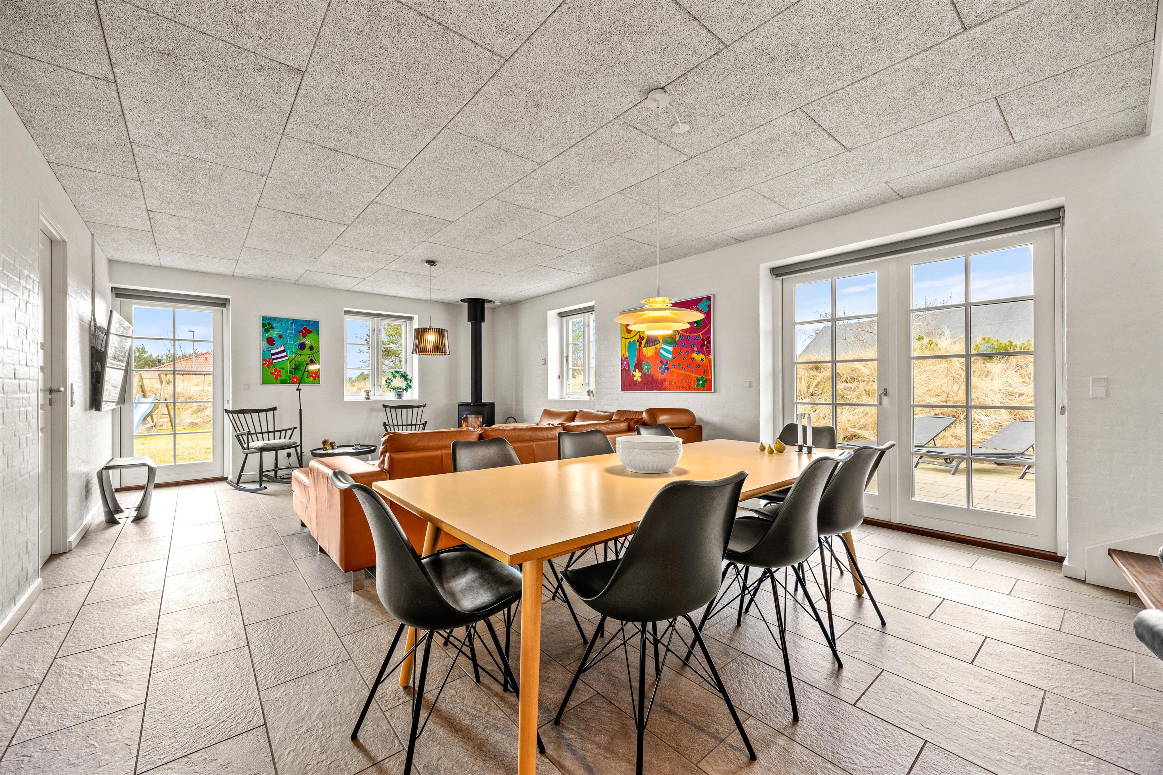 Det åbne opholdsrum er husets hjerte. Her kan I nyde hyggelige aftener ved brændeovnen, der på kølige dage skaber en varm og behagelig atmosfære. Det moderne køkken er udstyret med opvaskemaskine og en rummelig fryser på 90 L, idéel til at tilberede jeres favoritretter og skabe uforglemmelige kulinariske oplevelser. Spisebordet har plads til alle, så I kan nyde dejlige feriemåltider sammen og se dagen forløbe i samtalens lys.