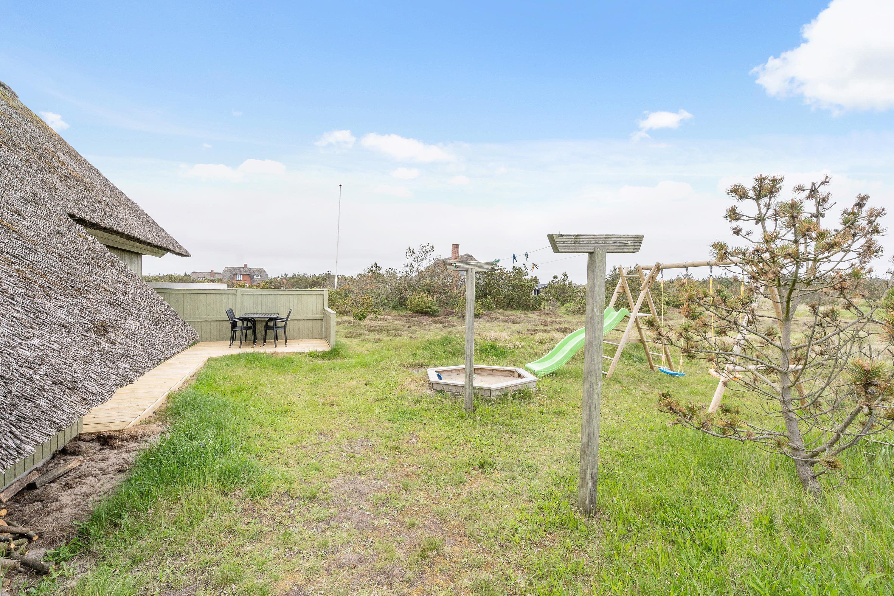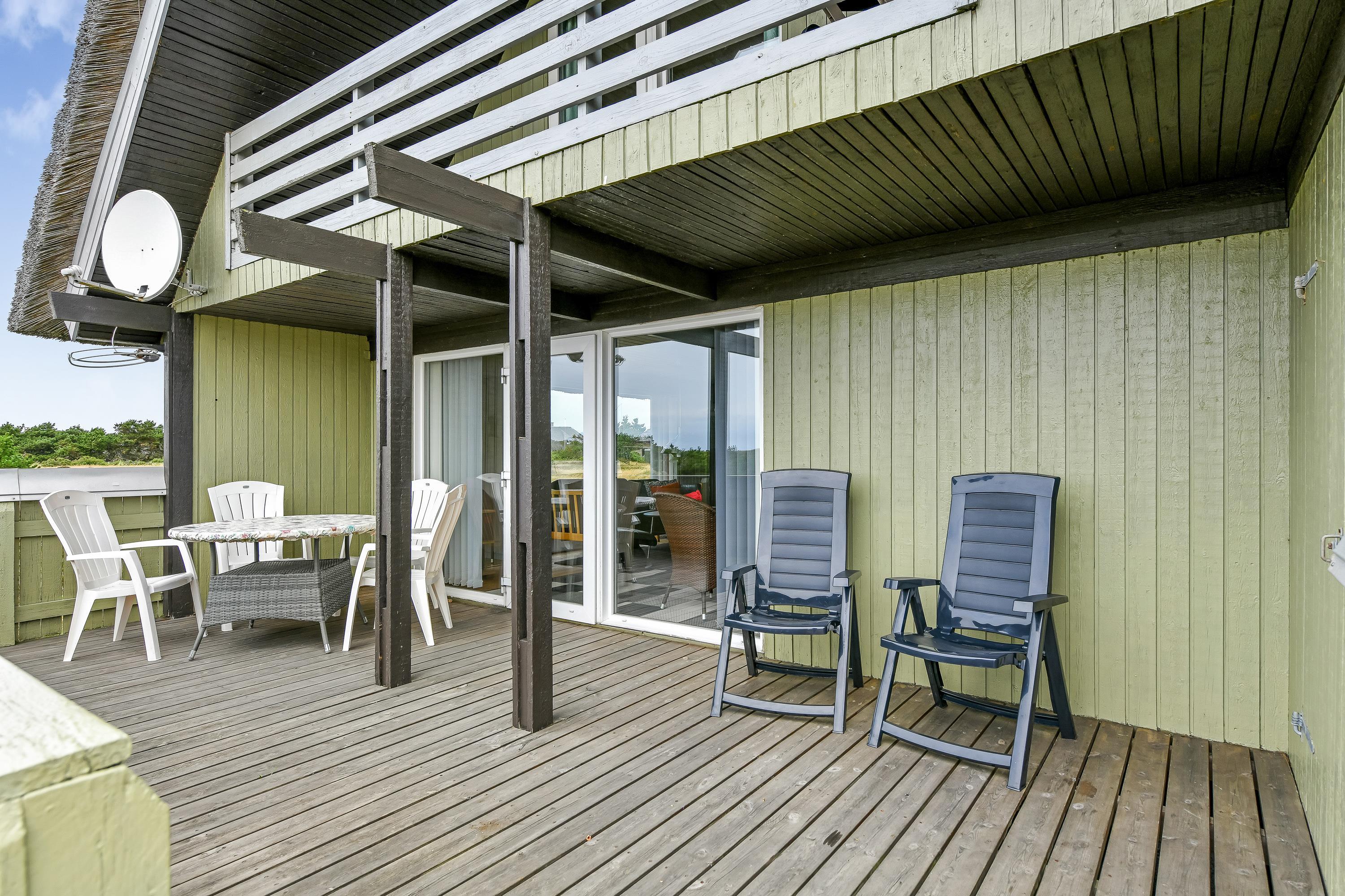Fra stuen kommer I ud på feriehusets afskærmede og delvist overdækkede terrasse. Havemøbler, liggestole og grill står til rådighed, så I kan nyde solskinsdagene og slutte dagen af med en hyggelig grillaften, mens solen langsomt forsvinder ned i horisonten.