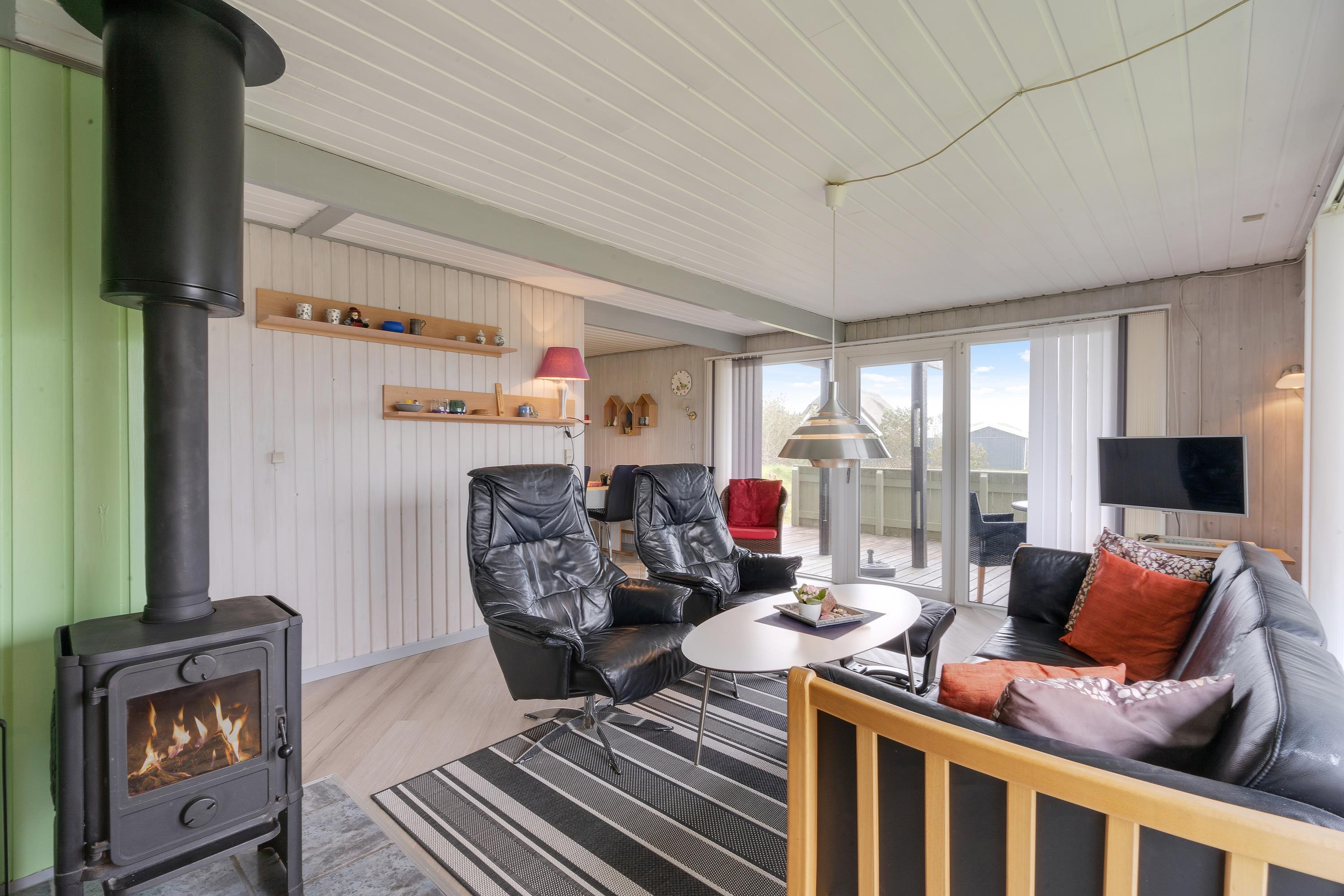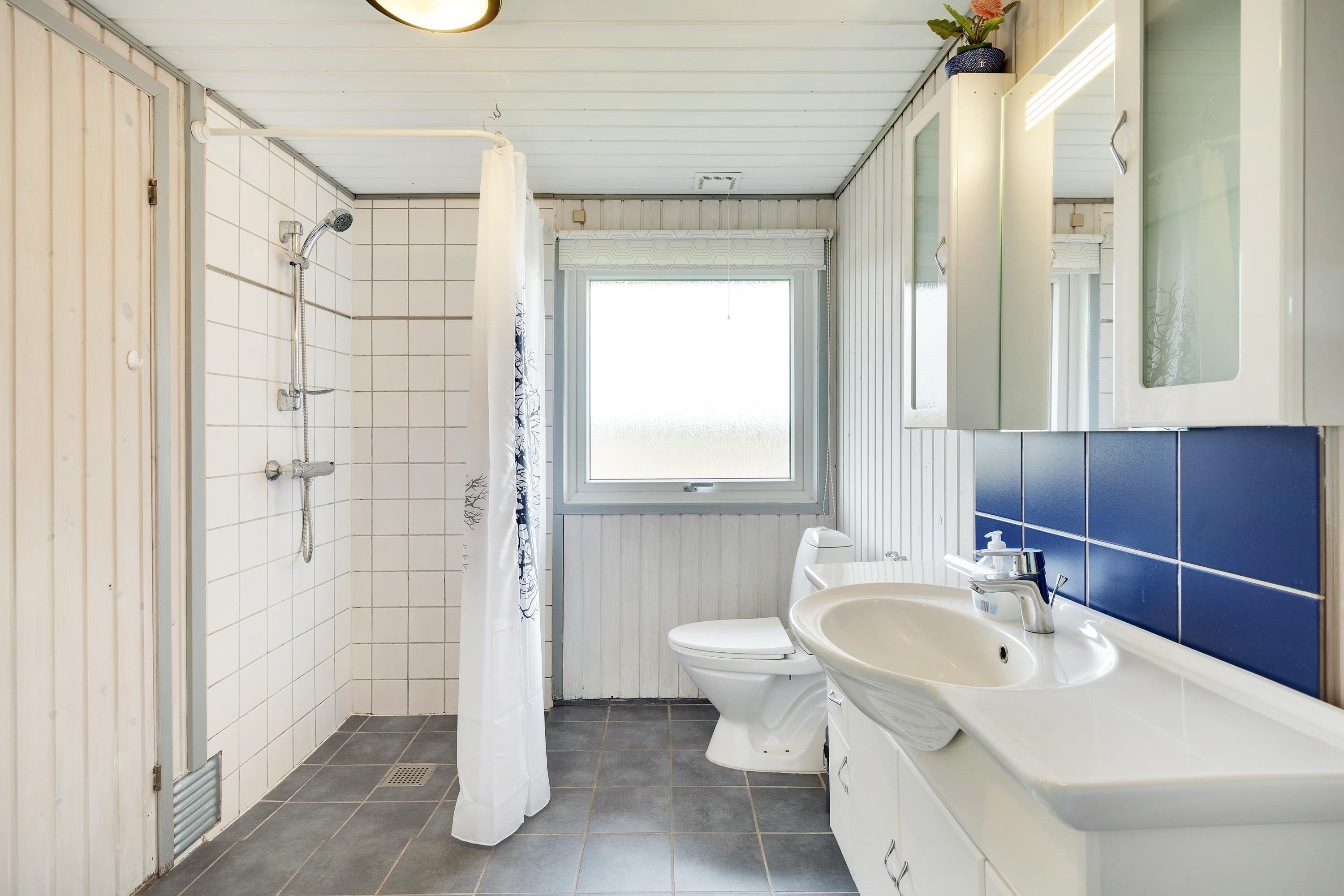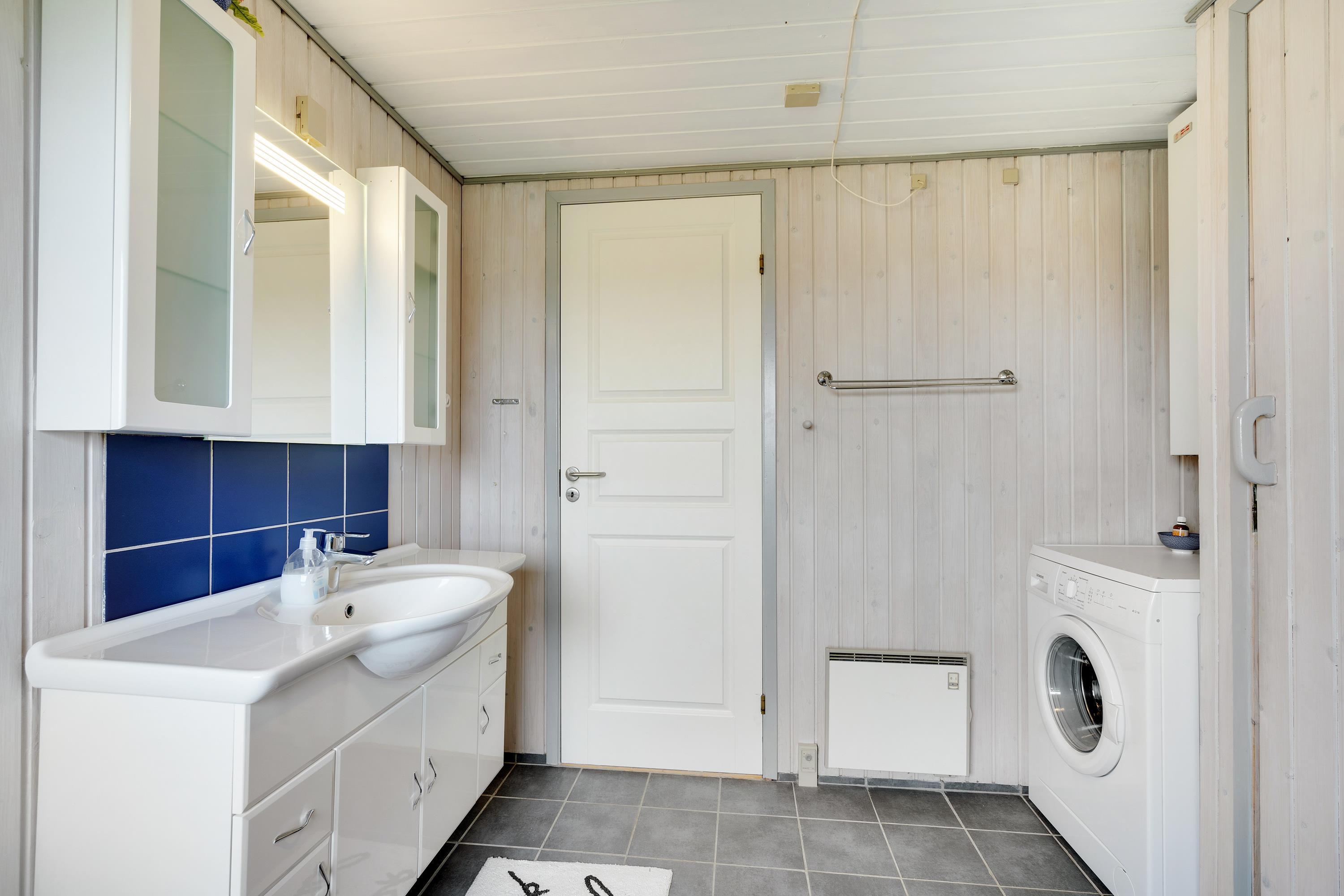 Sommerhusets badeværelse er udstyret med gulvvarme, og herfra er der også adgang til saunaen, som giver jer mulighed for svede hverdagens stress ud på ferien. Brændeovnen i stuen sørger for god, klassisk feriestemning.