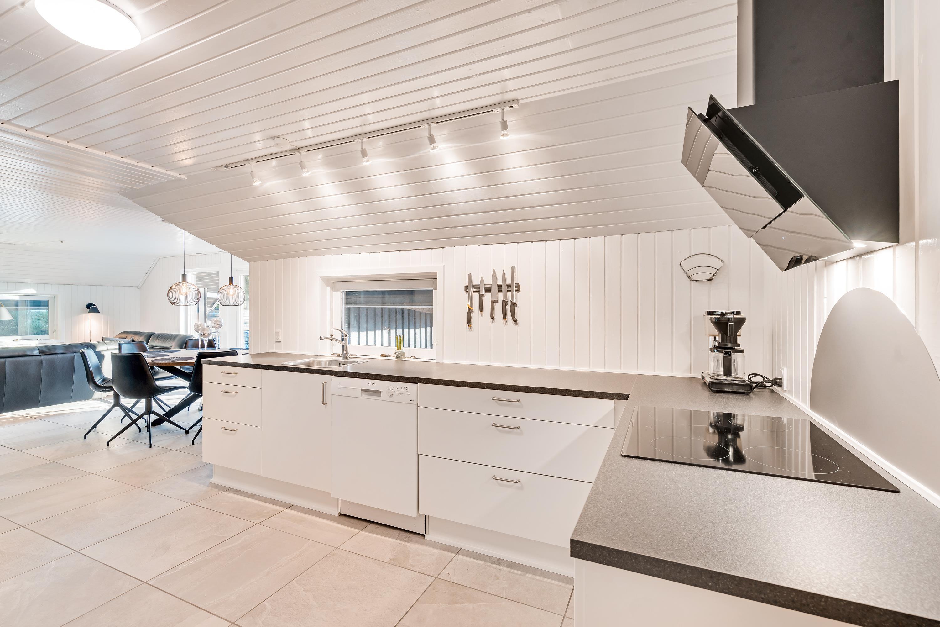 Også i sommerhusets opholdsrum kan I nyde mange sjove og hyggelige feriestunder sammen. I kan samle jer i sofaerne til en god film, når der skal lidt ro på, mens brændeovnen knitrer i baggrunden.