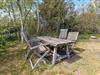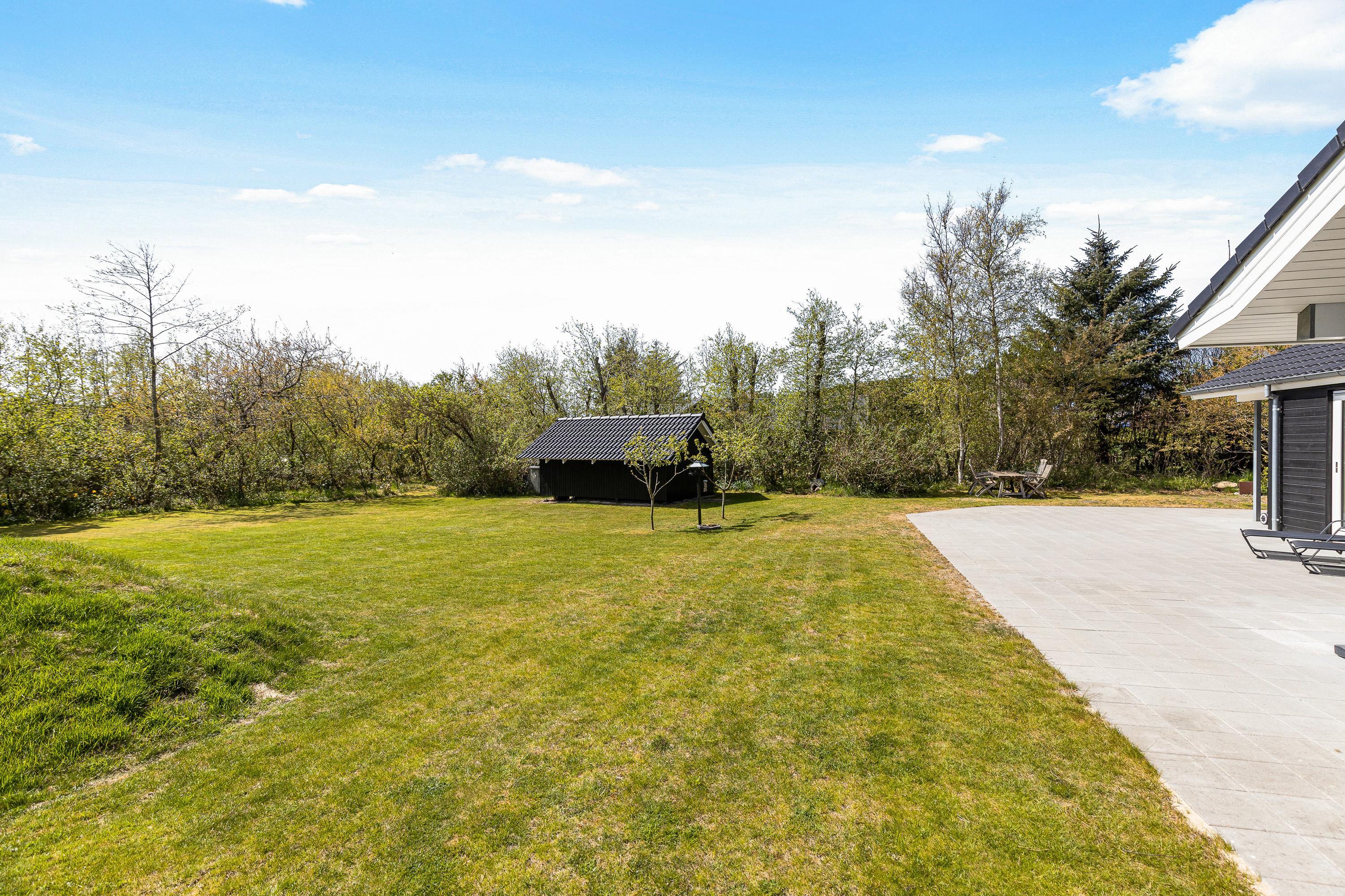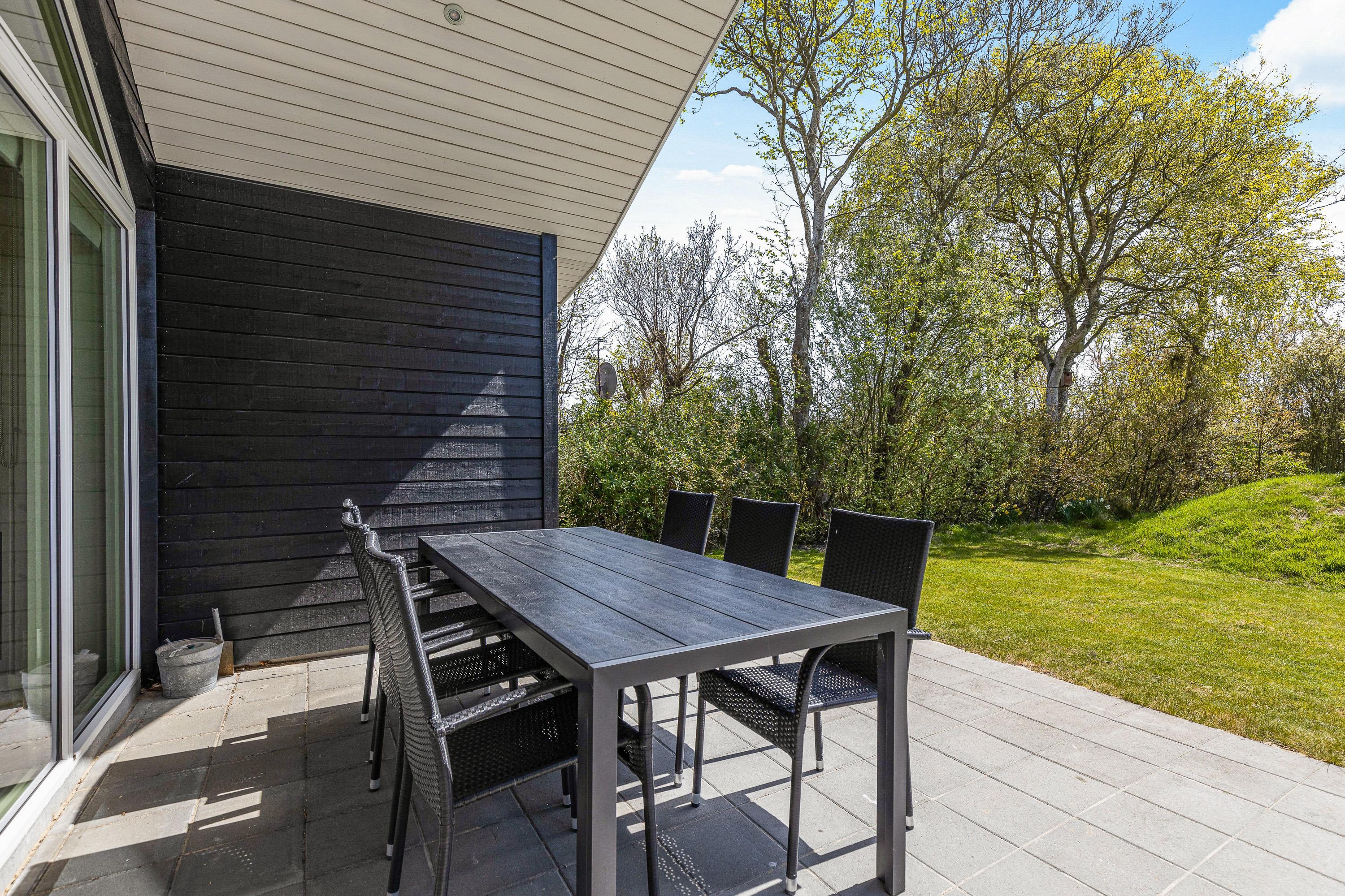 Feriehuset i Blåvand har en skøn, delvist overdækket terrasse, hvor I både kan finde en plads i solen og i skyggen. Havemøbler, liggestole og en grill står til rådighed, så I kan udnytte hver en solstråle på de gode sommerdage, og selv på en regnfuld dag kan I tilberede et lækkert grillmåltid under terrassens overdækkede del. I sommermånederne er der desuden en udebruser til rådighed.