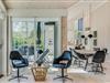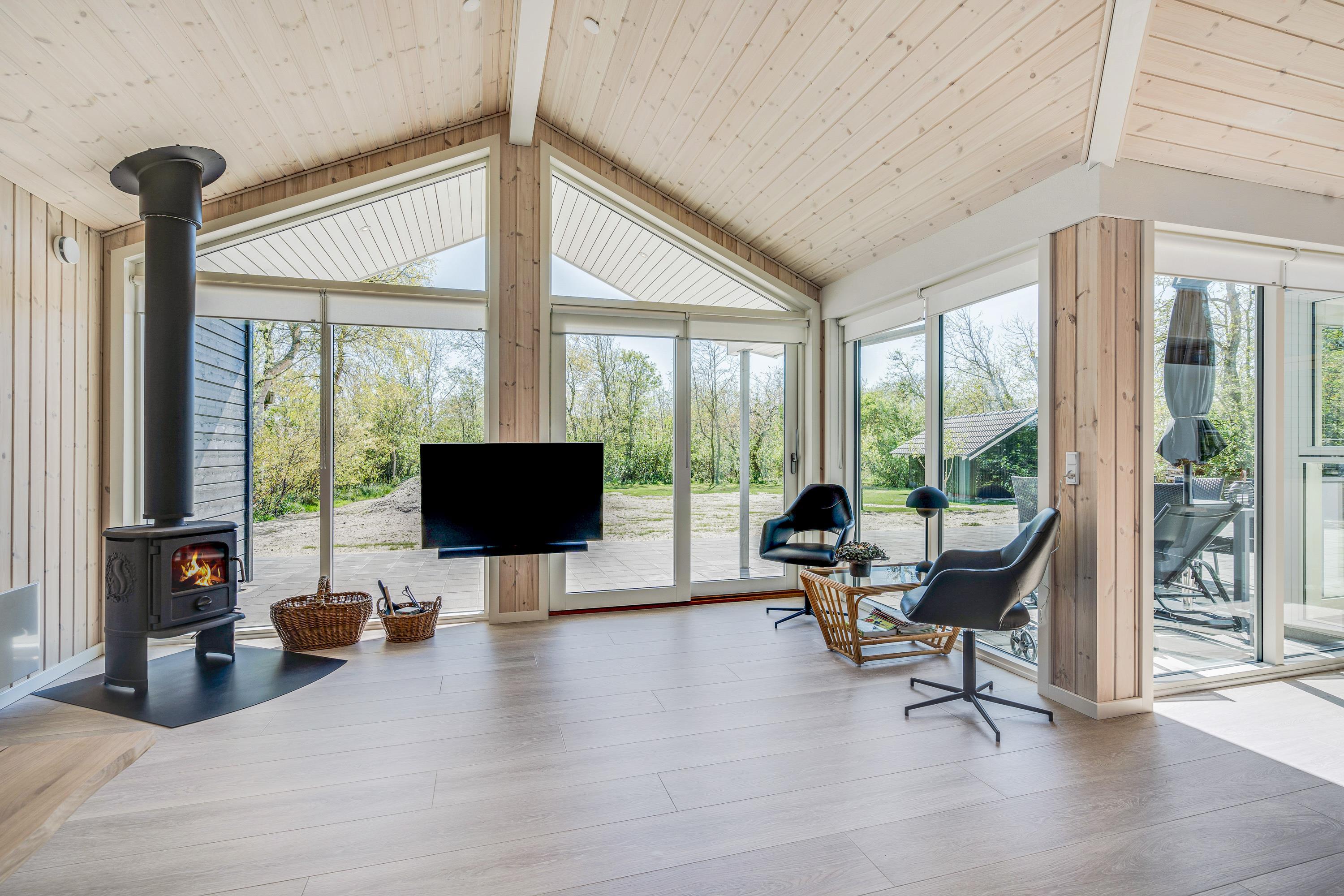 I det åbne opholdsrum kan I samles til masser af hyggelige feriestunder med fælles madlavning, gode middage og afslappende aftener på sofaen foran den knitrende brændeovn. De store vinduespartier sørger for et dejligt lysindfald og en flot udsigt til det naturskønne ferieområde, og der er flere udgange til terrassen.