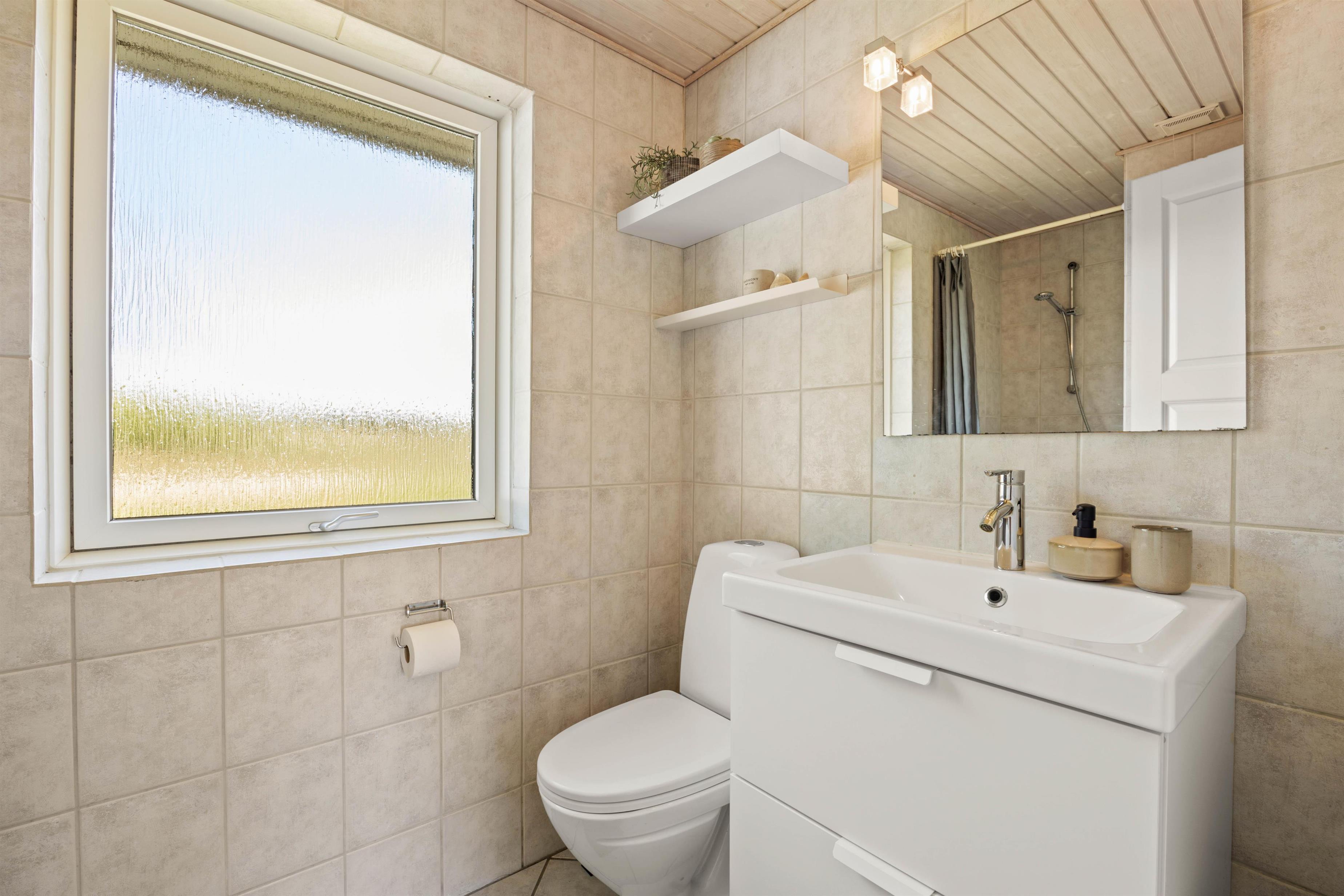 Efter en dejlig feriedag i Blåvand kan I søge mod sommerhusets 3 soveværelser for at samle ny energi. To soveværelser er indrettet med dobbeltsenge og det tredje med 2 enkeltsenge. Når I står op næste morgen, slipper I for kolde tæer takket være gulvvarmen på badeværelset.