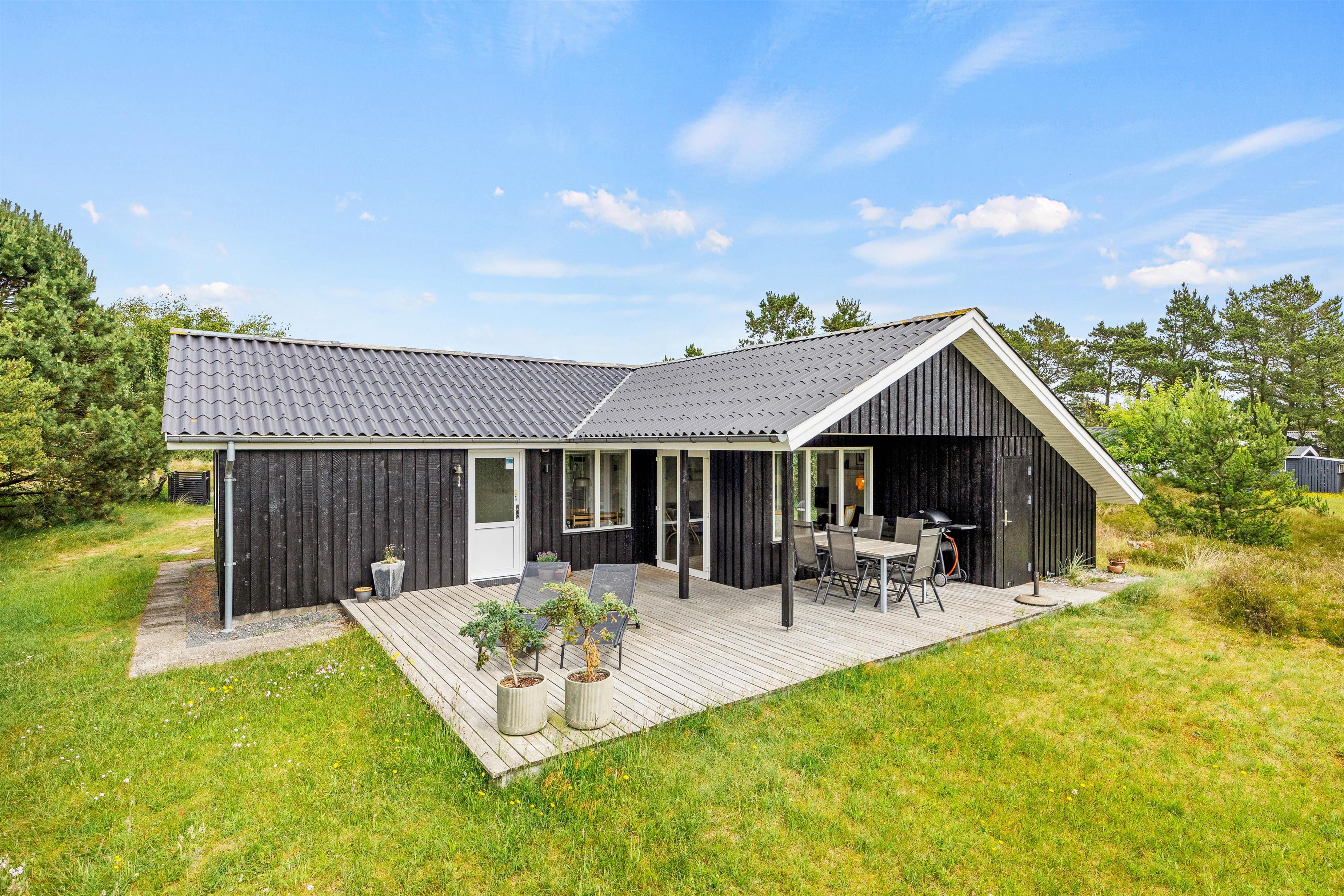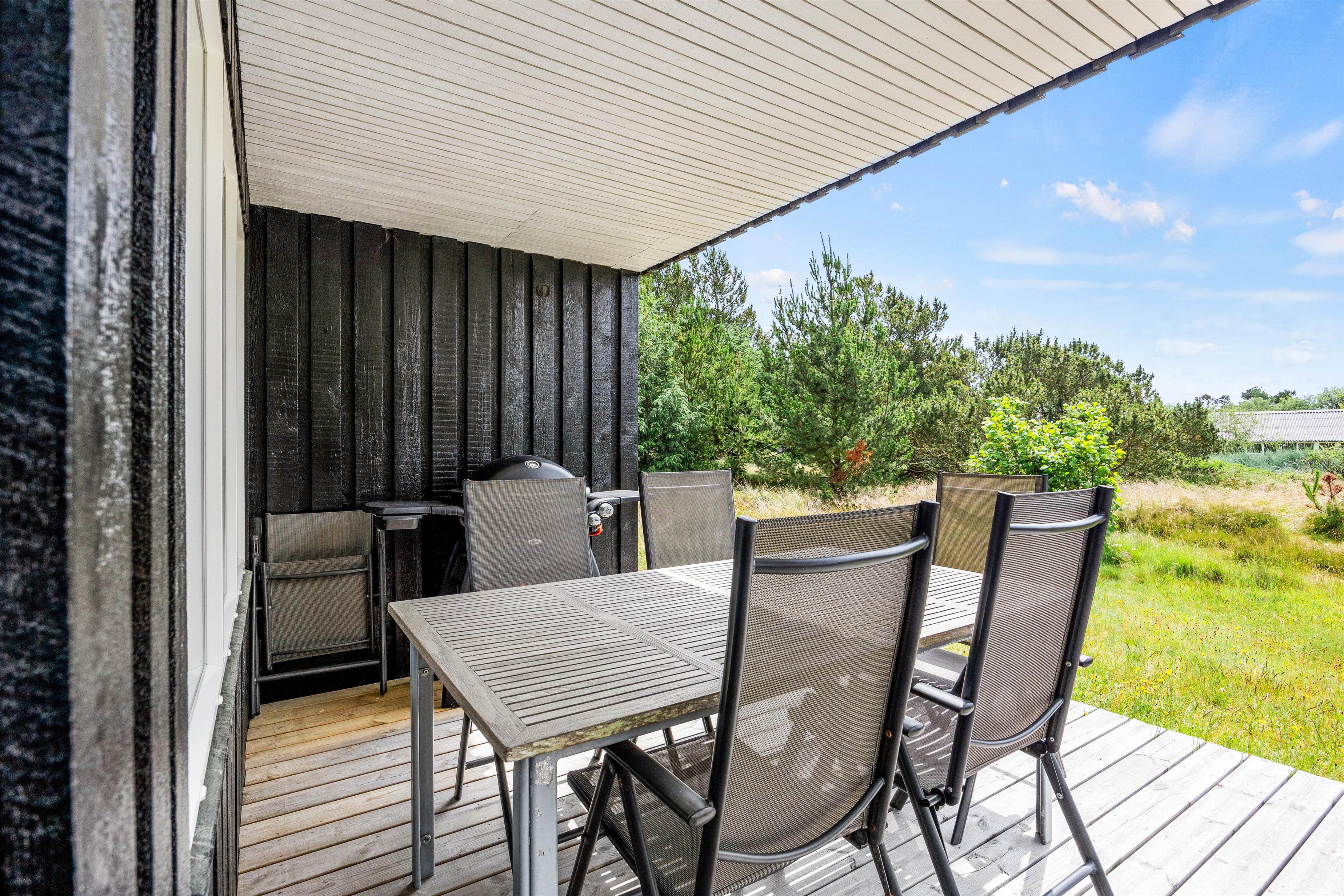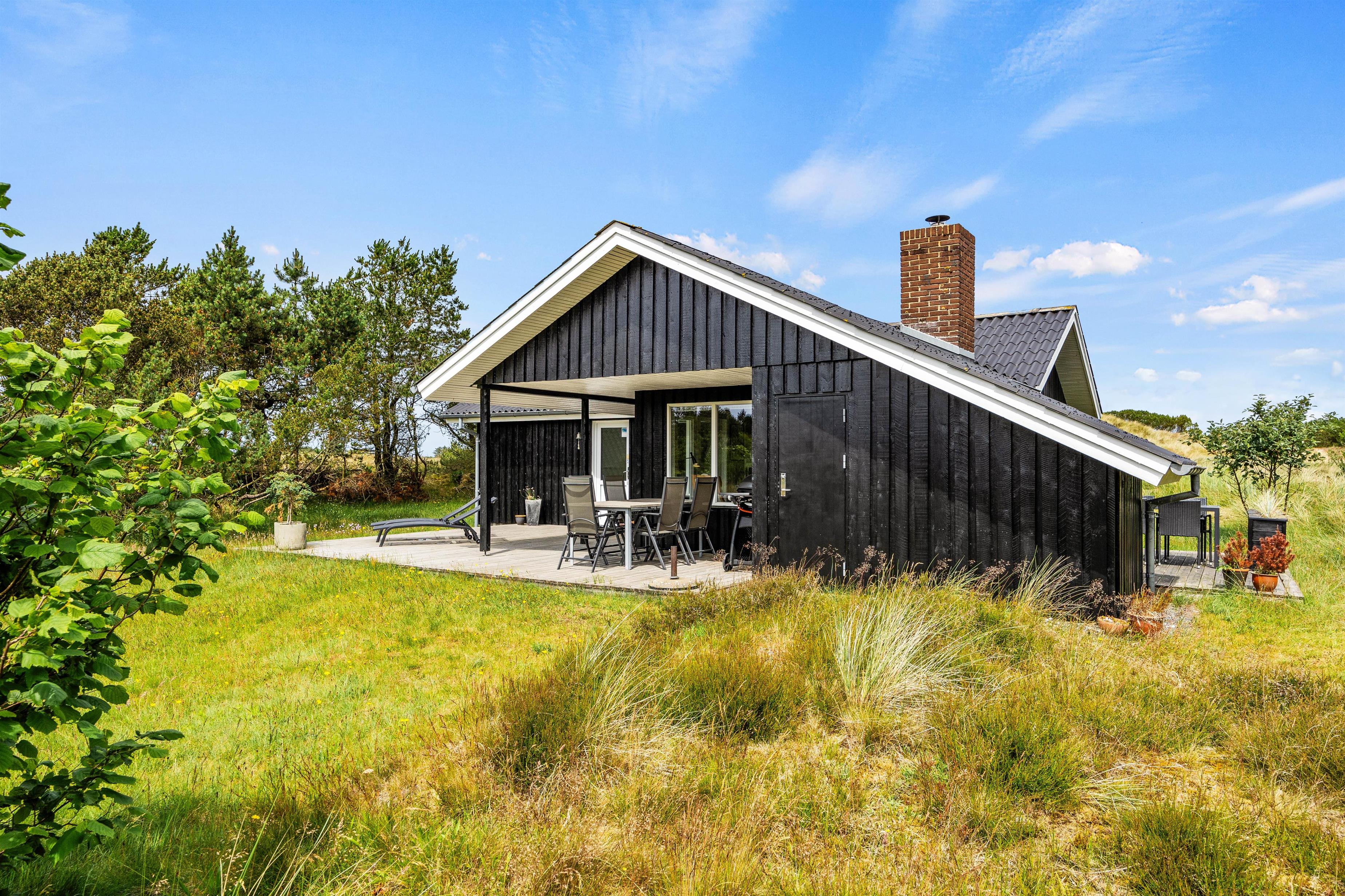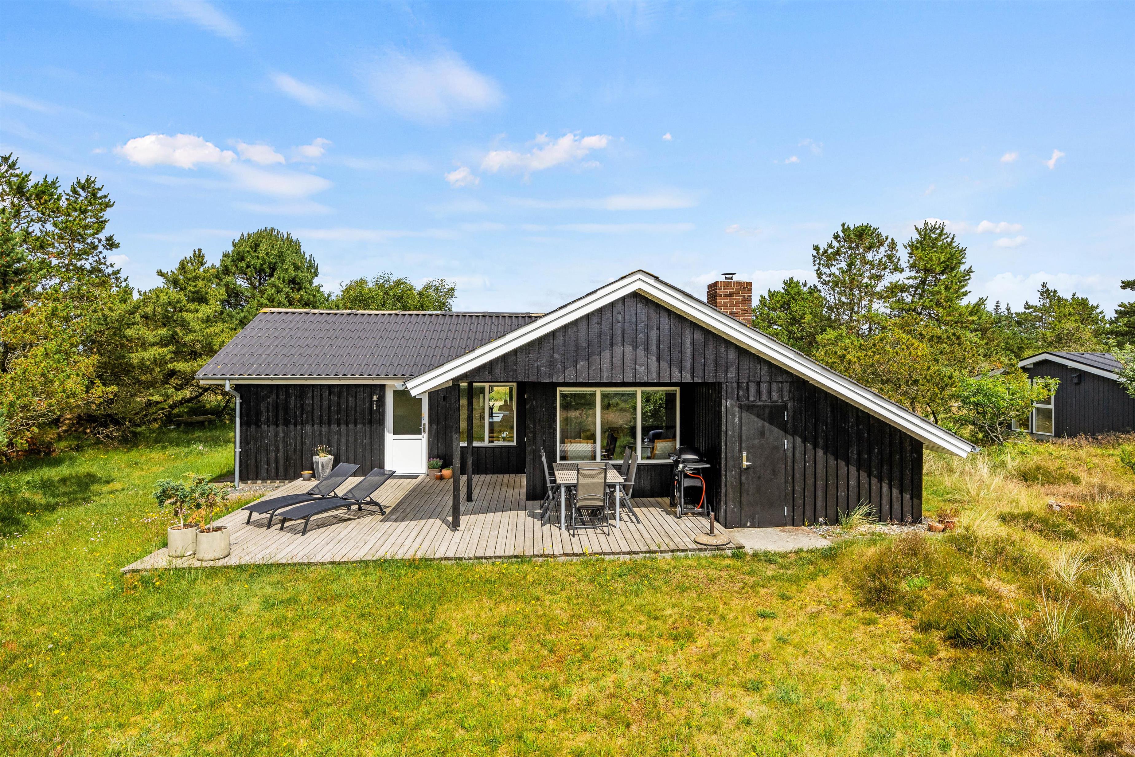 På de solrige dage kan I flytte ferien ud på sommerhusets terrasser. Her har I både havemøbler og liggestole til rådighed, så I kan finde jer godt til rette på en plads i solen, hvor I virkelig kan nyde varmen og lyden af fuglefløjt i baggrunden.