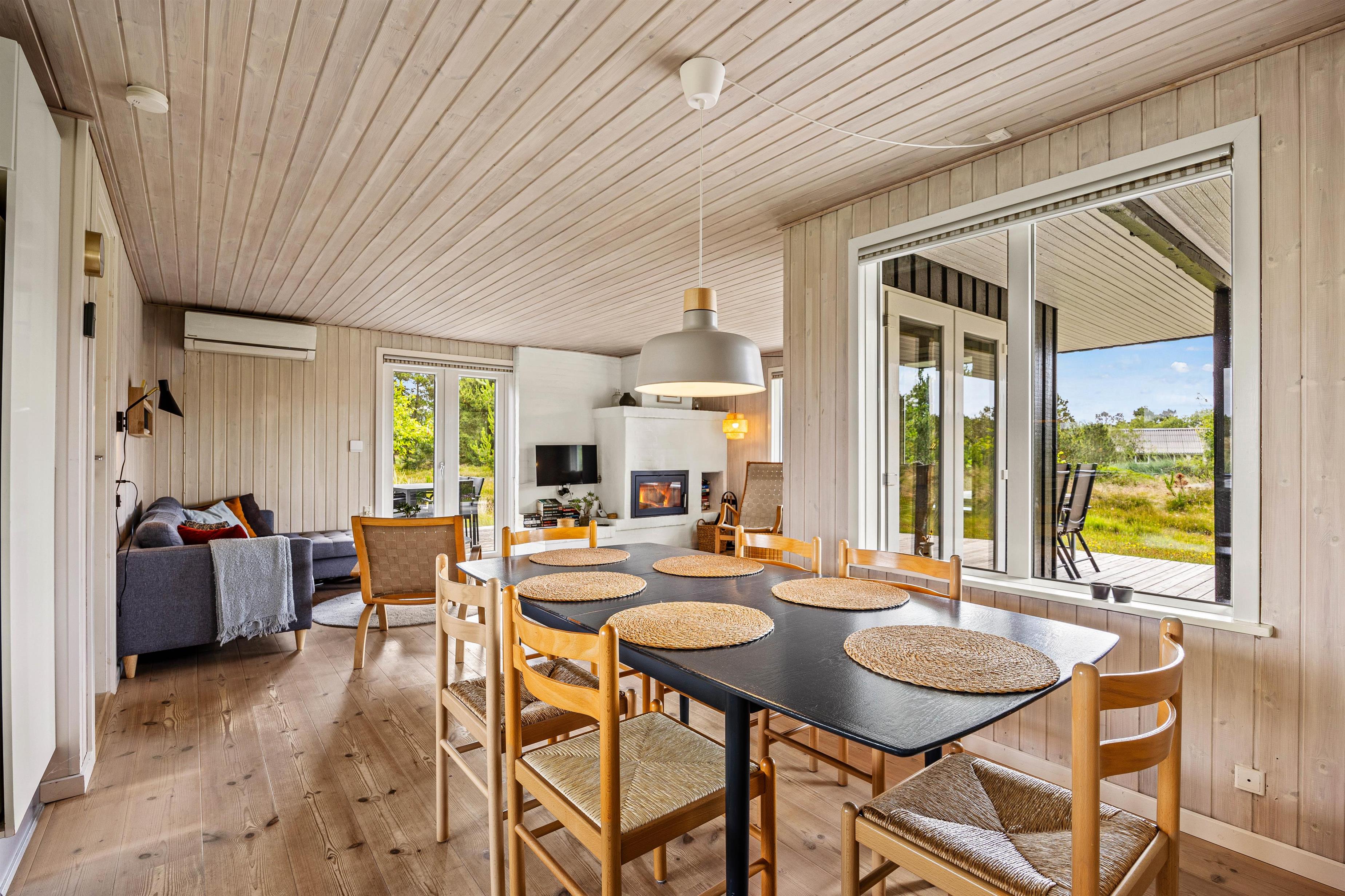 Alrummet udgør sommerhusets hjerte og jeres samlingspunkt, hvor I kan samles til både madlavning, sjove spil og gode film. Her sørger brændeovnens knitrende flammer og varme for, at feriestemningen bliver fuldendt.