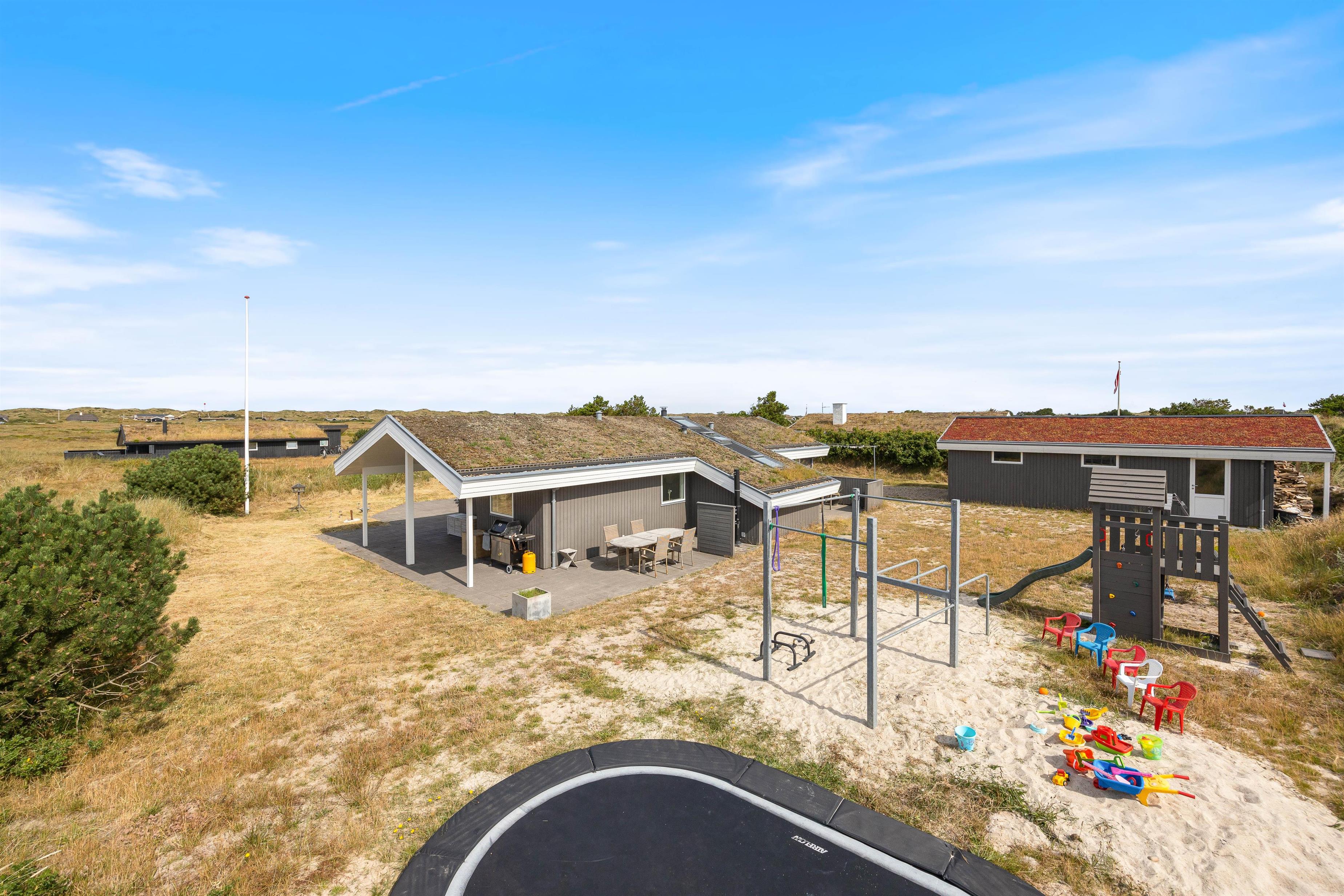 På feriens varme dage kan I rykke udendørs, hvor der venter jer et udeområde, der byder på noget for både store og små. Feriens yngste gæster kan se frem til at hoppe på trampolin og lege i legetårn med gyngestativ. I garagen er der træningsudstyr til både de store børn og voksne, som kan bruges udenfor sammen med træningsstativet.