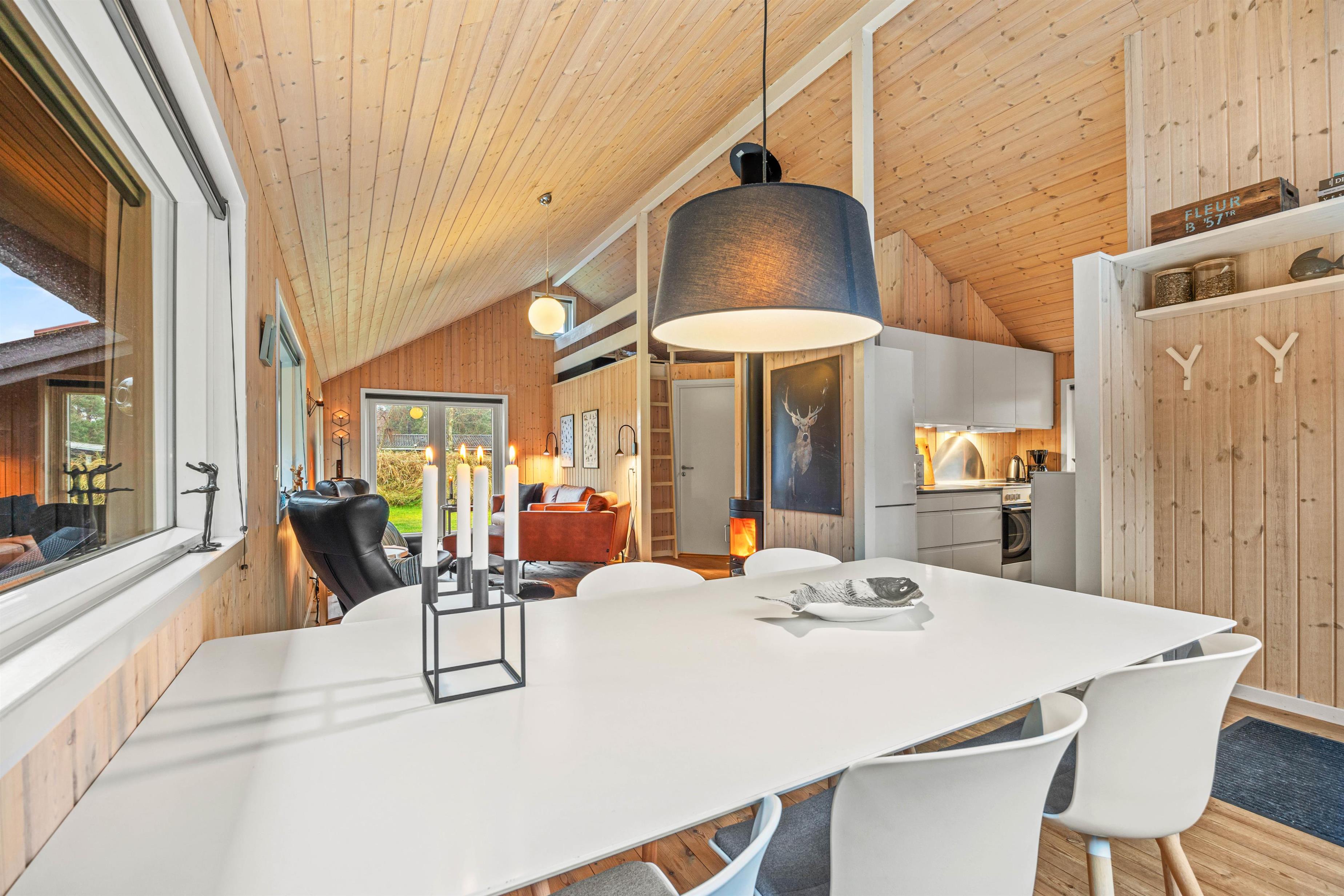 På Gl. Mælkevej 31 er rammerne sat for en klassisk sommerhusferie i det vestjyske. Her har det været helt centralt, at I skal føle jer godt hjemme, og det kan mærkes i den enkle, men fine og hyggelige indretning, hvor klassiske elementer som brændeovn og lyse træfacader er blandet med moderne, komfortable møbler og fine, nordiske nipsting og billeder for at skabe den helt perfekte feriestemning.