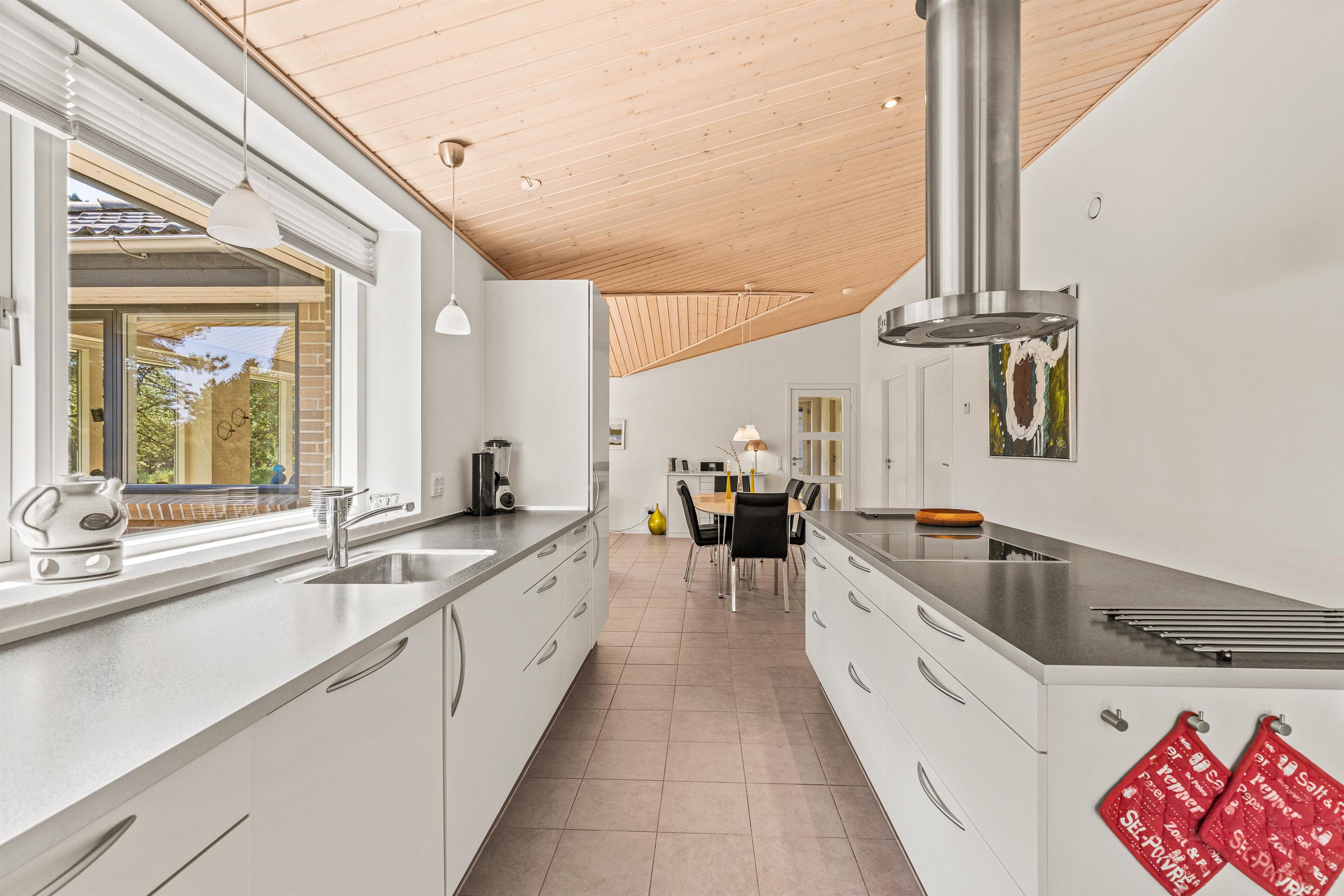 Jeres store samlingspunkt i feriehuset bliver utvivlsomt alrummet, hvor køkkenet er forenet med spisepladsen og stuen. Her er rammerne altså virkelig sat for hyggelige feriestunder.
