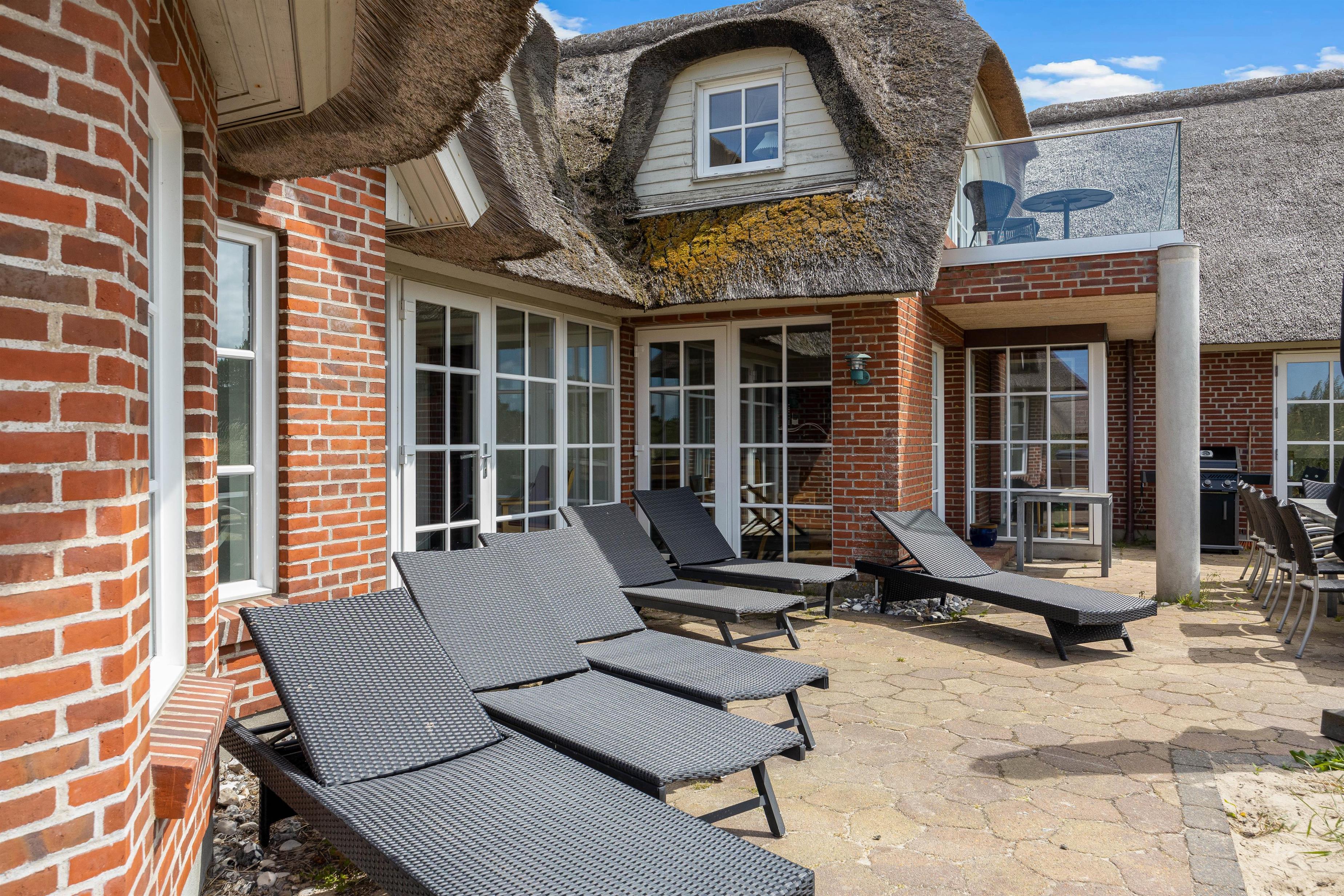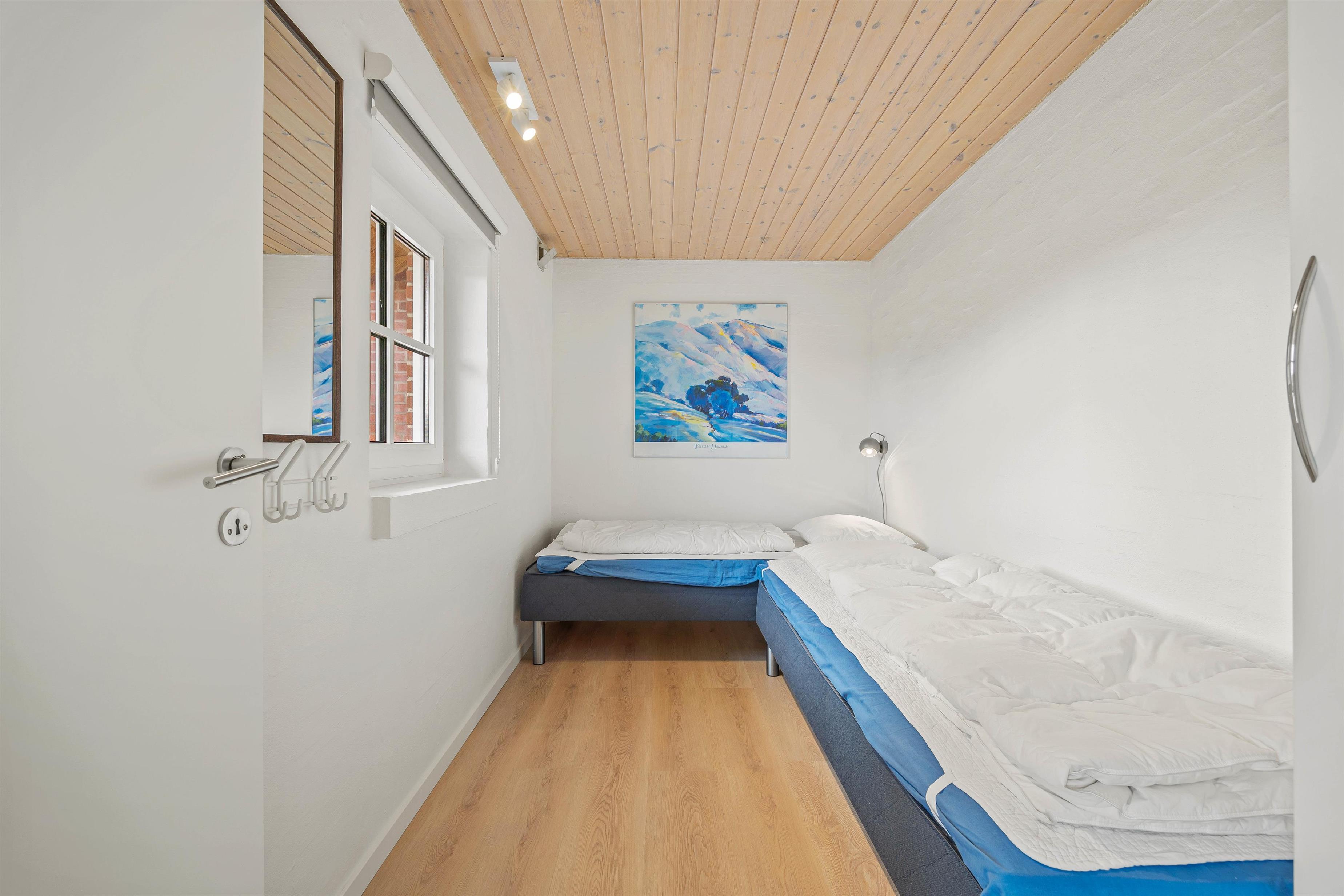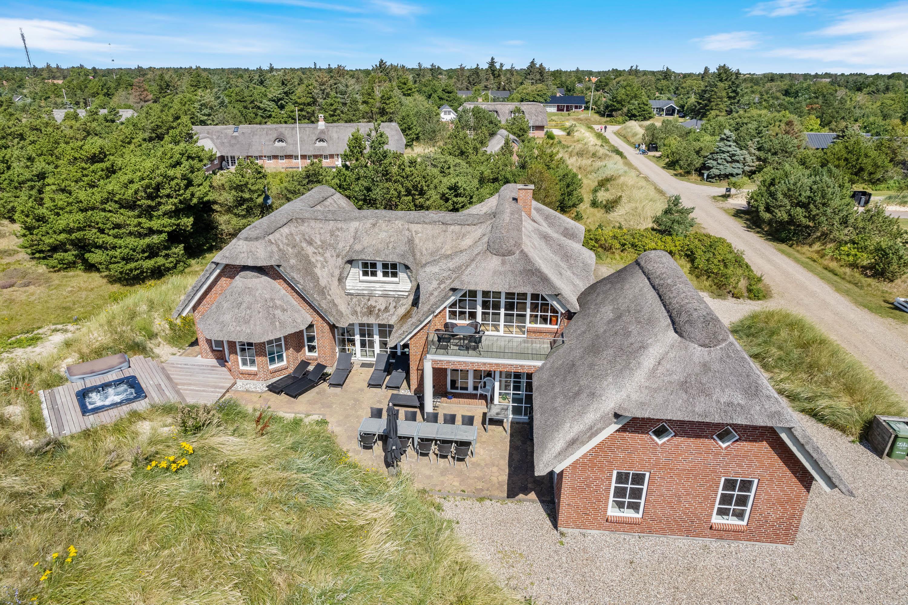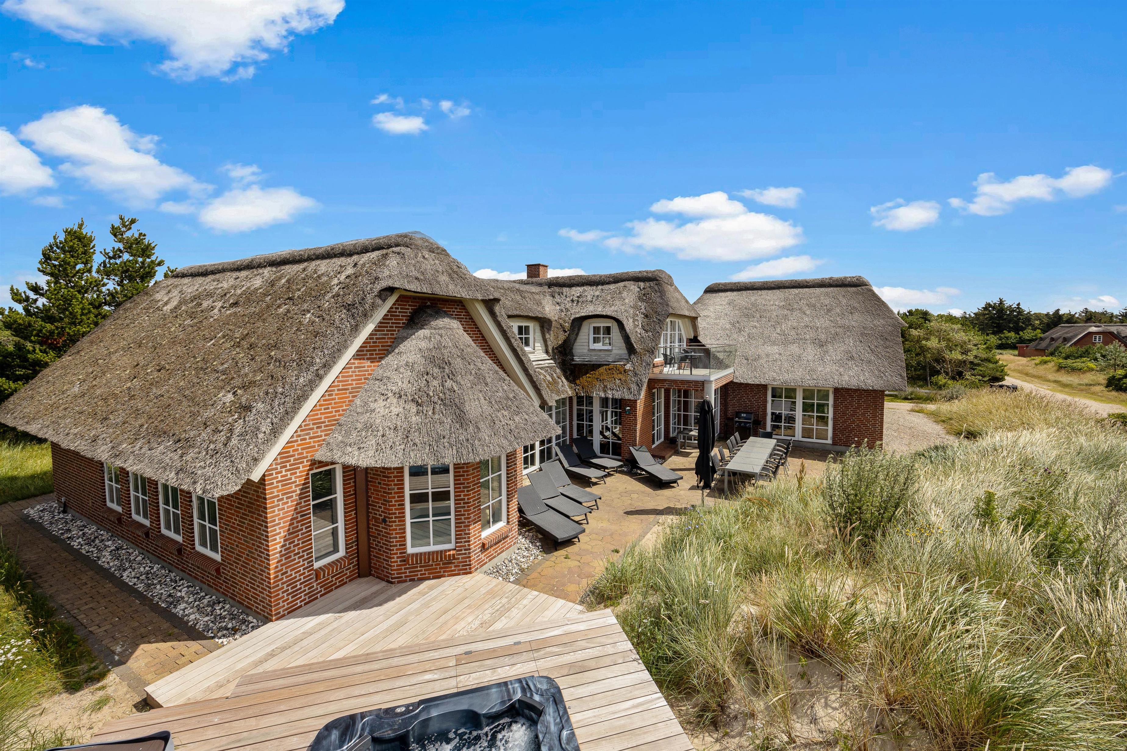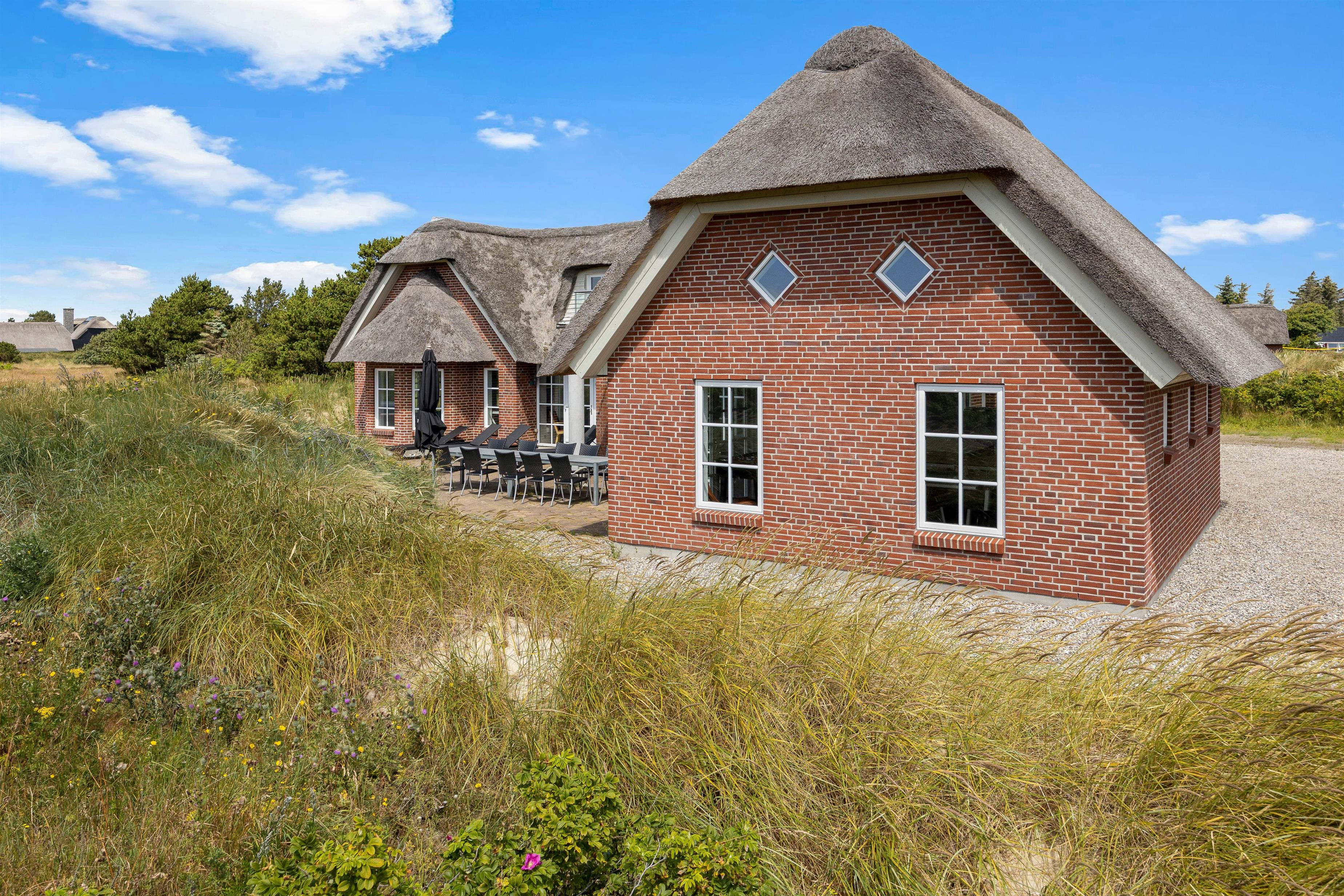 Sommerhuset er særdeles velindrettet, så der er god plads til alle 12 feriegæster. På feriehusets 2 etager finder I 6 soveværelser, 2 badeværelser med gulvvarme og 1 gæstetoilet. Fra stuen på førstesalen kan I træde ud på en altan, hvorfra I kan nyde en dejlig udsigt over området.