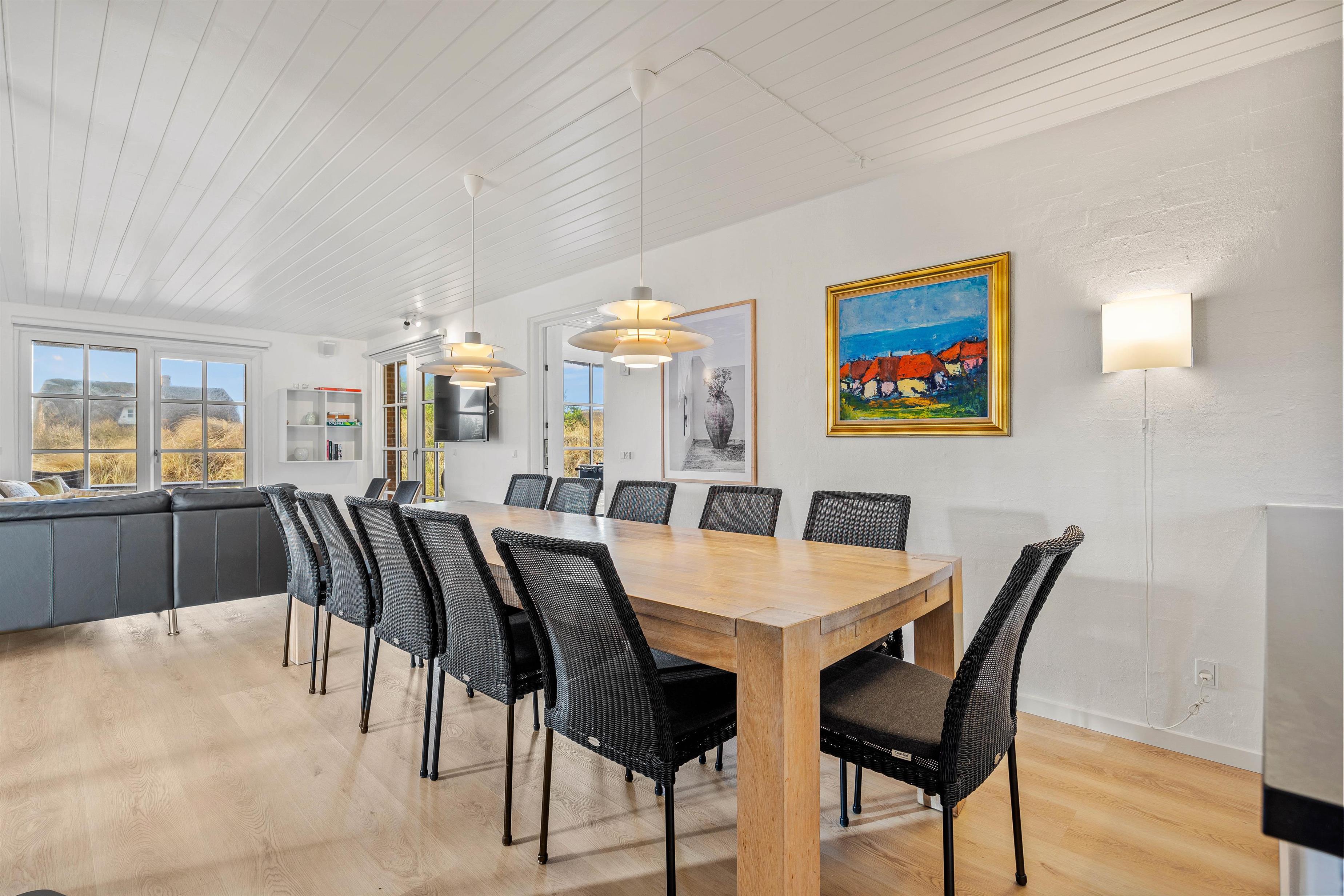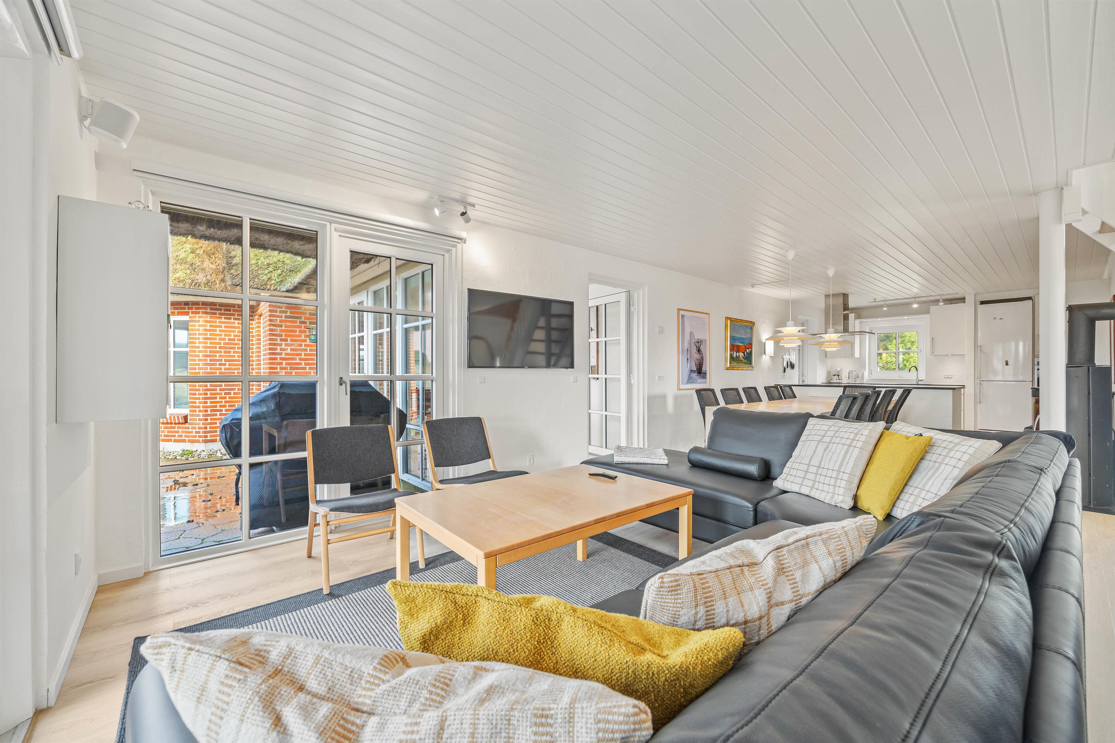 Hjertet i feriehuset er det store lyse opholdsrum, hvor køkken, stue og spiseafdeling er samlet i ét rum. Her kan I nyde hinandens selskab, selv når nogle sørger for maden i køkkenet og andre ser tv i stuen. Desuden er der også en stue på førstesalen, hvor der også er både sofaer og tv.