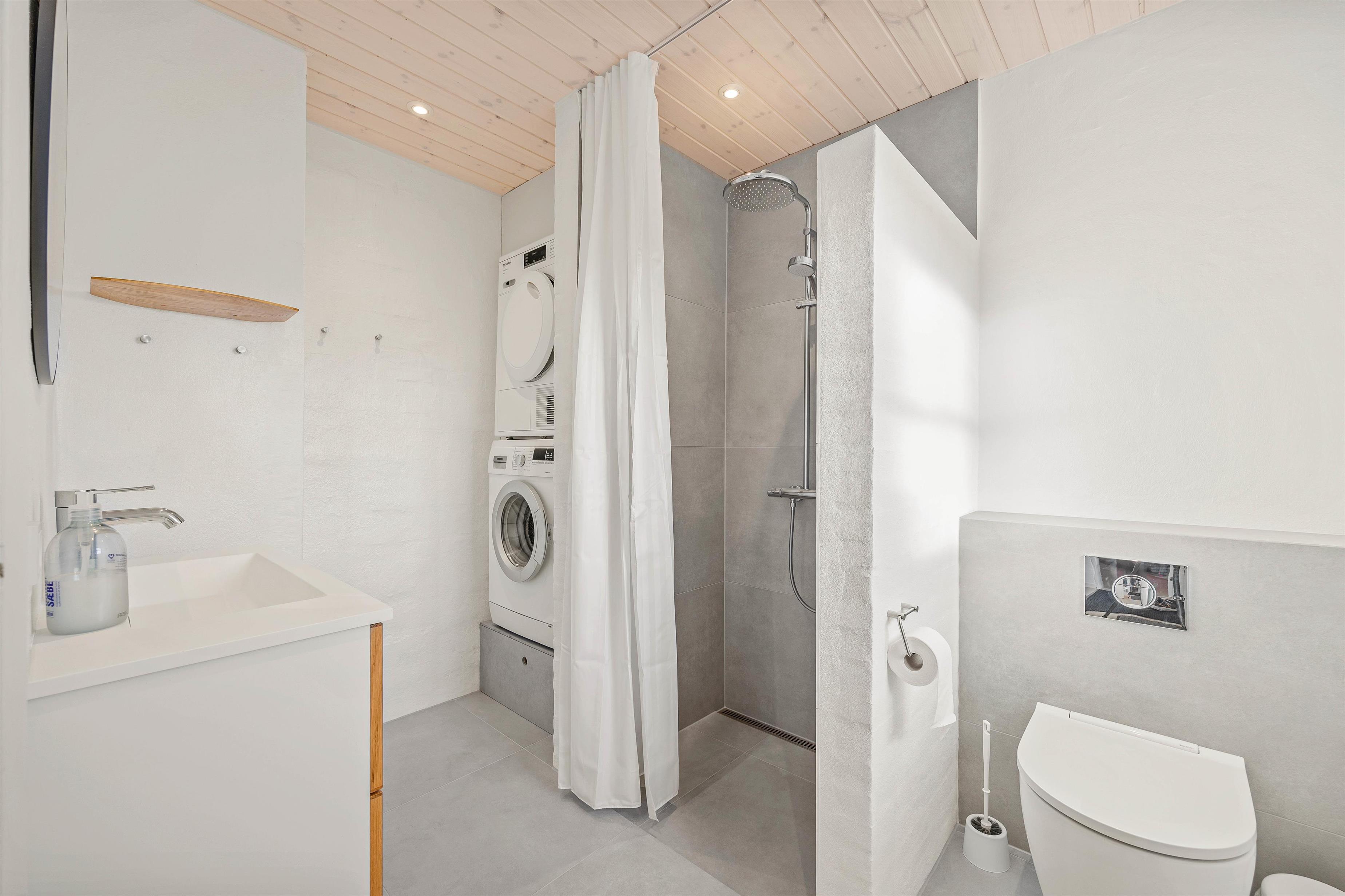 I sommerhuset har I alle de praktiske faciliteter, I måtte have brug for på ferien. I køkkenet står opvaskemaskinen klar til at klare opvasken for jer, mens vaskemaskinen og tørretumbleren klarer tøjvasken på det ene af badeværelserne.