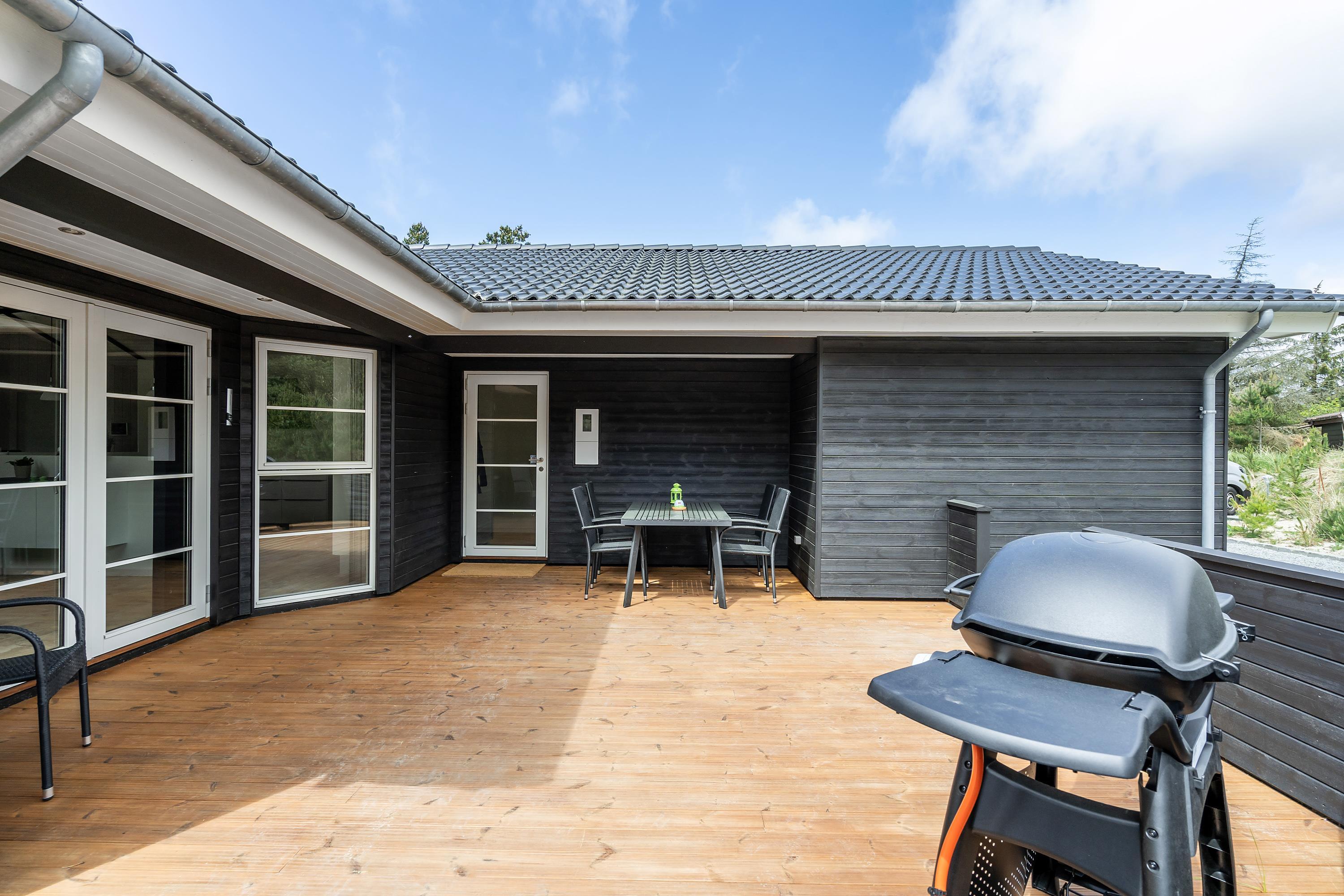 På den delvist overdækkede og læfuldte terrasse kan I tilbringe nogle skønne grillaftener og nyde den friske havluft, mens solen langsomt sænker sig ned i Vesterhavet. Der er naturligvis også mulighed for at fordybe sig i en god bog eller tage sig en lur på terrassens solvogne.