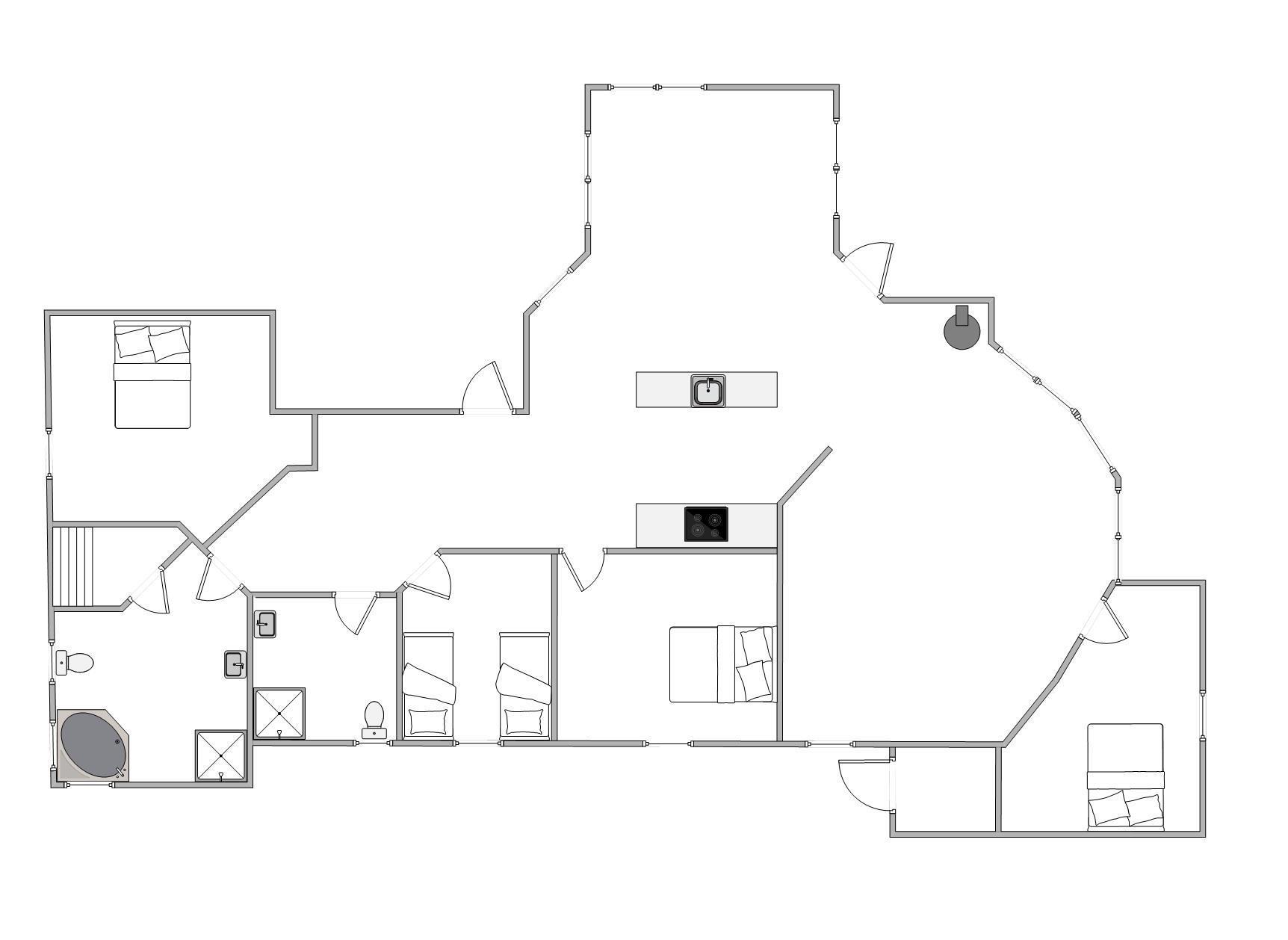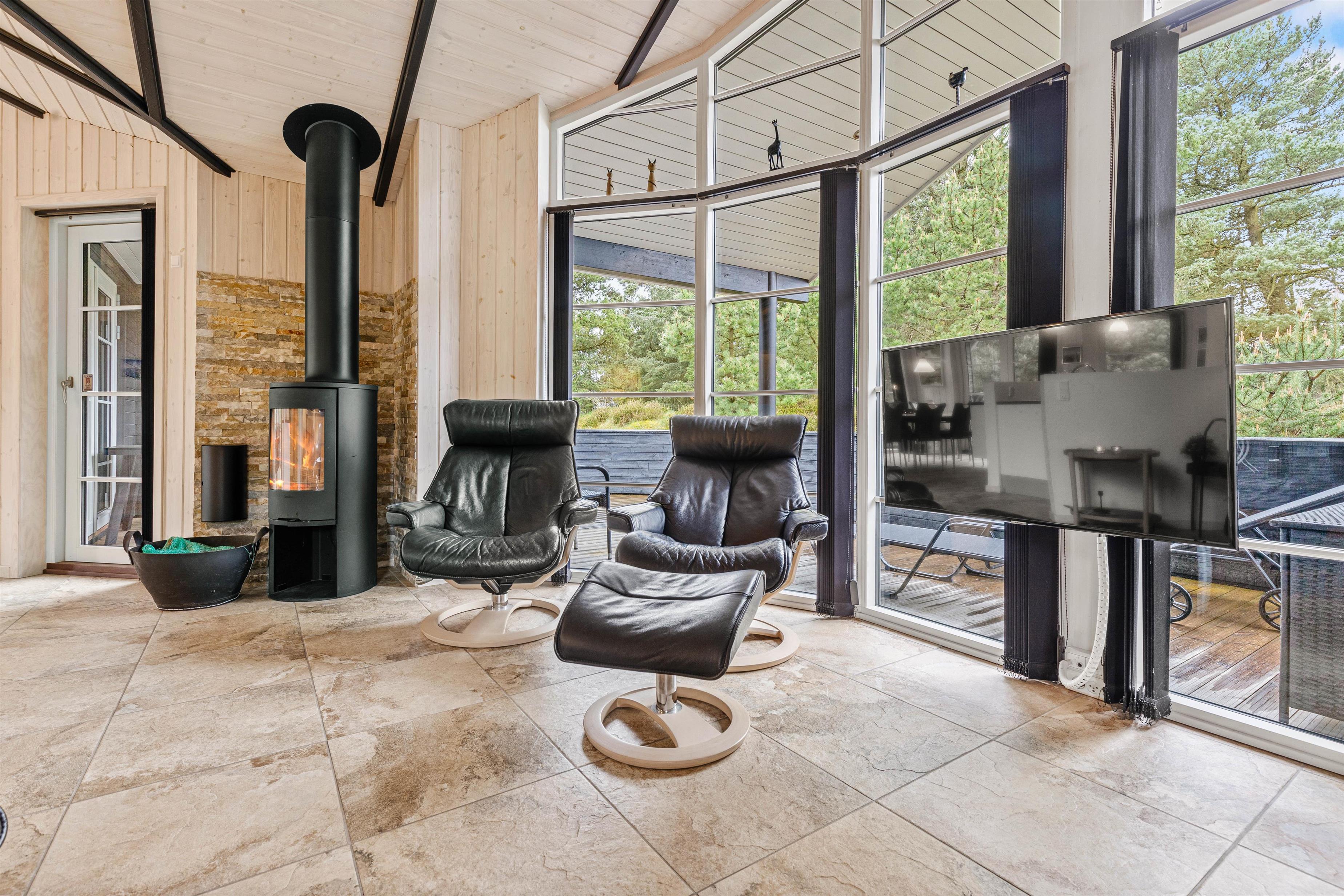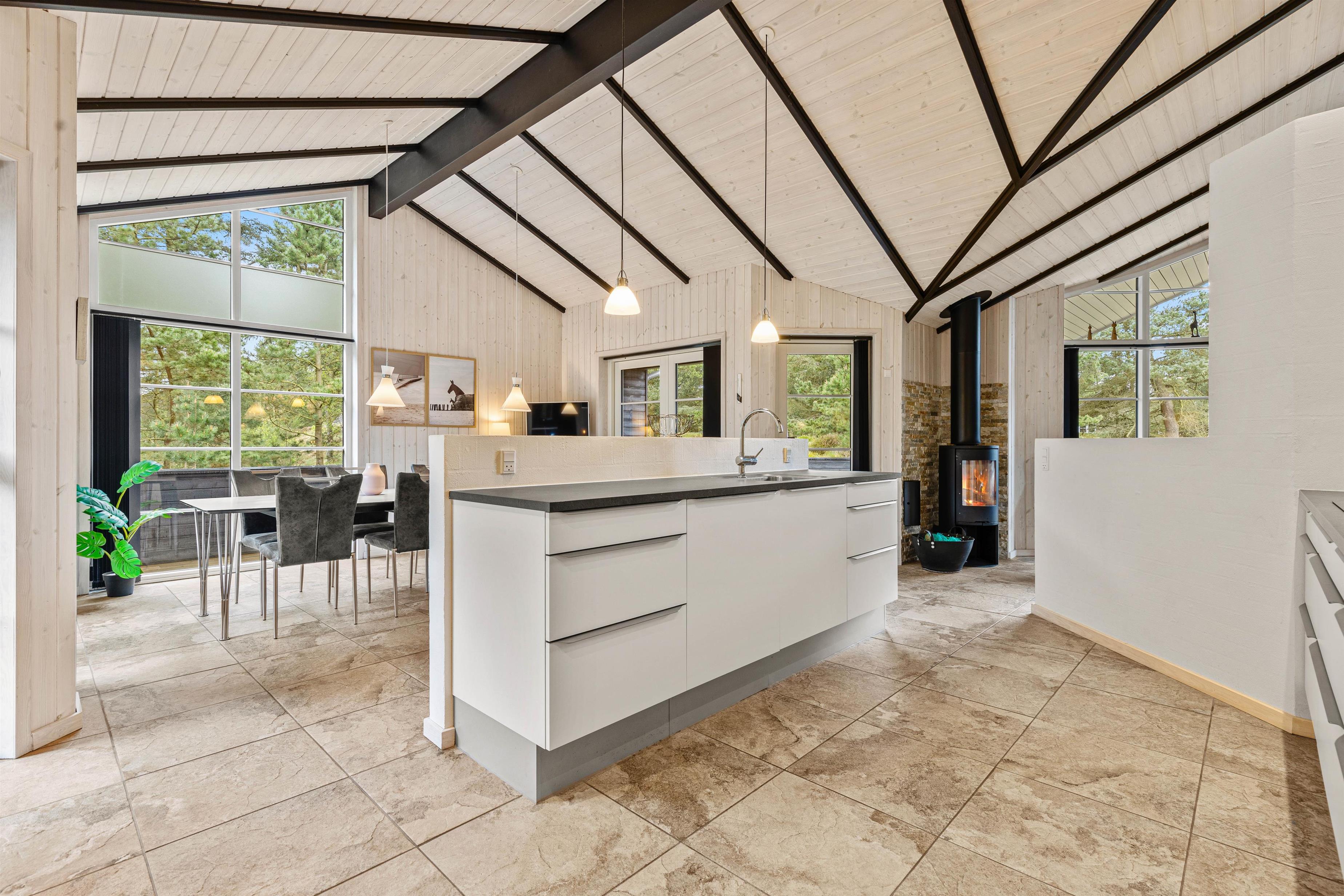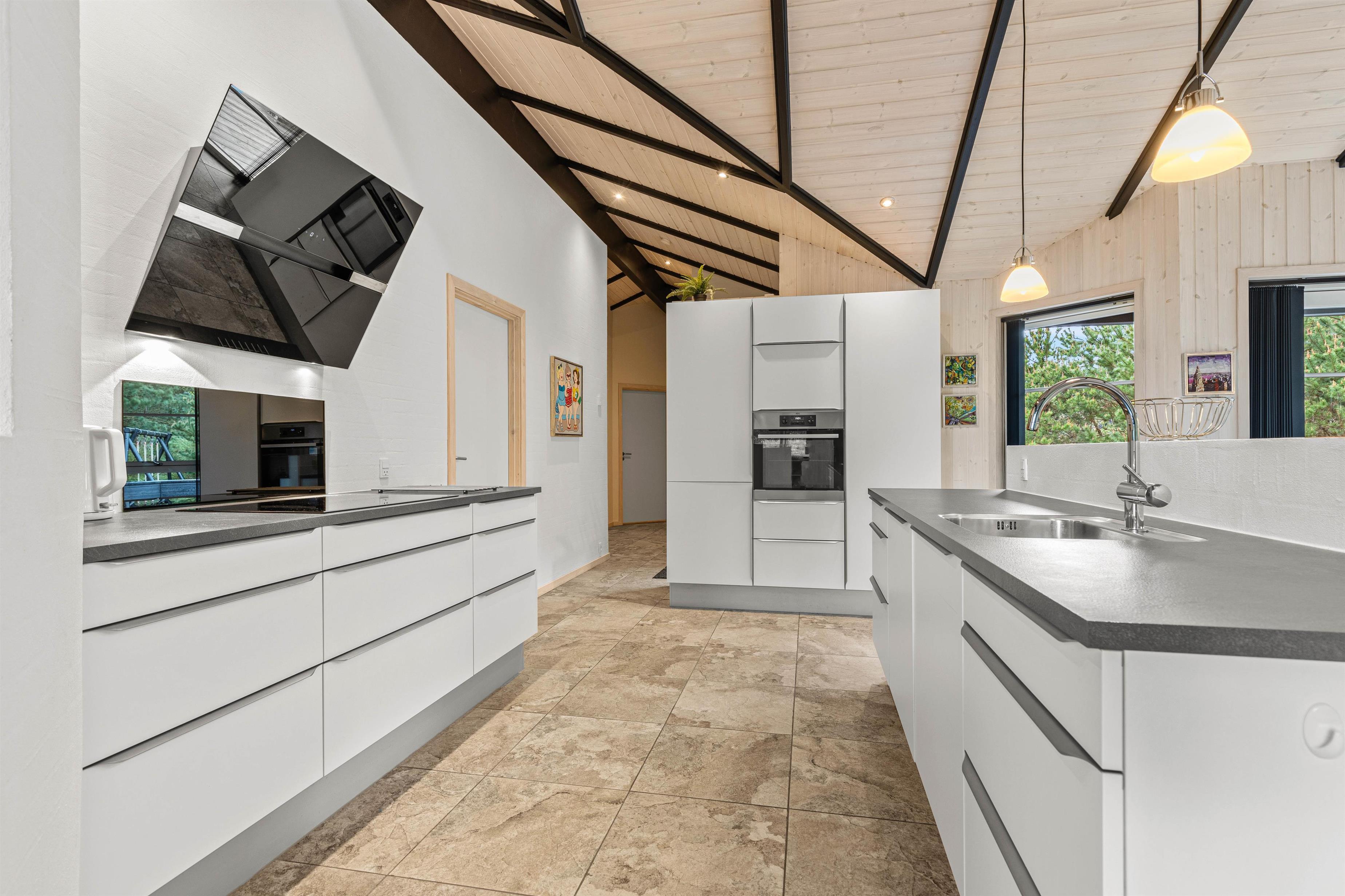 Lige meget om I hygger med madlavningen i køkkenet, slænger jer i lænestolene foran brændeovnen eller sidder i solen på terrassen, kan I nyde udsigten ud på den grønne natur, som giver en fantastisk ro i sjælen.