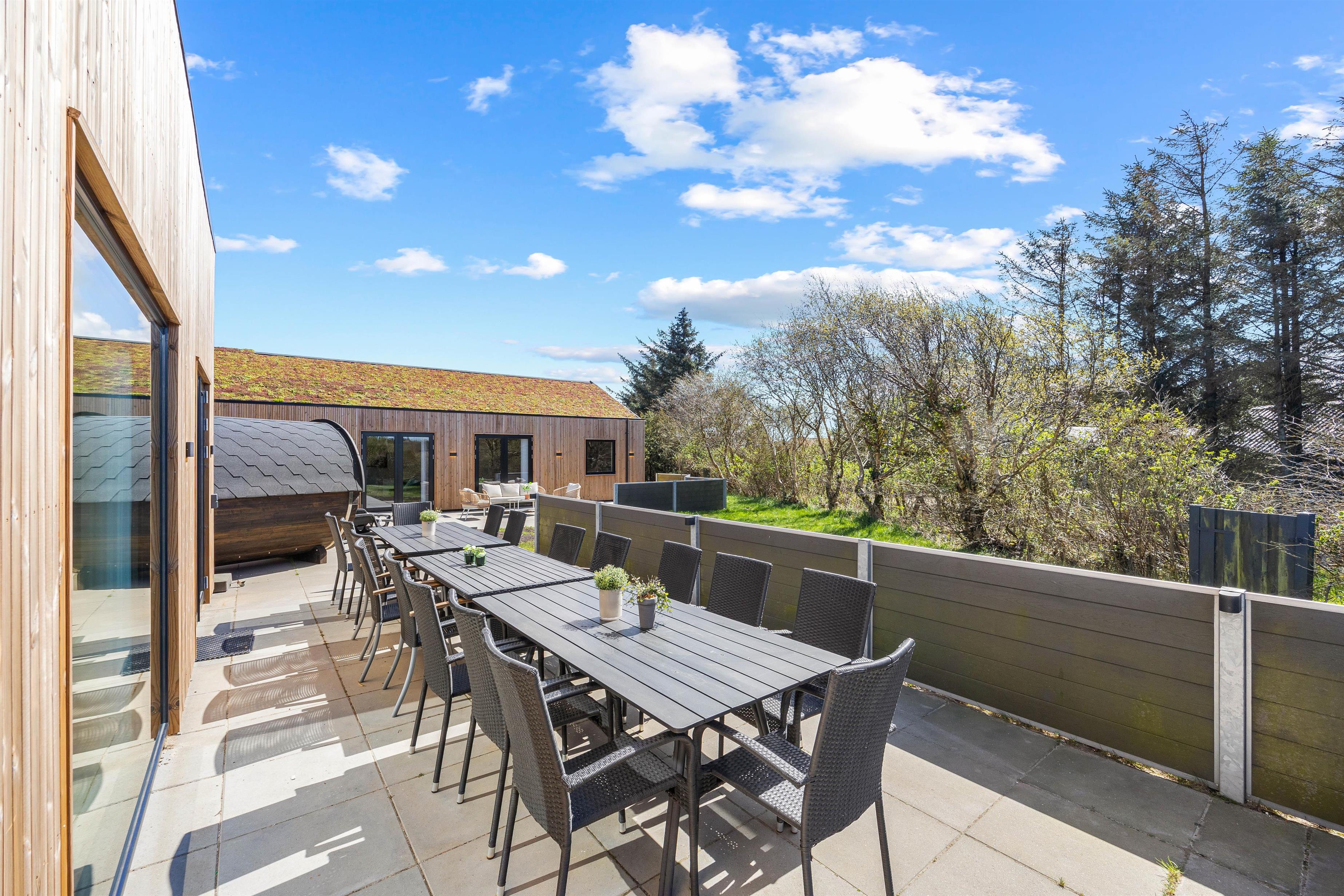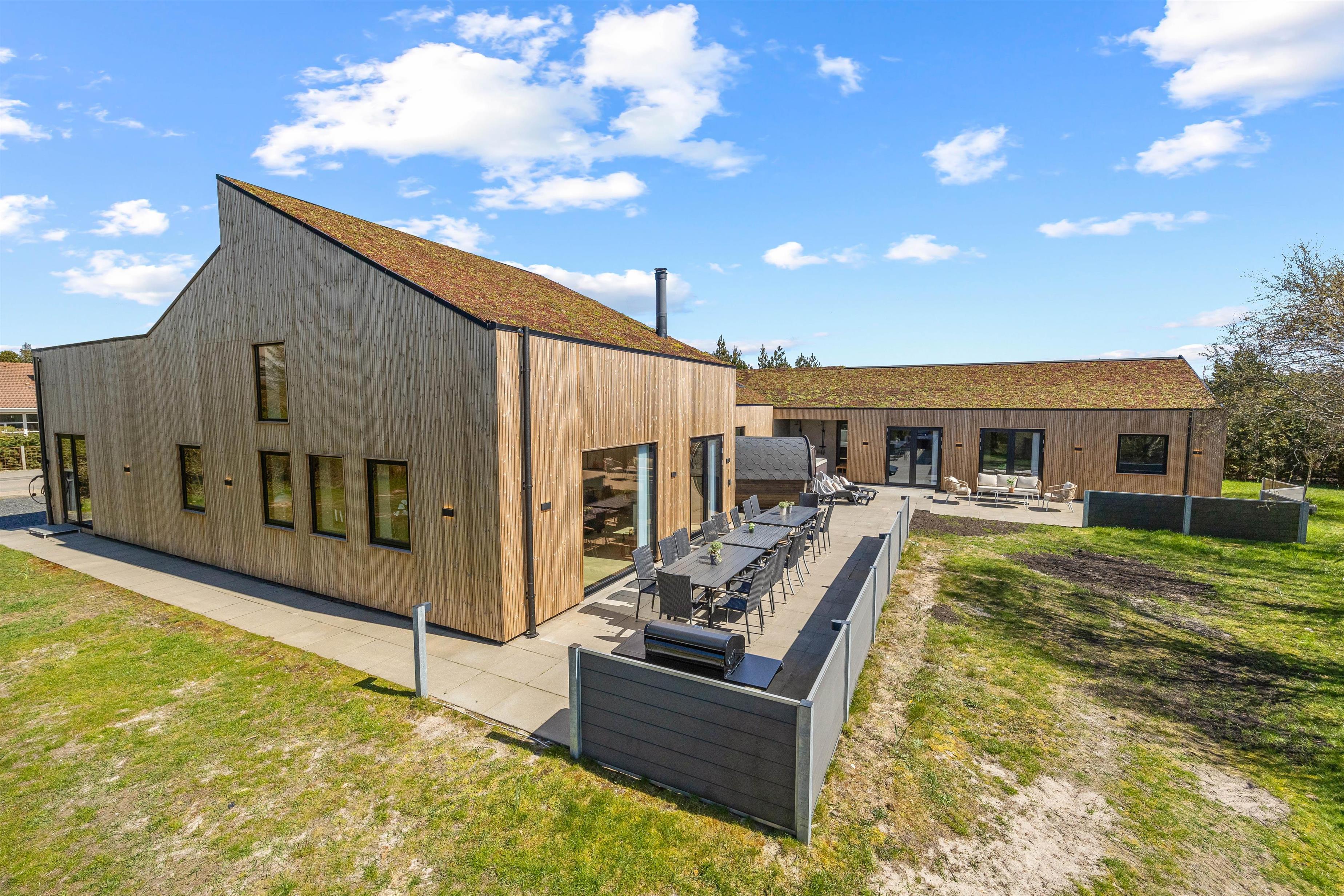 Hvis I er flere familier eller en stor vennegruppe, der vil holde en skøn ferie sammen, så bør I overveje at holde jeres ferie i dette femstjernede sommerhus på Fyrvej 23 i Blåvand. Sommerhuset, der er renoveret i 2022, byder op til 14 personer inden for til en ferie, der kommer til at stå på sjove timer i aktivitetsrummet med billard og bordtennis samt afslappende stunder i udesaunaen og udespaen.