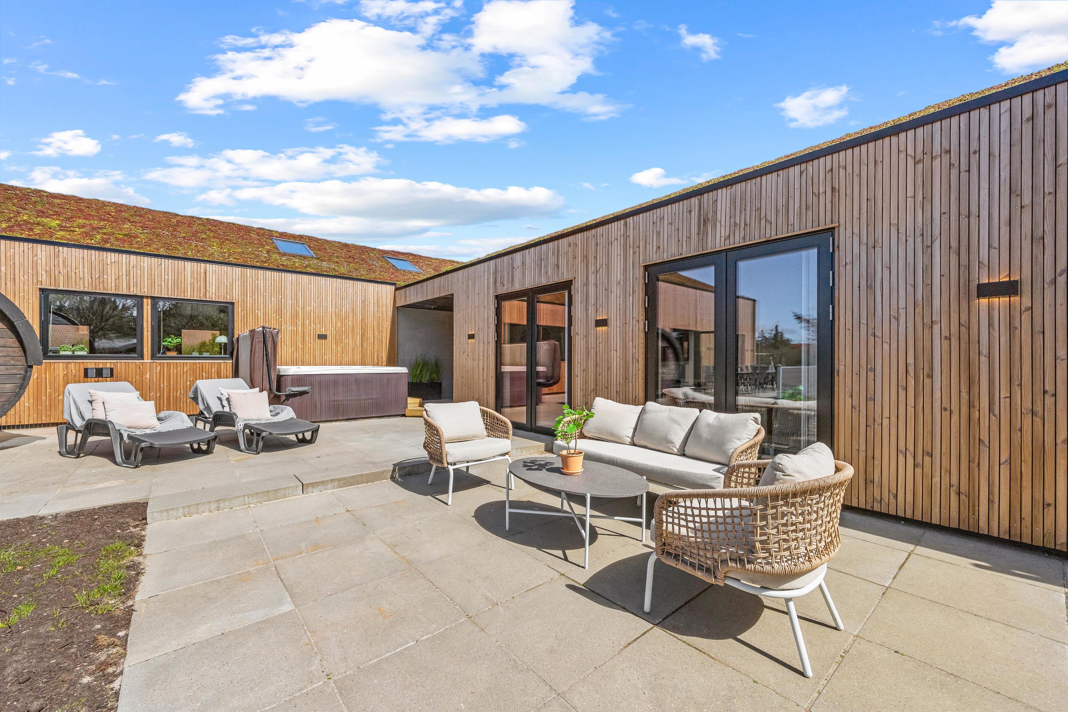 Sommerhusets udeområde byder desuden på flere skønne højdepunkter. Her venter jer nemlig en udesauna og en udespa, der står klar til at forkæle jer med masser af afslapning. Så her kan I altså bare sætte jer godt til rette og slappe helt af i skønne omgivelser. Fra 1. april til 31. oktober er der desuden en udebruser, I kan blive skyllet under.