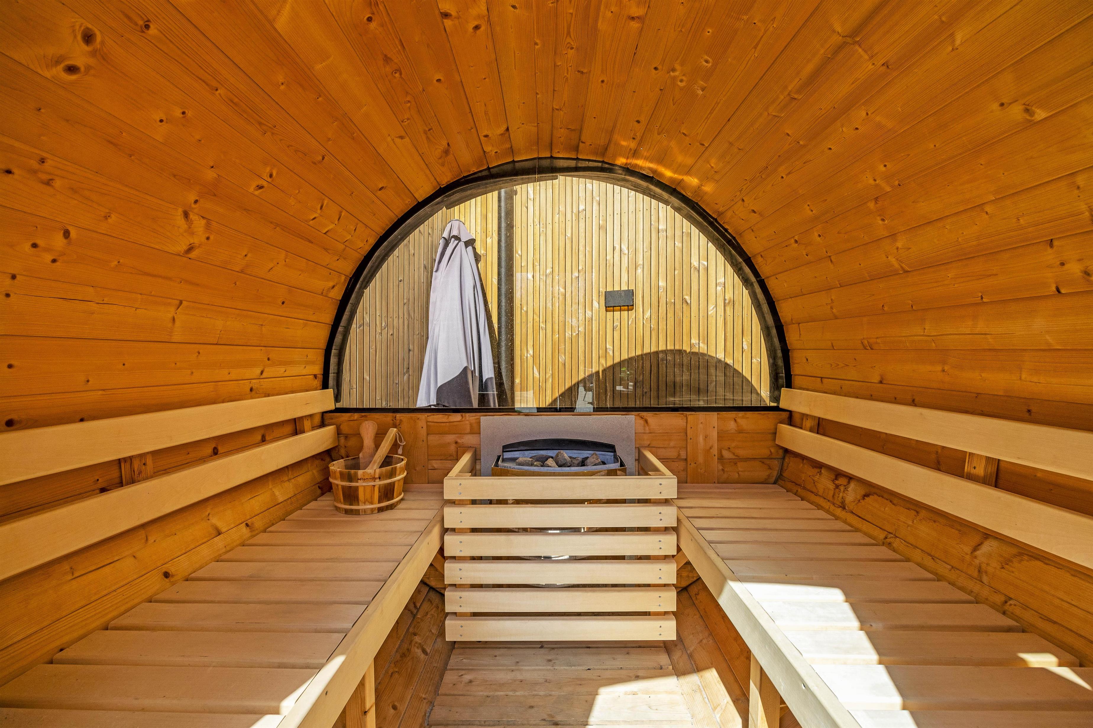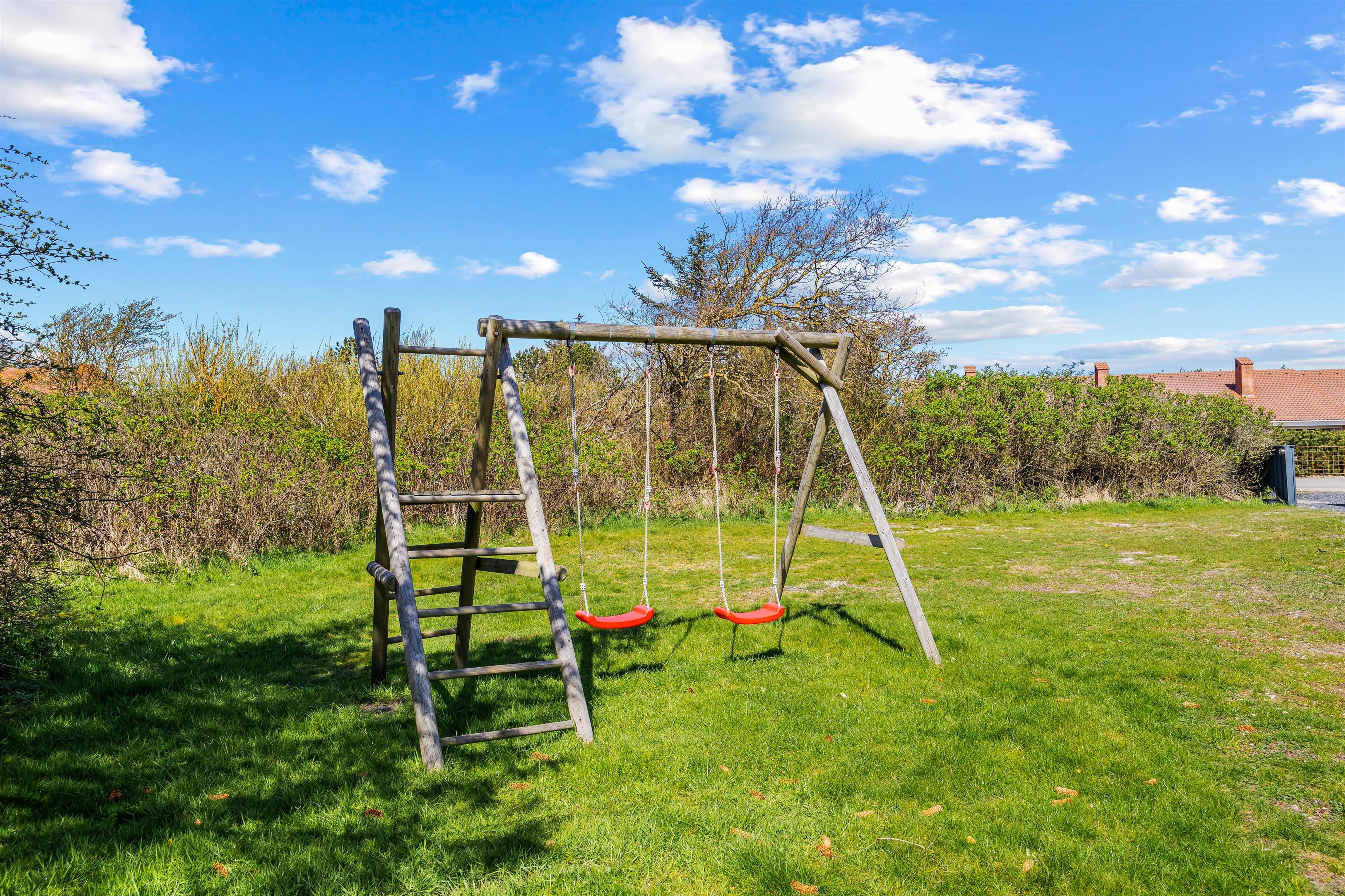 Mens I slapper af og nyder ferien fra terrassen, udespaen eller udesaunaen, kan børnene lege i haven. Her er der også både en sandkasse og et gyngestativ, de kan få glæde af.