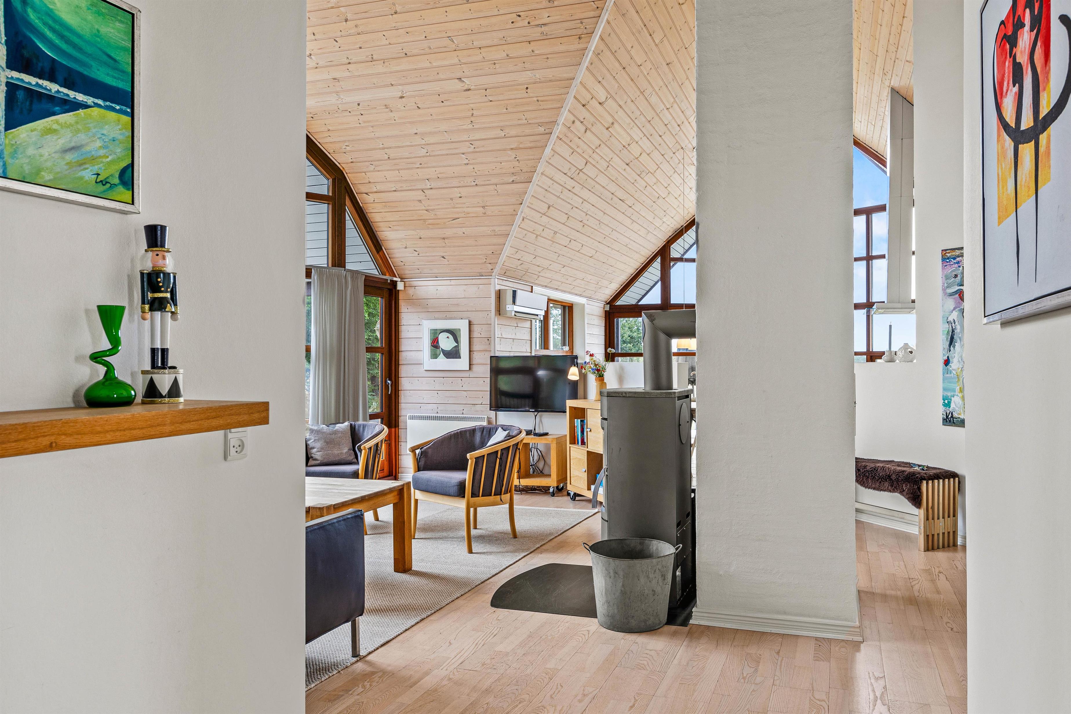 Til en hurtig vask og tørring af feriegarderoben er der også både vaskemaskine og tørretumbler, og en effektiv varmepumpe samt gulvvarmen i badeværelserne og opholdsrummene sørger for, at der året rundt er et behageligt indeklima i sommerhuset – og at I ikke fryser om fødderne.
