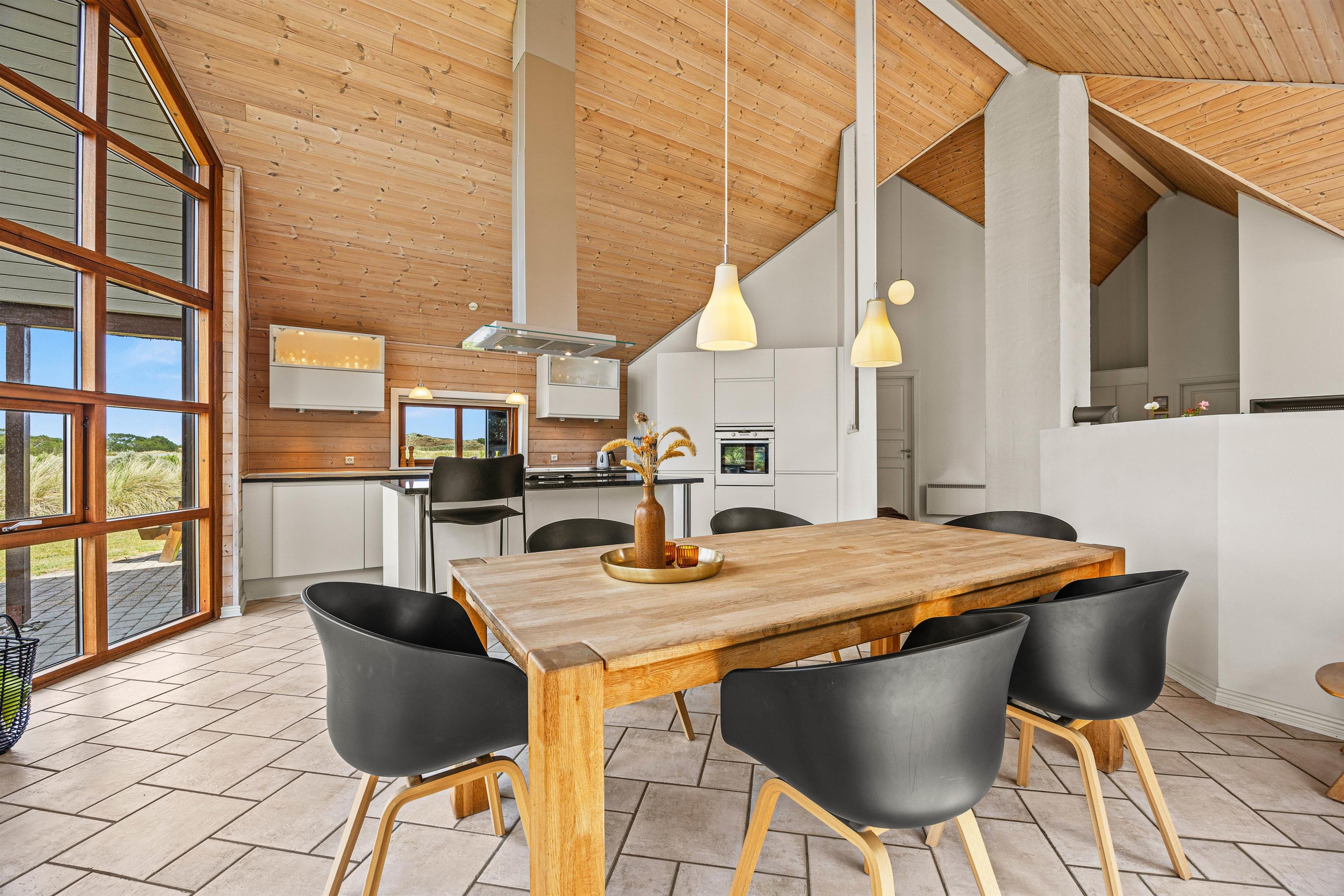 Køkkenet ligger i åben forbindelse med spise- og dagligstue, og huset er udstyret med en separat fryser på 60 liter, som I hurtigt vil kunne få fyldt op, da der kun er omkring 1 kilometer til indkøbsfaciliteterne i Blåvand by. Der er mikroovn i køkkenet og en opvaskemaskine, så I også kan lave hurtige måltider, der kun kræver en opvarmning – og hurtigt kan få servicet væk fra bordet til effektiv afvaskning.