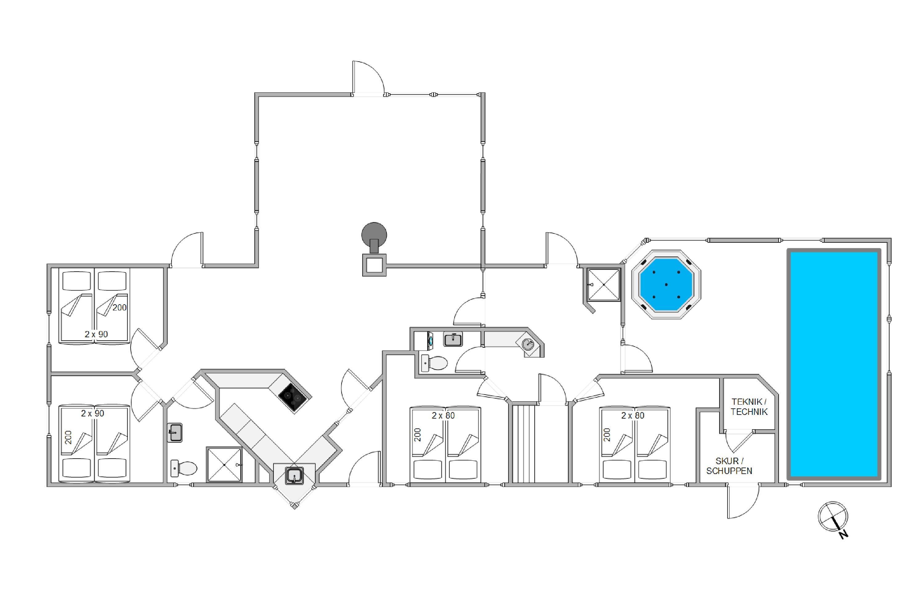 Først en frisk dukkert i den i den 20 m2 store pool og så afsted til fods ned til bageren, - hunden vil bestemt gerne luftes ved samme lejlighed. Sådan kan din dag begynde, når du holder ferie på Vandflod 5. Her er god plads til fælles hygge. Om I plasker og hygger sammen i svømmebassinet eller slapper af og holder wellnesskur i whirlpoolen og saunaen, her er noget for hele familien.