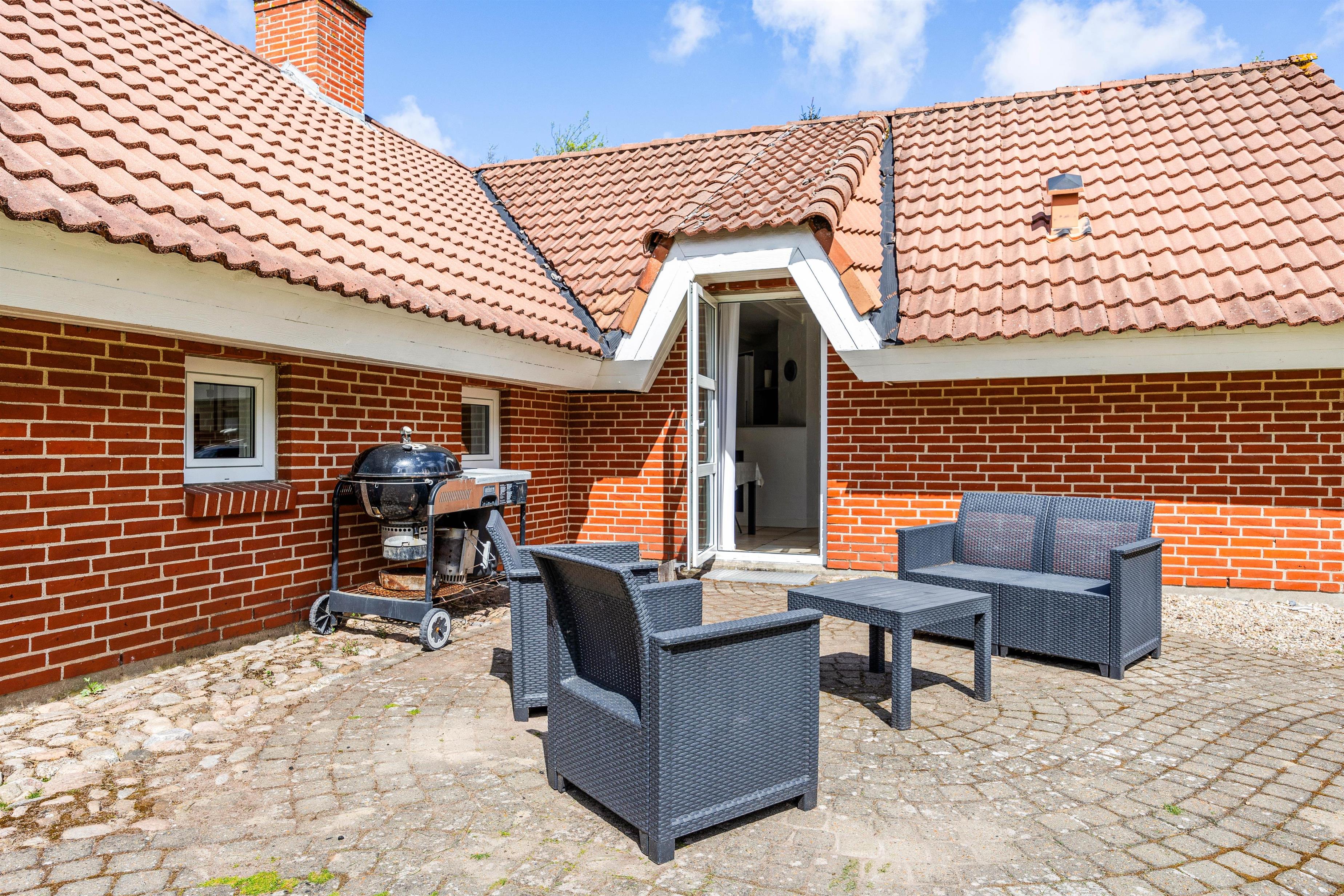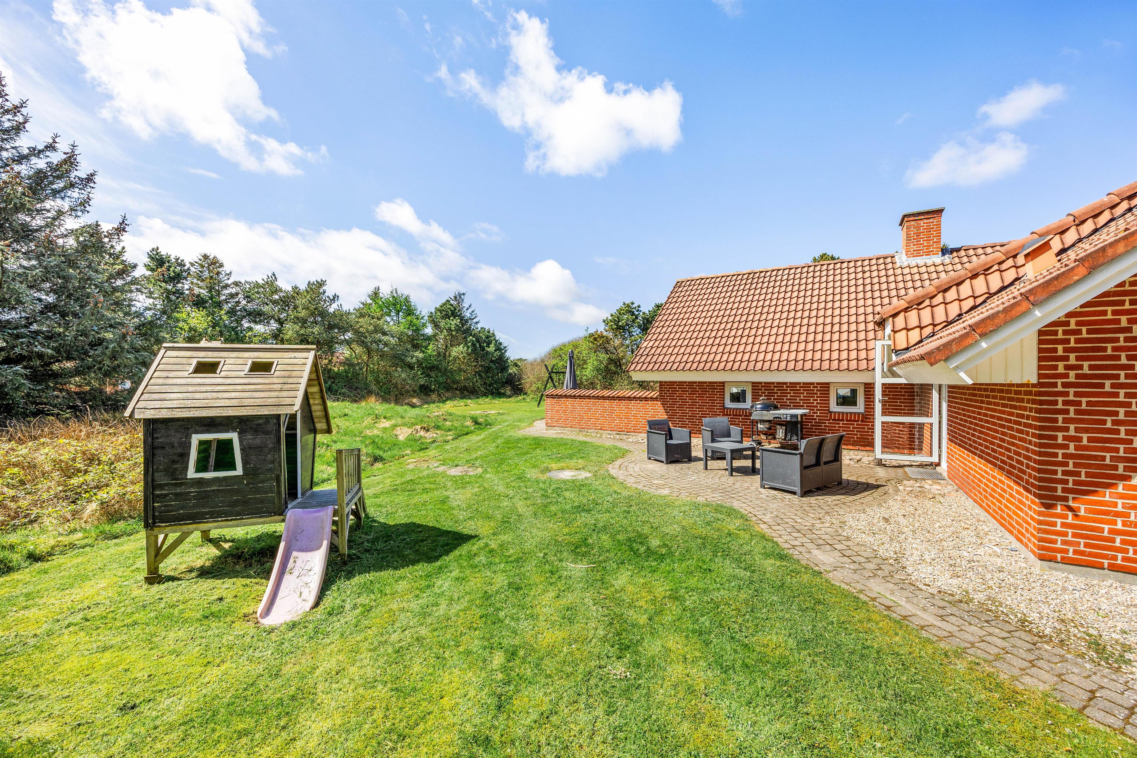 På Vandflodvej 25 er ferien både skøn inden- og udendørs. Gode terrasser indbyder til afslapning, solbadning og lange grillaftener. På den store grund, som er omkranset af træer og buske, har børnene masser af legeredskaber og I kan nyde ferien uforstyrret.