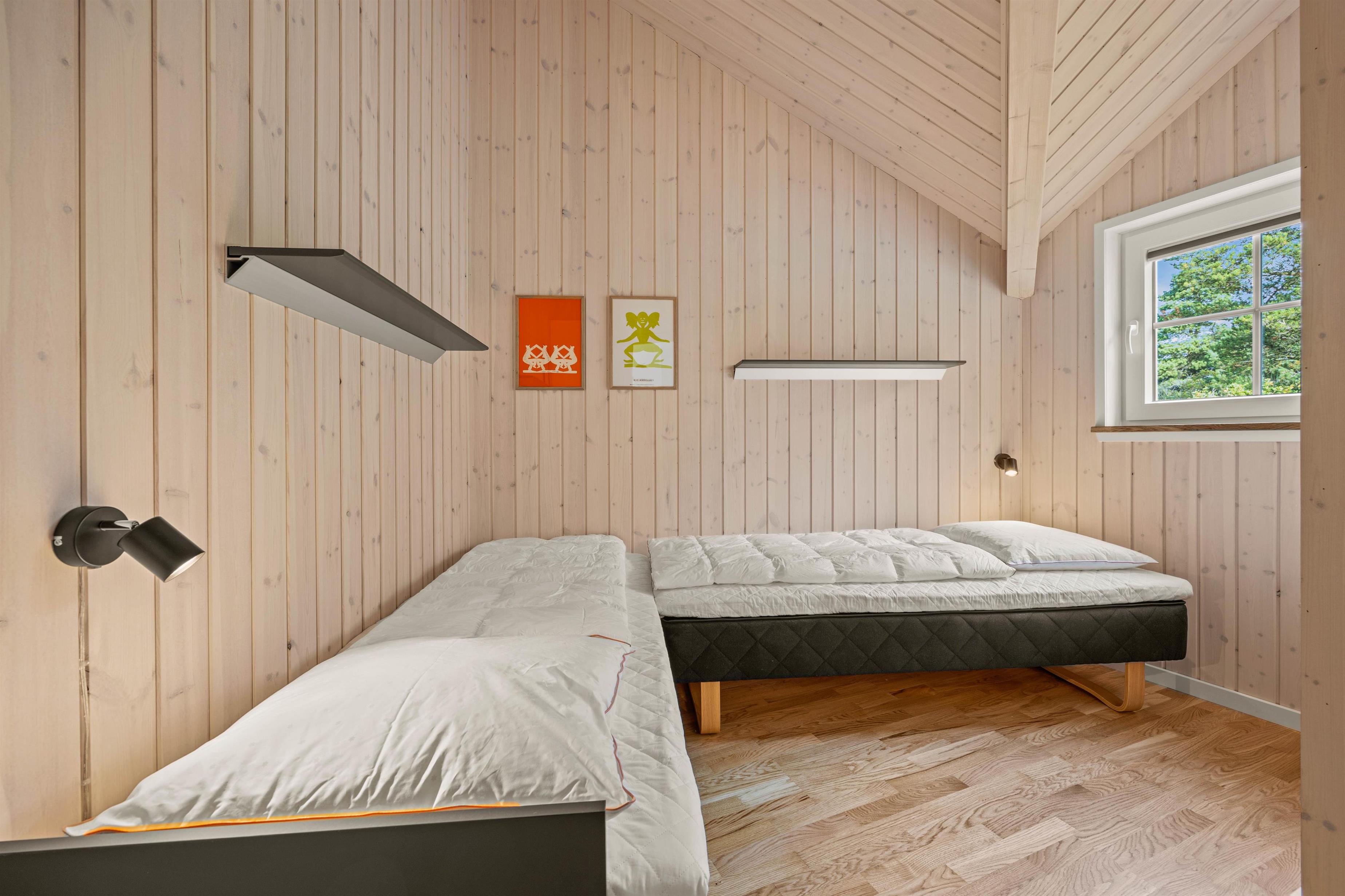 I det 215 kvadratmeter store sommerhus er der 5 soveværelser, der er indrettet med 4 dobbeltsenge og 2 enkeltsenge. Til hvert af de 5 soveværelser er der desuden eget badeværelse med gulvvarme. Derudover er der 2 hemse i feriehuset, den ene er indrettet med 2 sovepladsen, og den anden med tv.