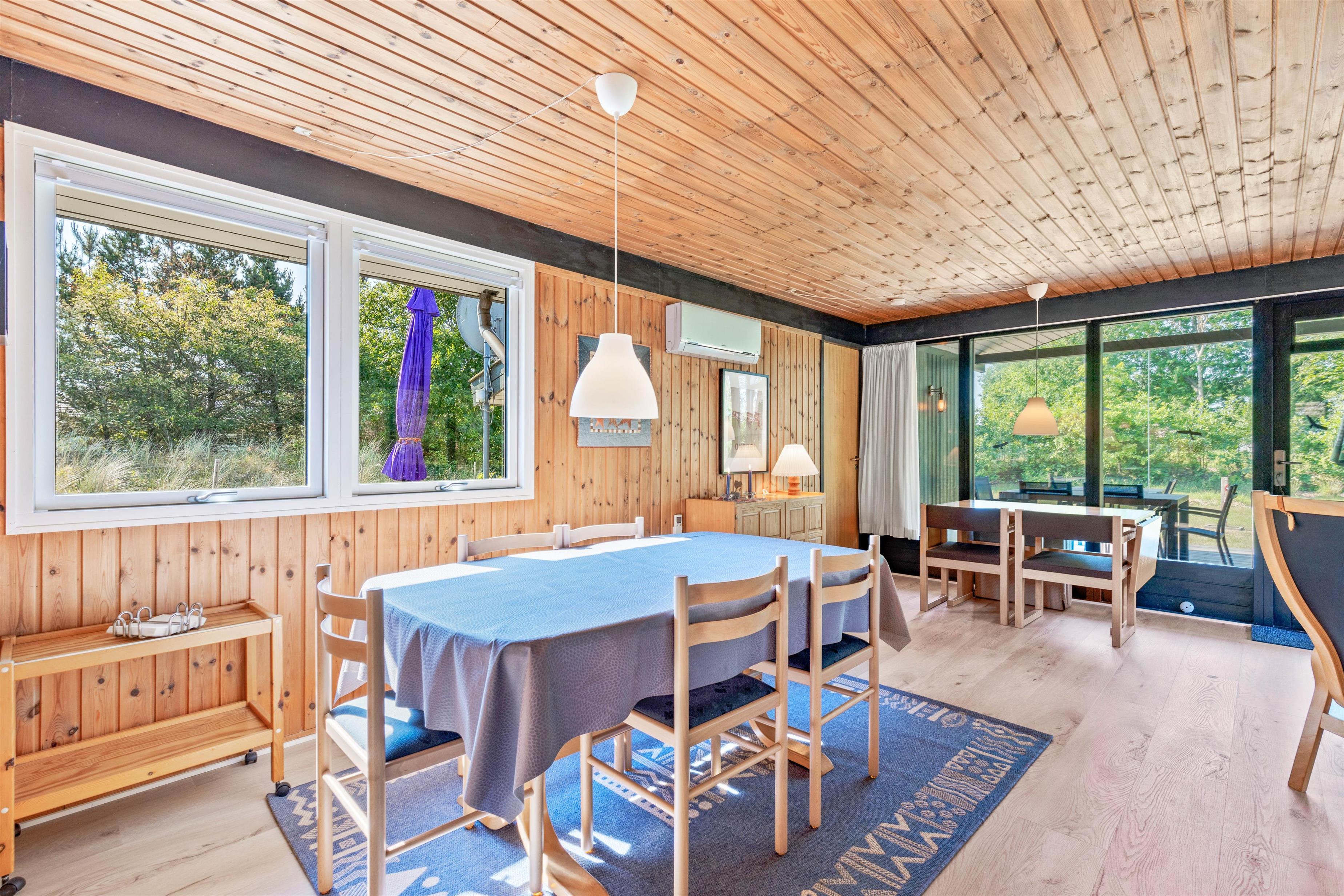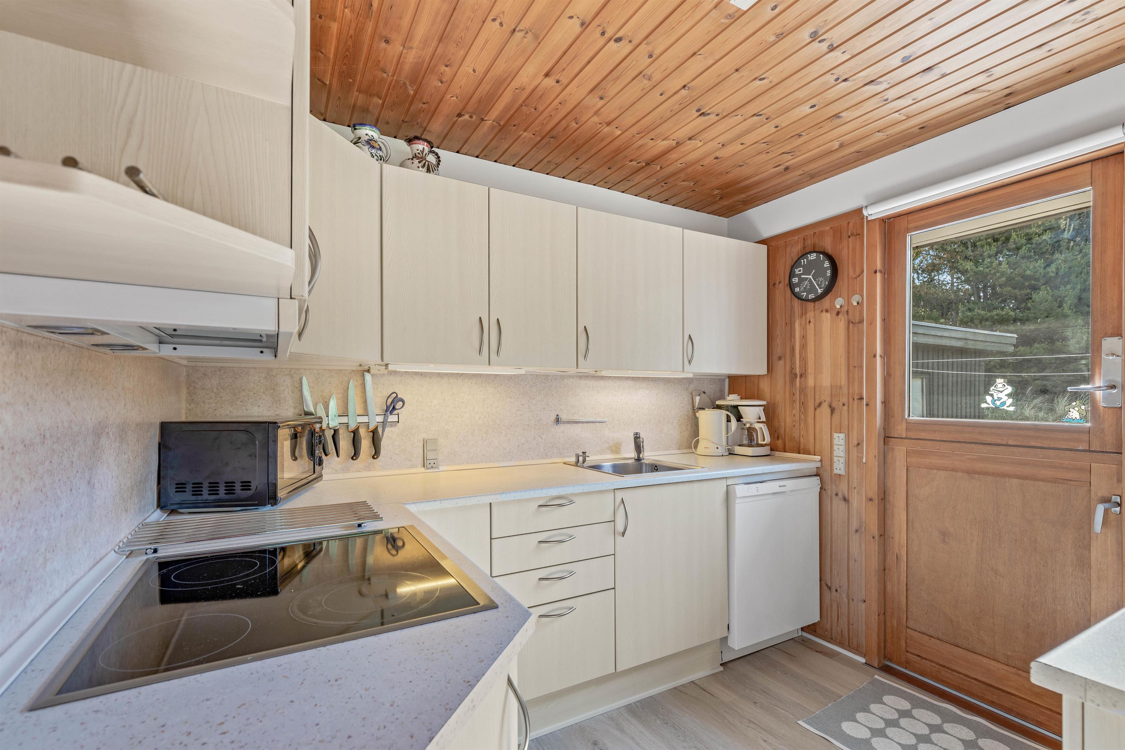 Foruden brændeovnen er sommerhuset også udstyret med en energivenlig varmepumpe, der sørger for, at I har et godt indeklima på jeres ferie. Og så byder sommerhuset på både opvaskemaskine og vaskemaskine, der hjælper jer med det praktiske husarbejde på ferien.