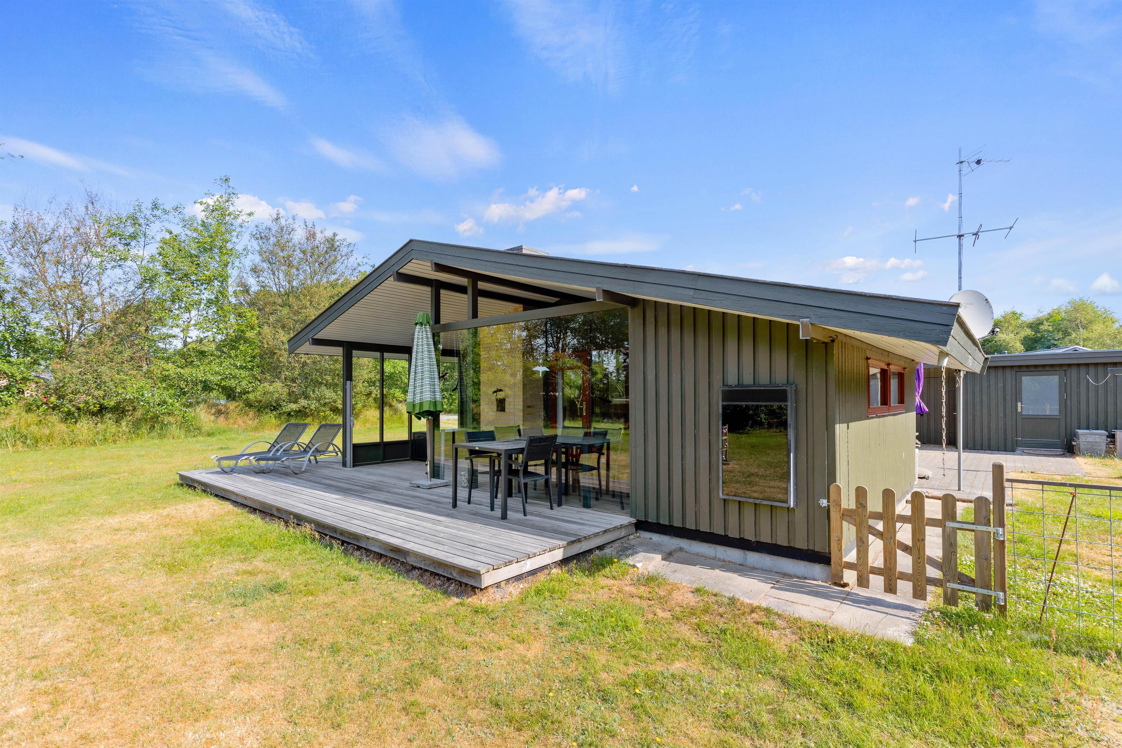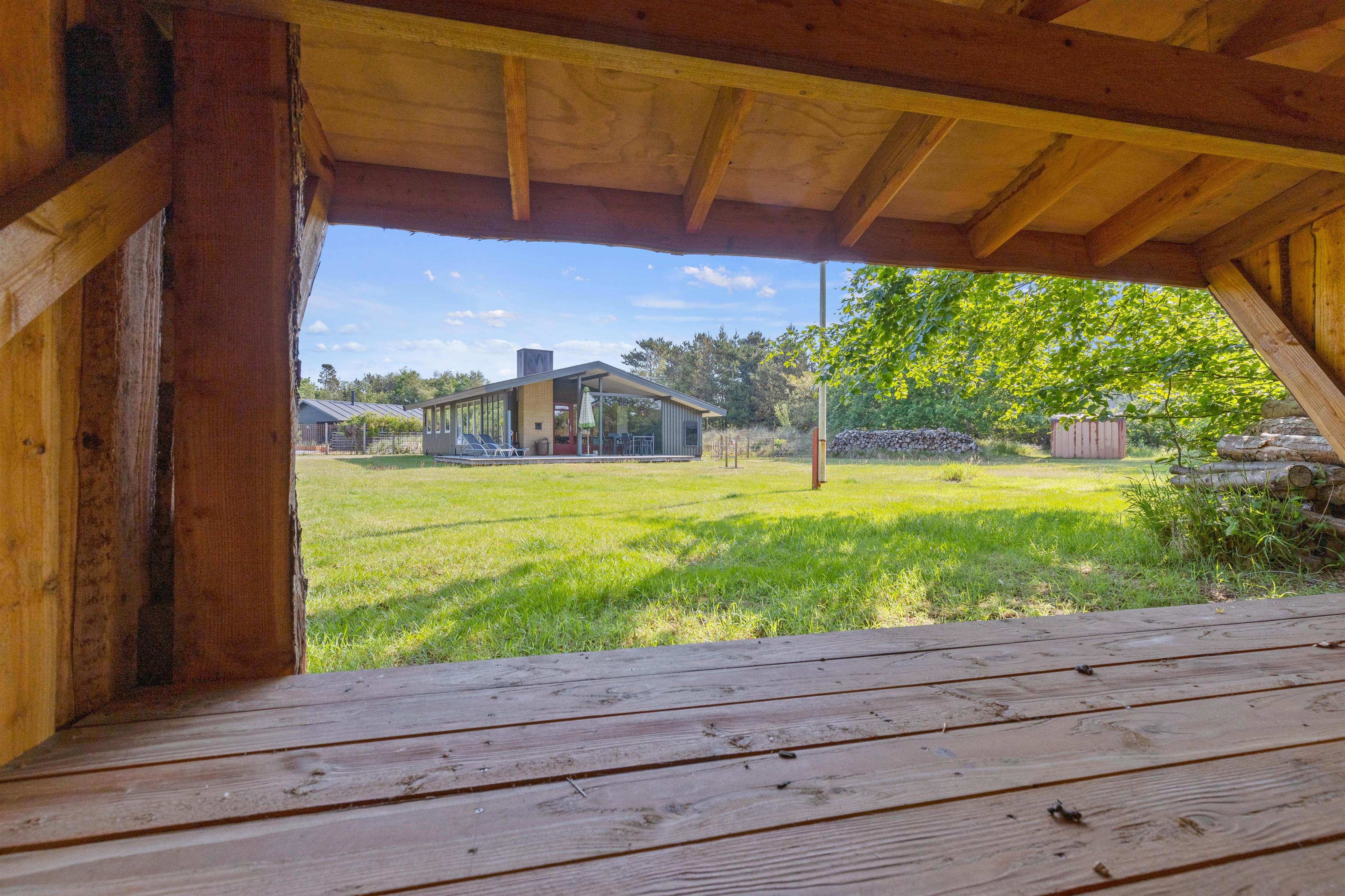 Sommerhusets udeområde byder også på en have, hvor der desuden er et shelter, som de friske af jer kan snuppe en overnatning i.