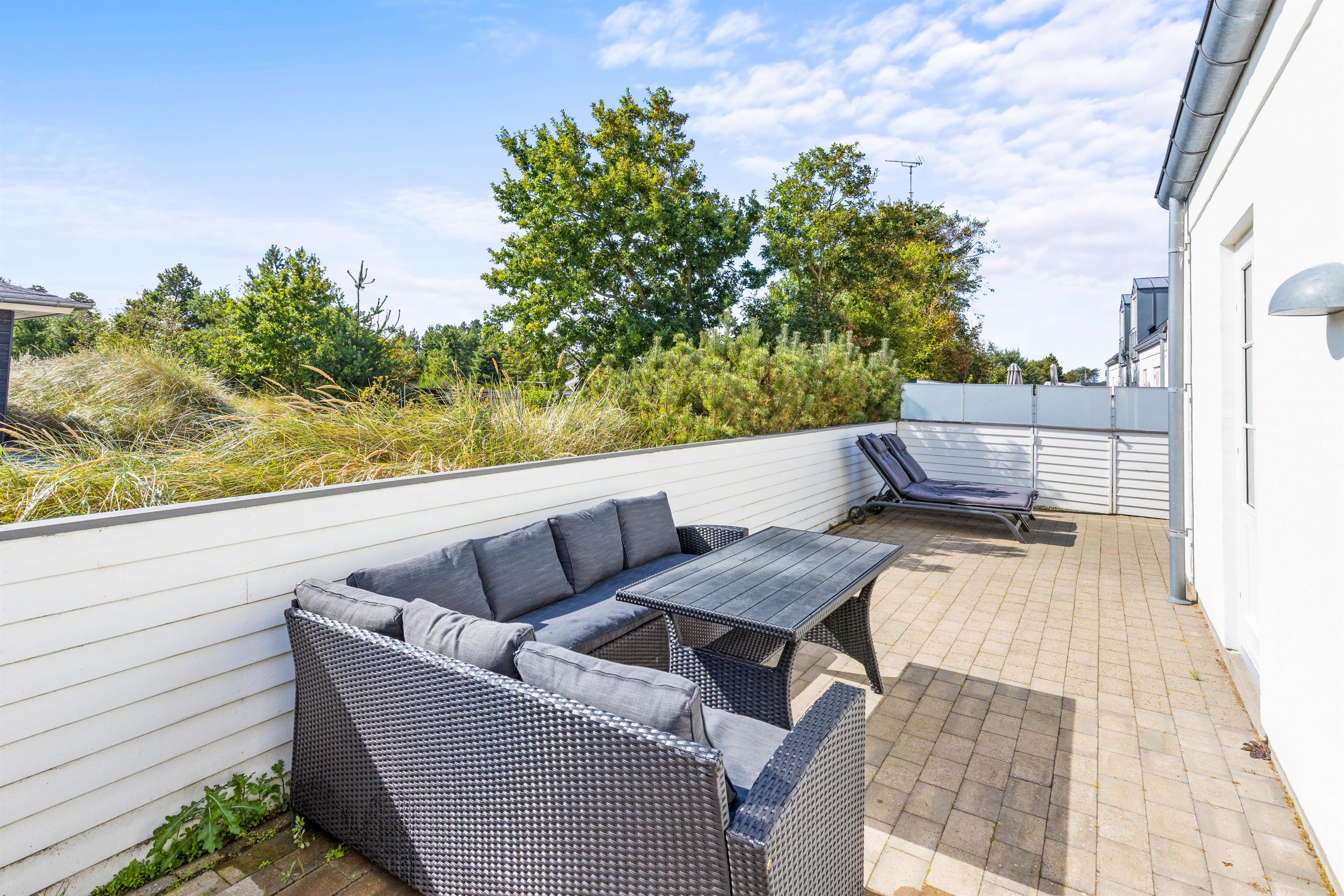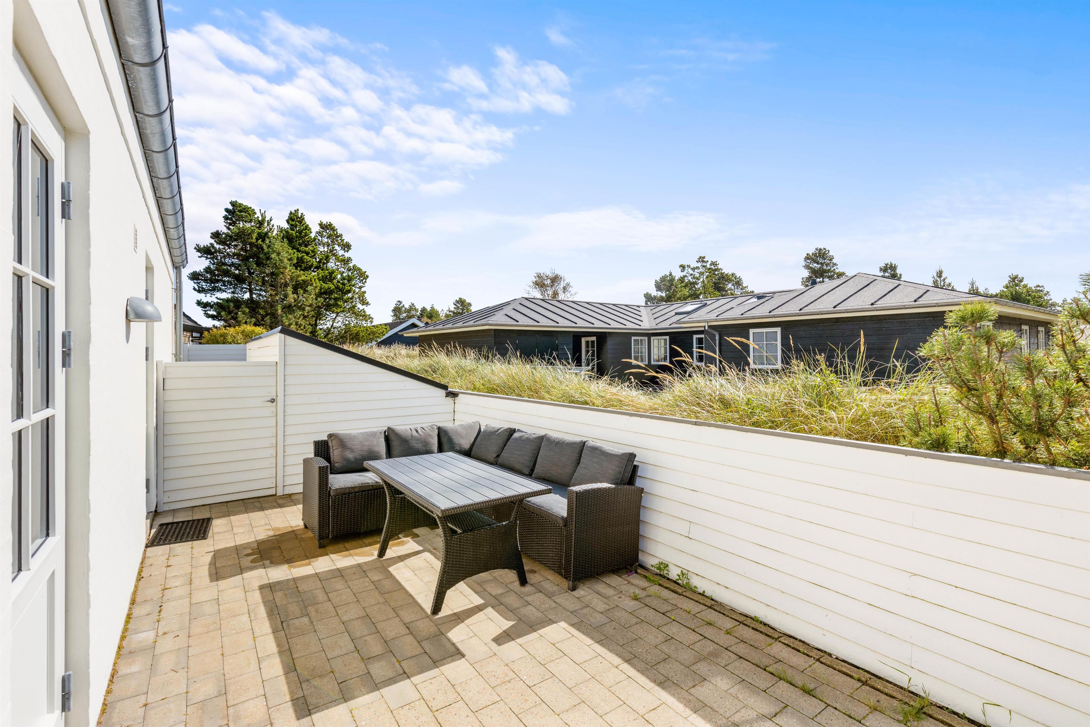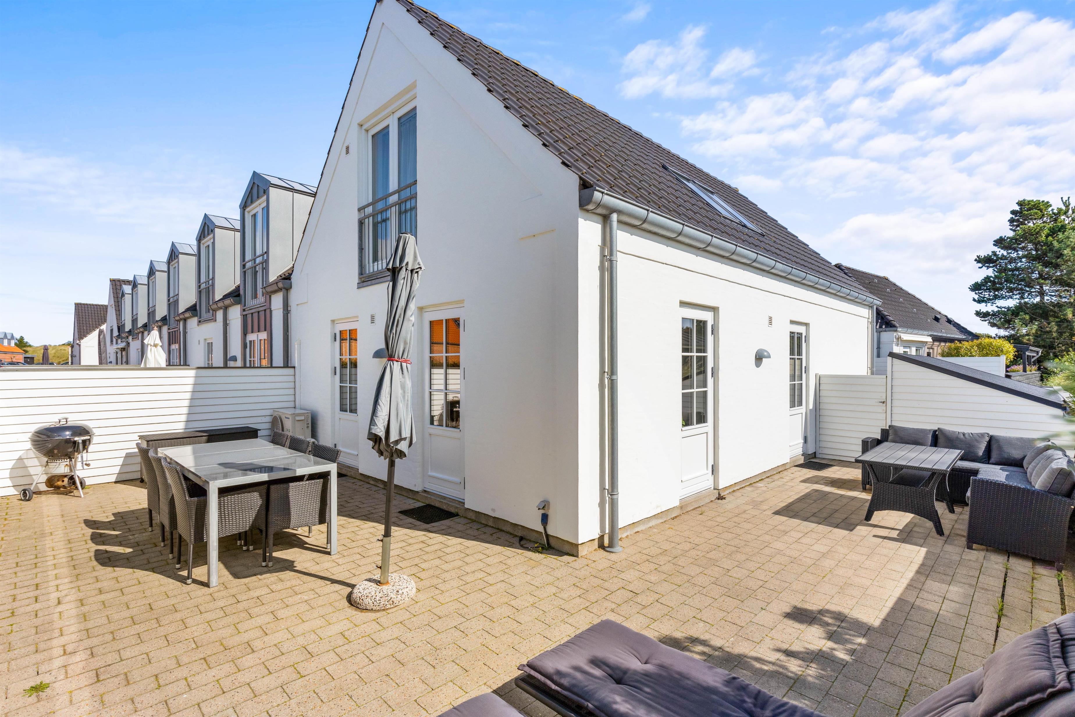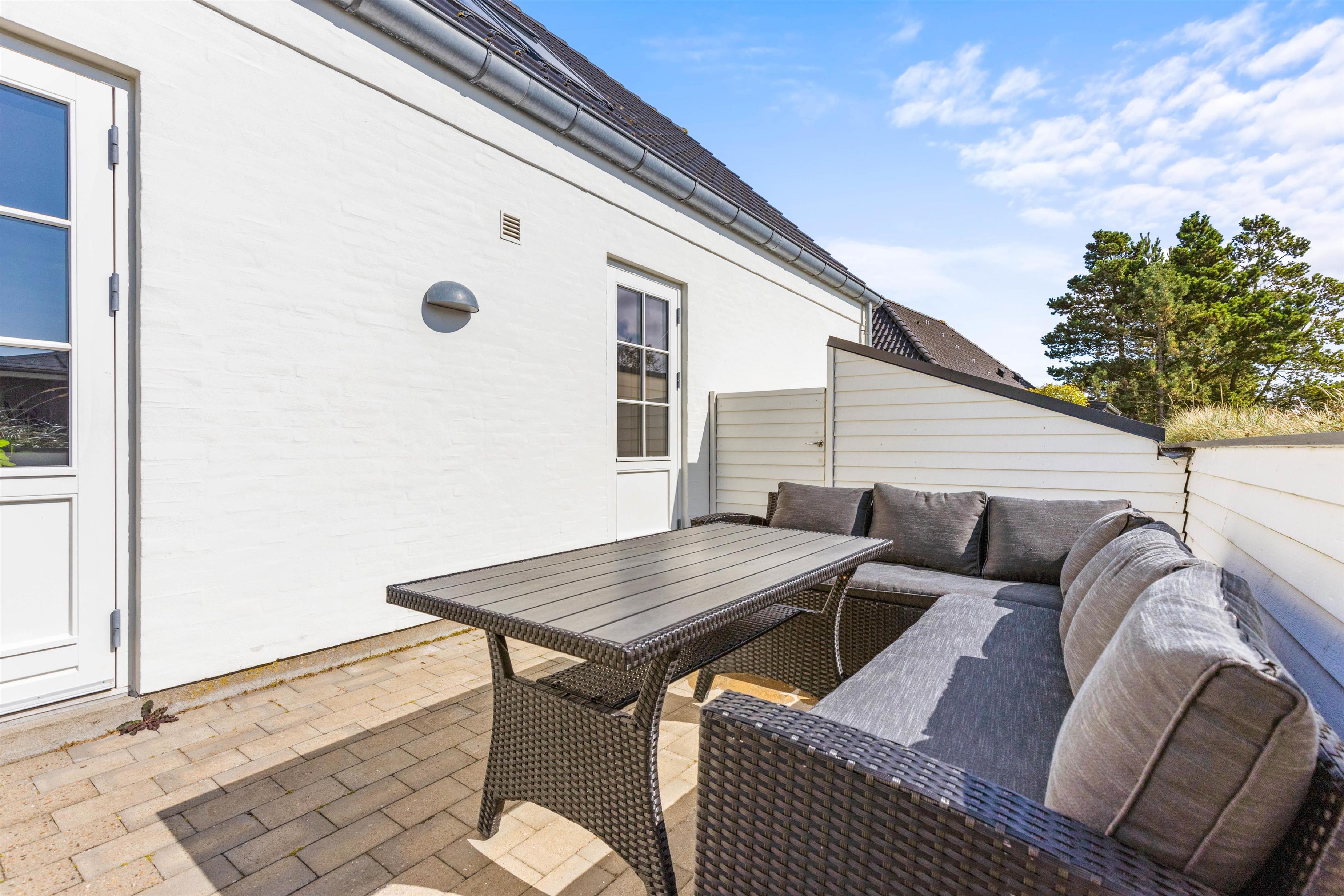 Til ferielejligheden har I en lukket terrasse, som I kan tilbringe de solrige feriedage på. Her kan I finde jer godt til rette i havemøbler og liggestole med snacks og kolde drikkevarer, mens solen skinner på jer – her har I endda sol hele dagen. På den lukkede terrasse kan I også have jeres hund med ude, uden at den stikker af på opdagelse.