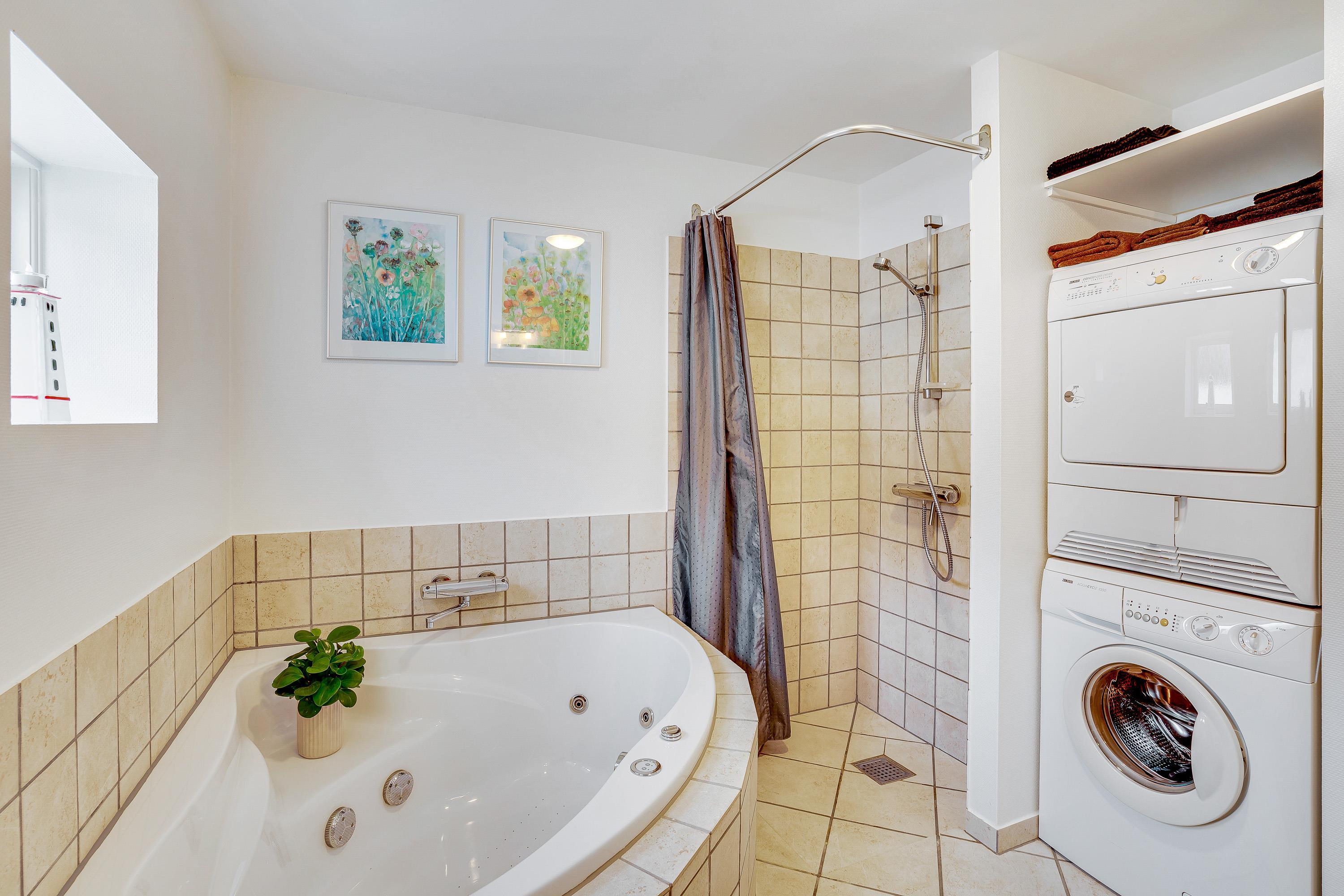 Jeres ferietid skal selvfølgelig ikke bruges på at vaske op og klare tøjvask. Derfor har I både opvaskemaskine, vaskemaskine og tørretumbler i ferielejligheden, så I kan bruge jeres ferie på meget hyggeligere ting end praktisk husarbejde. Desuden er der en energivenlig varmepumpe i ferielejligheden, der sørger for et godt indeklima på jeres ferie.