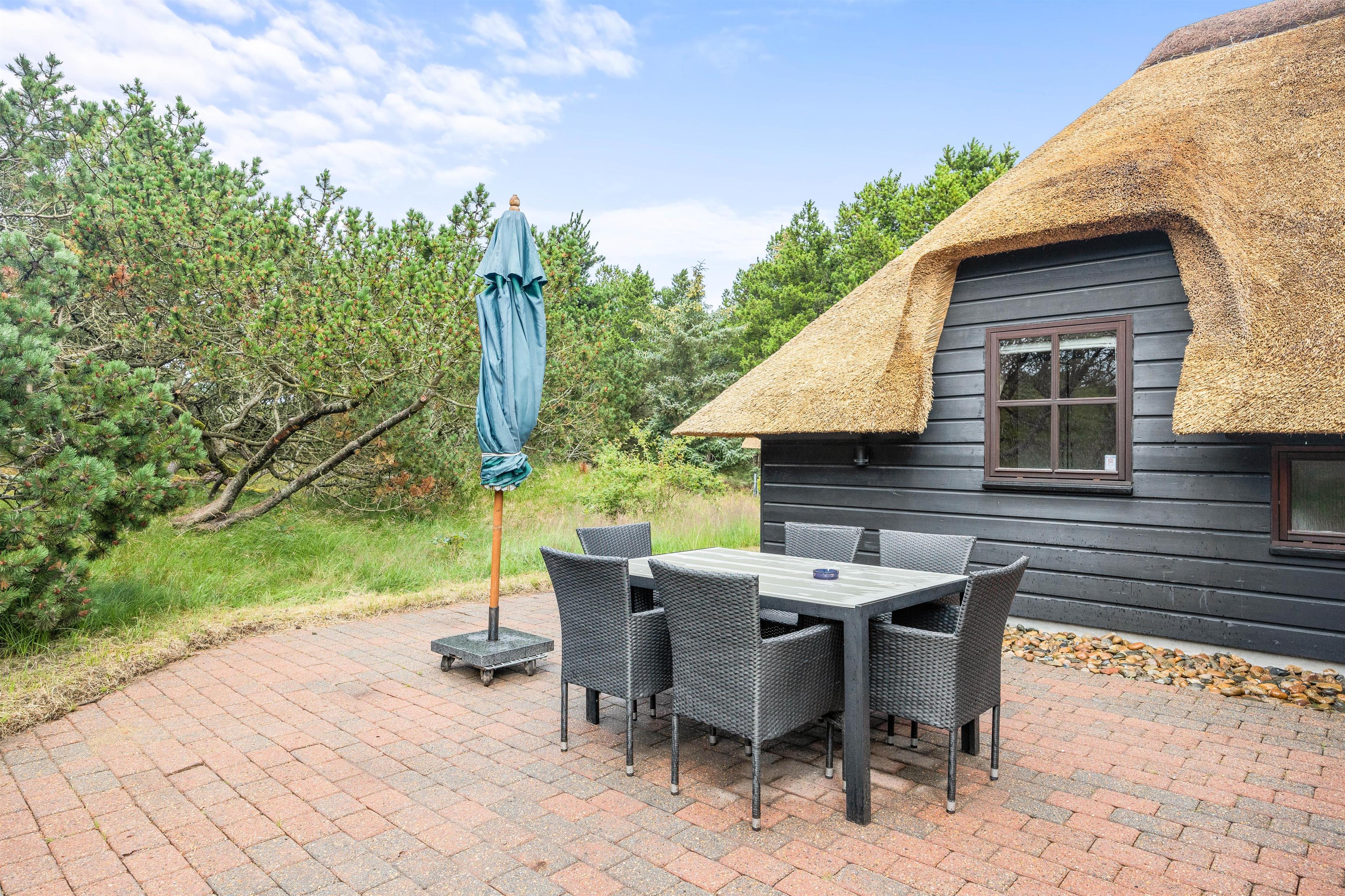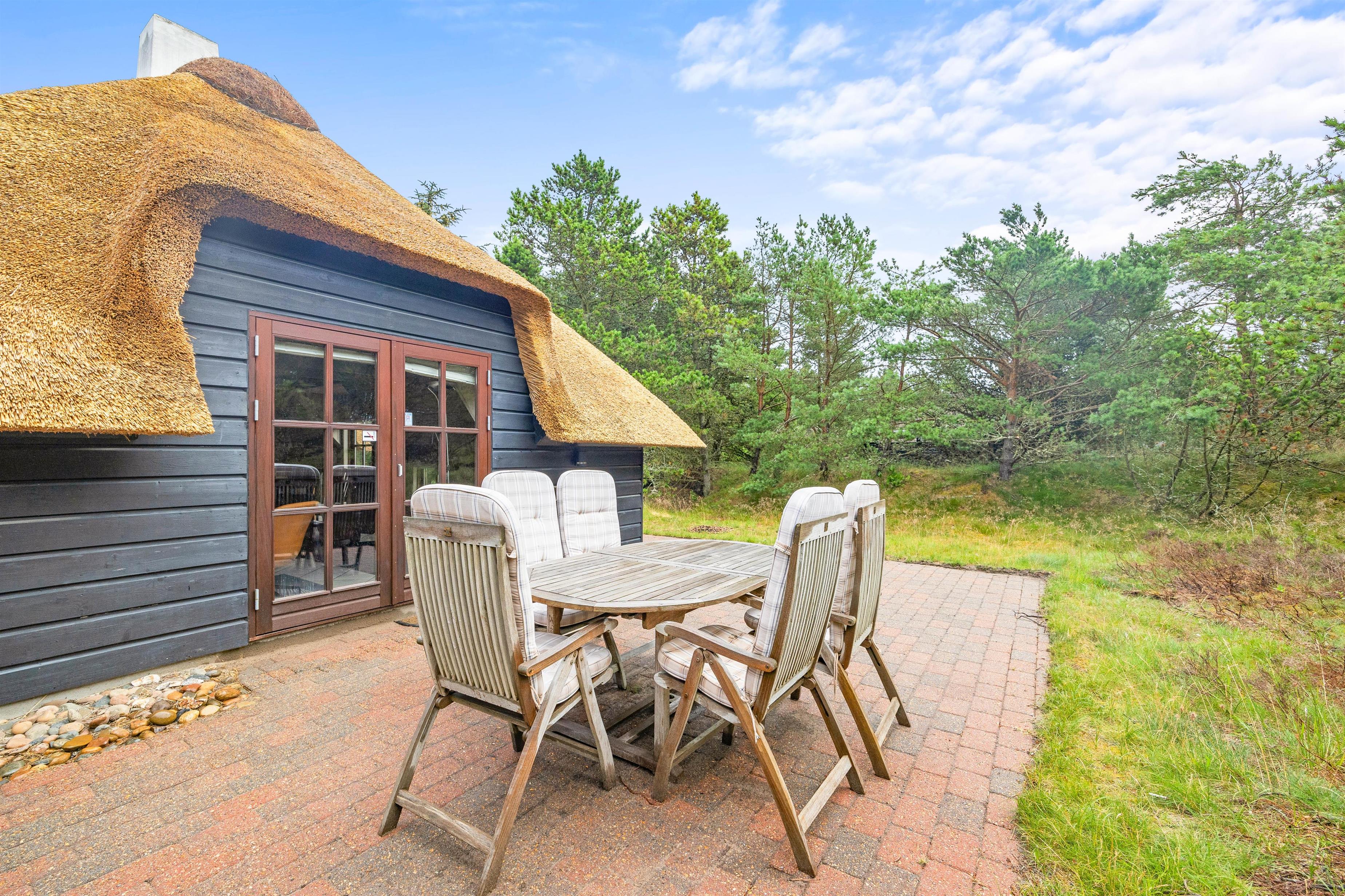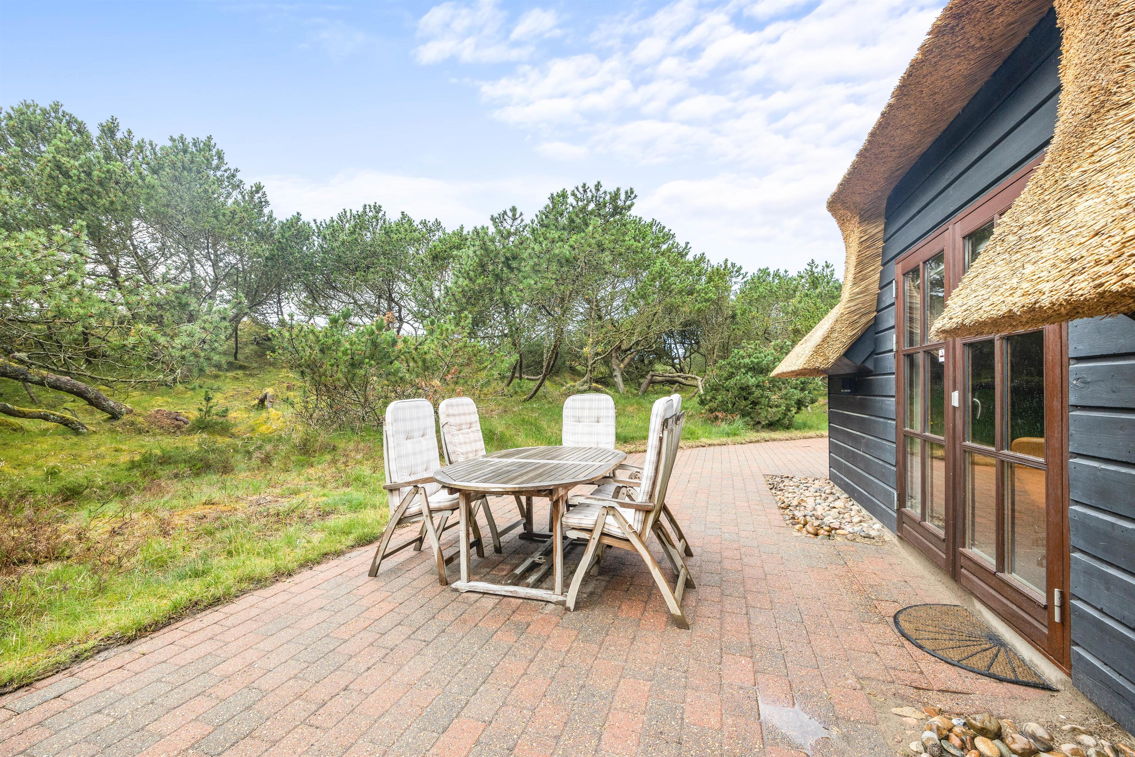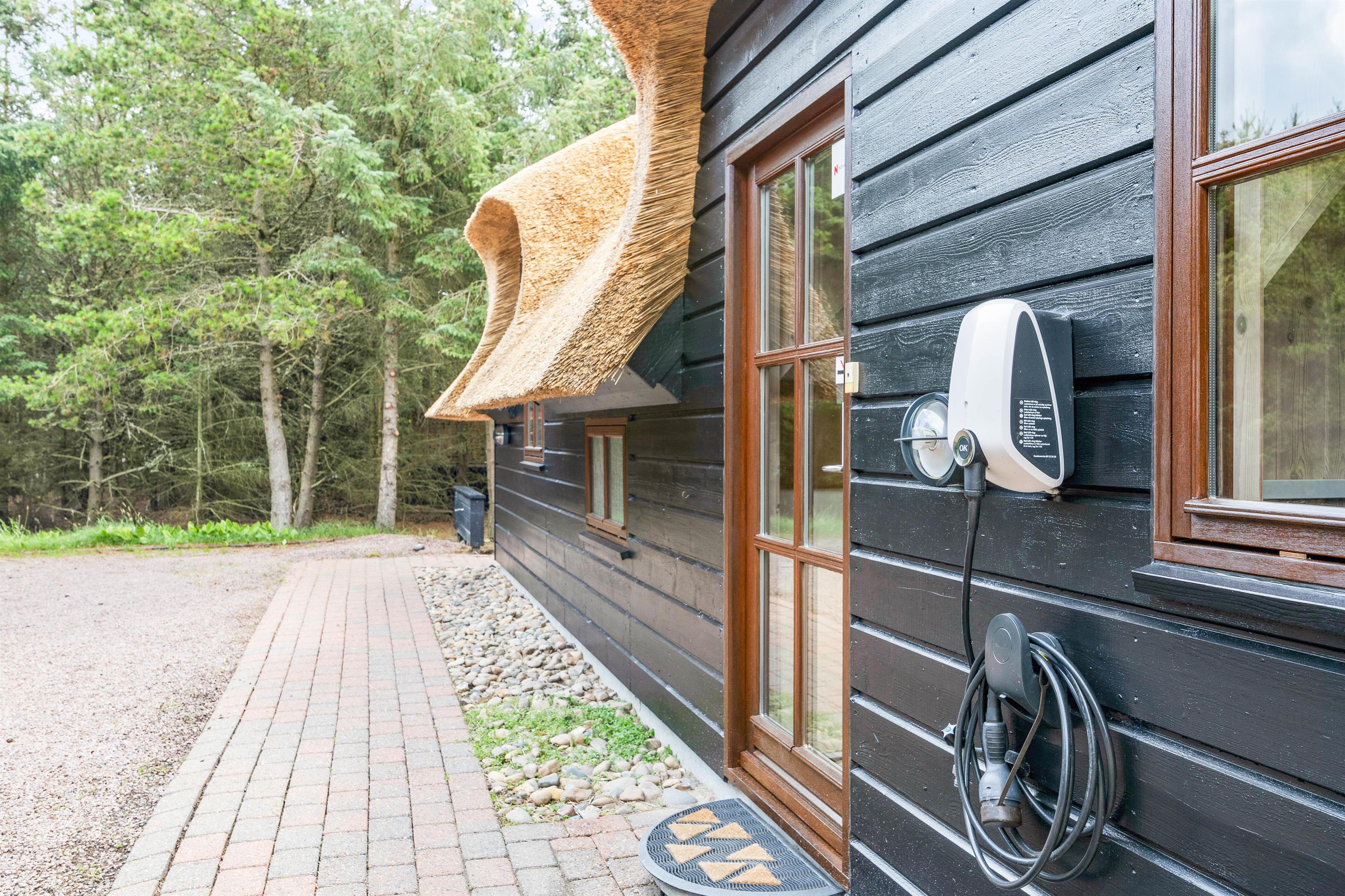 Sommerhuset ligger på en 1507 m² stor naturgrund, der er udstyret med havemøbler og tilbyder masser af plads til at nyde den friske luft. Jeres hund er også velkommen her – I må faktisk tage op til to hunde med. Stranden er kun 2000 meter væk og indbyder til lange gåture, og de nærmeste butikker ligger kun 850 meter væk - her I kan købe ind til jeres daglige behov. En anden fordel er ladestationen til jeres elbil, der sikrer en bekymringsfri ankomst og mobilitet under jeres ophold.