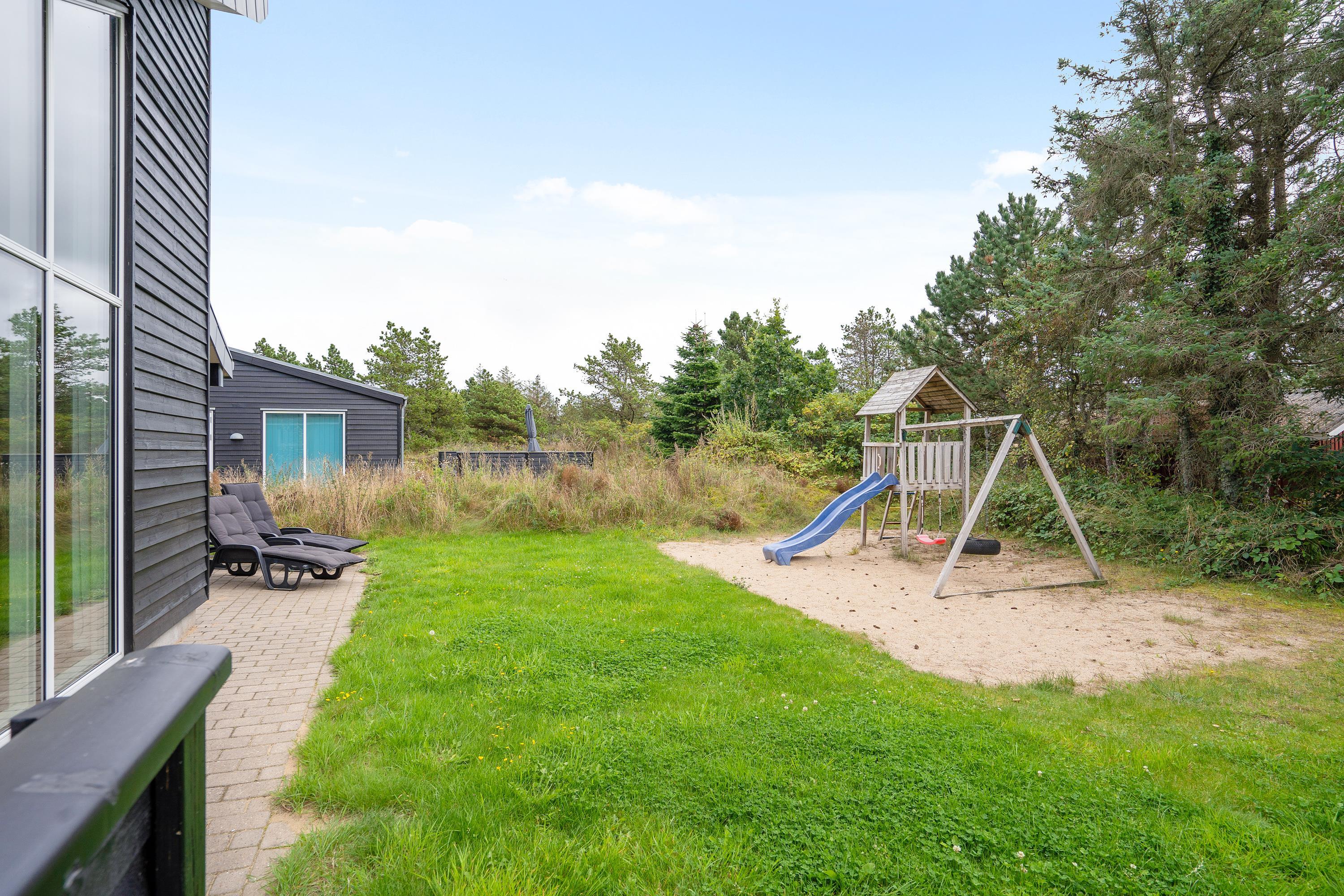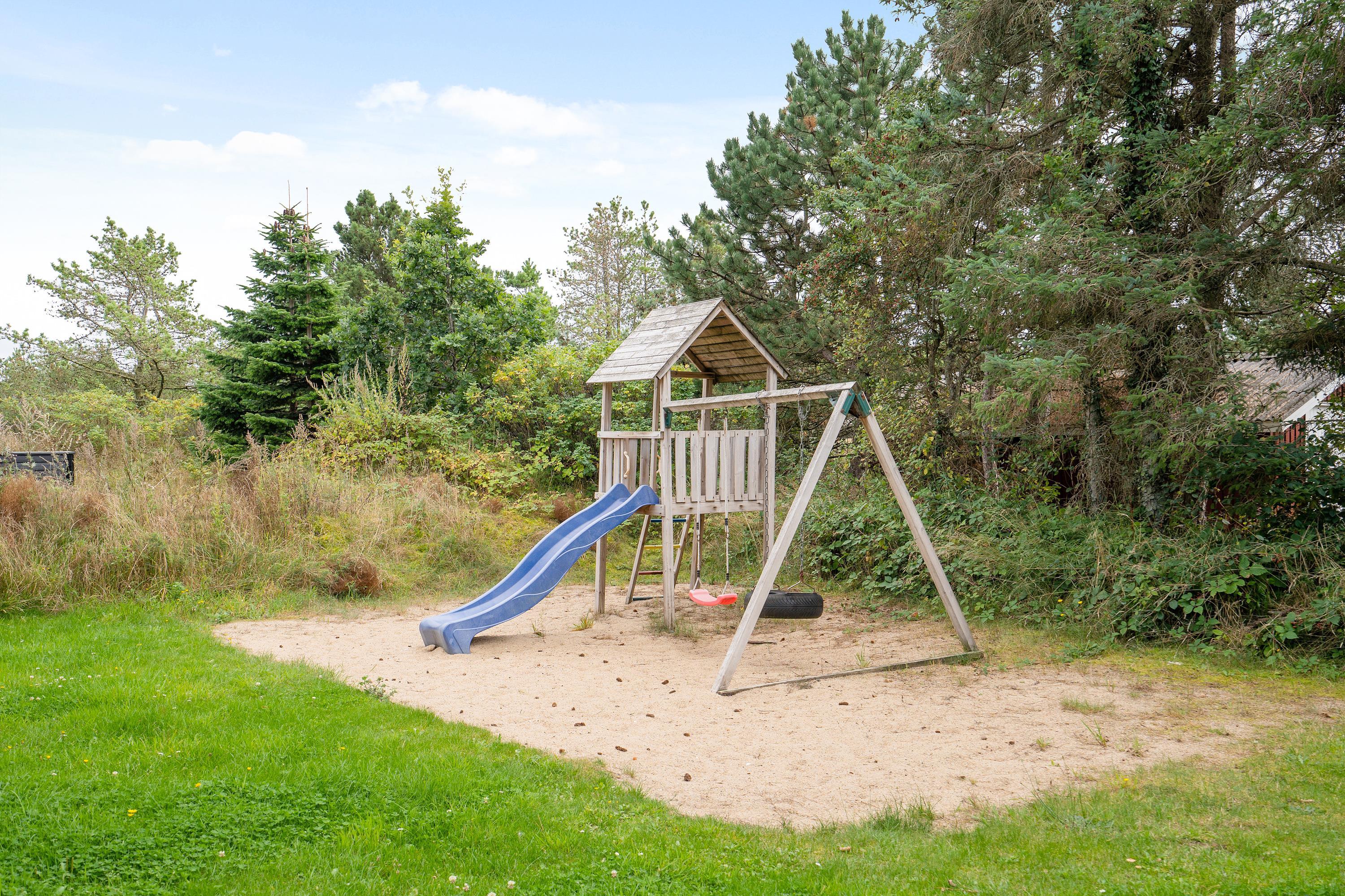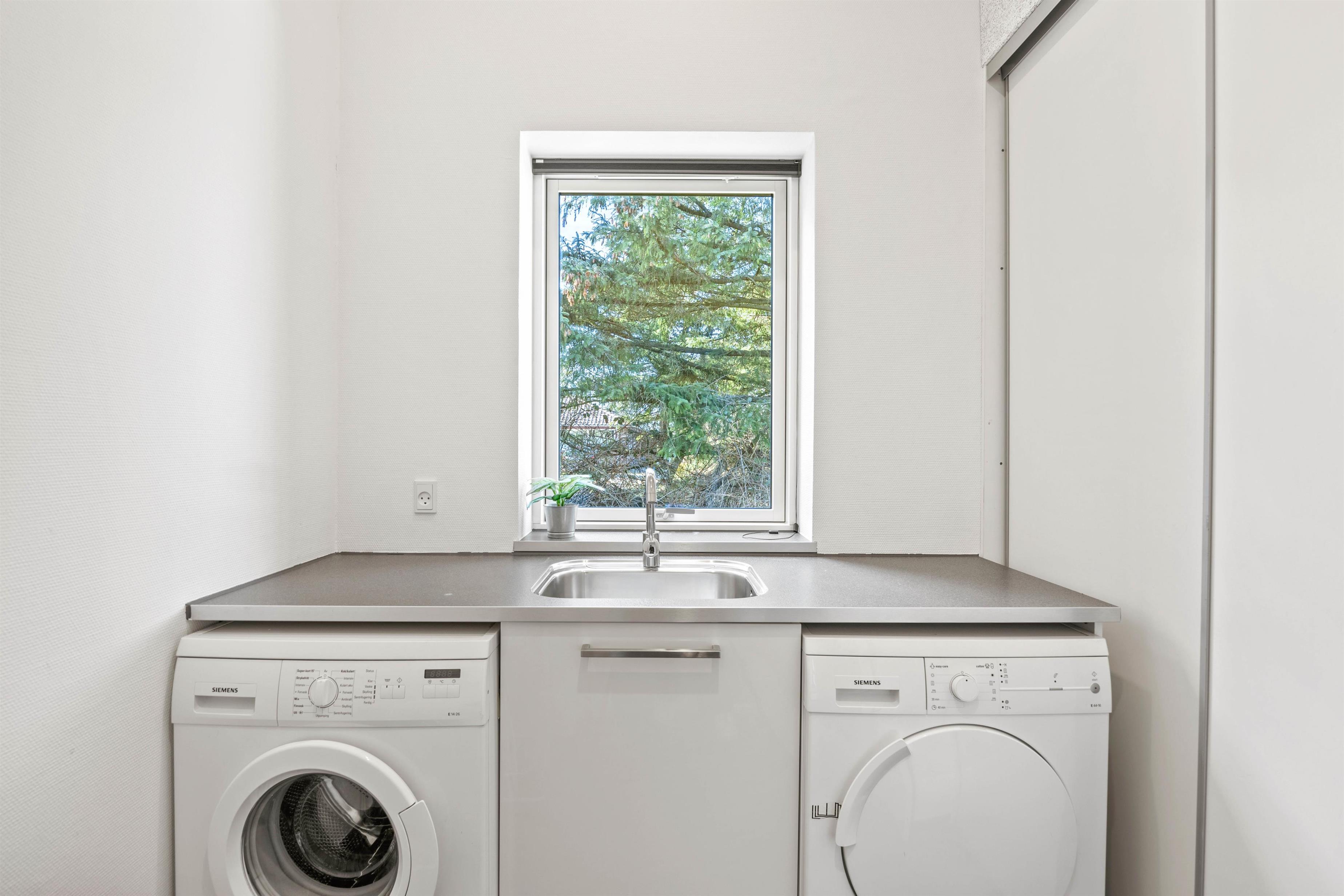 Køkkenet er indrettet med opvaskemaskine og derudover findes der også både vaskemaskine og tørretumbler i huset. Der er gynge, klatretårn med rutsjebane og masser af plads i haven til spil og andre udendørsaktiviteter.