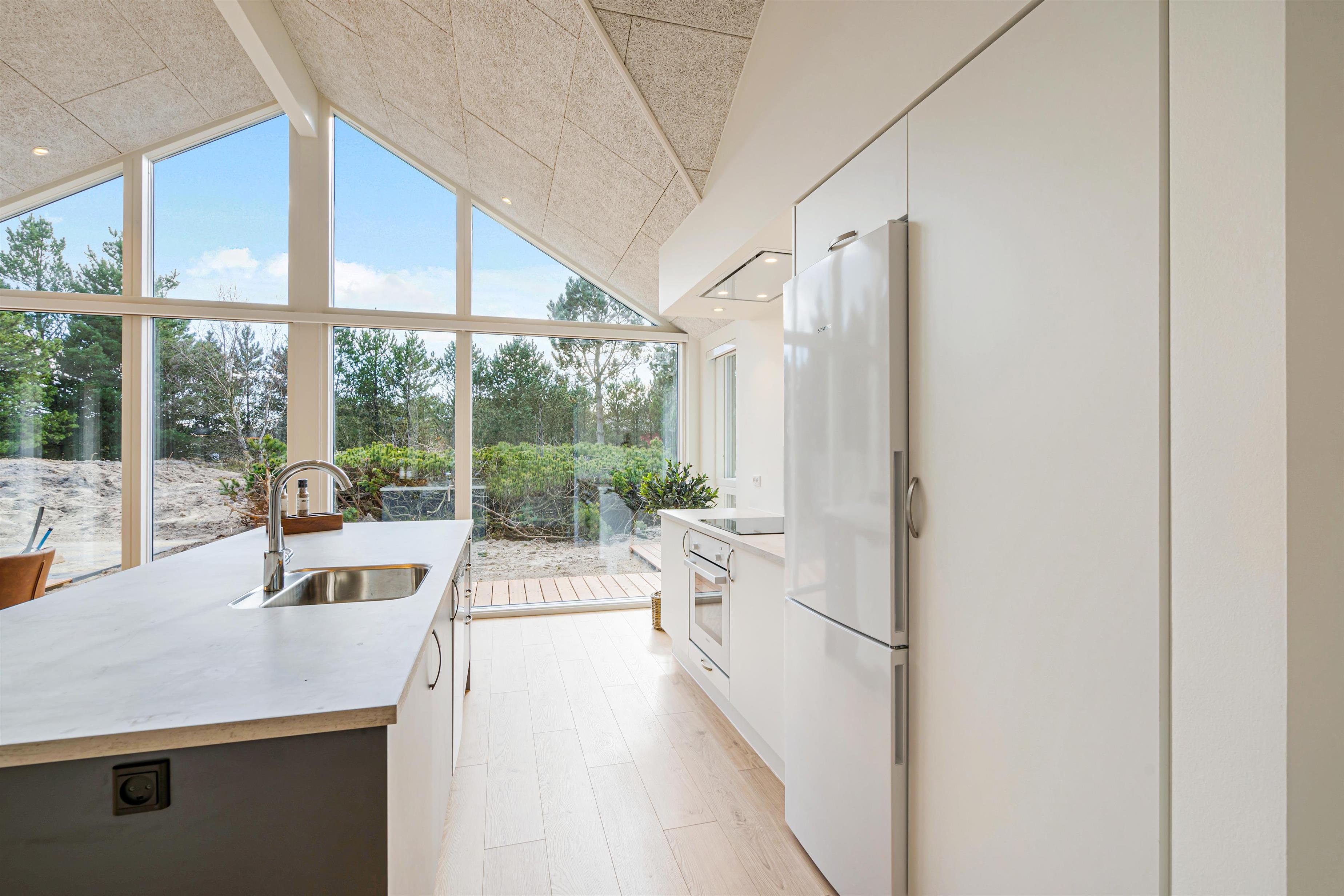 Det store feriehus på Kollemarken 30 er opført i 2021 i flotte kvalitetsmaterialer, og den stilfulde indretning fungerer som rød tråd fra ende til anden. Med hele 148 kvadratmeter at brede sig ud på, har I god plads til at tage hele familien eller venneflokken med på en luksuriøs ferie.