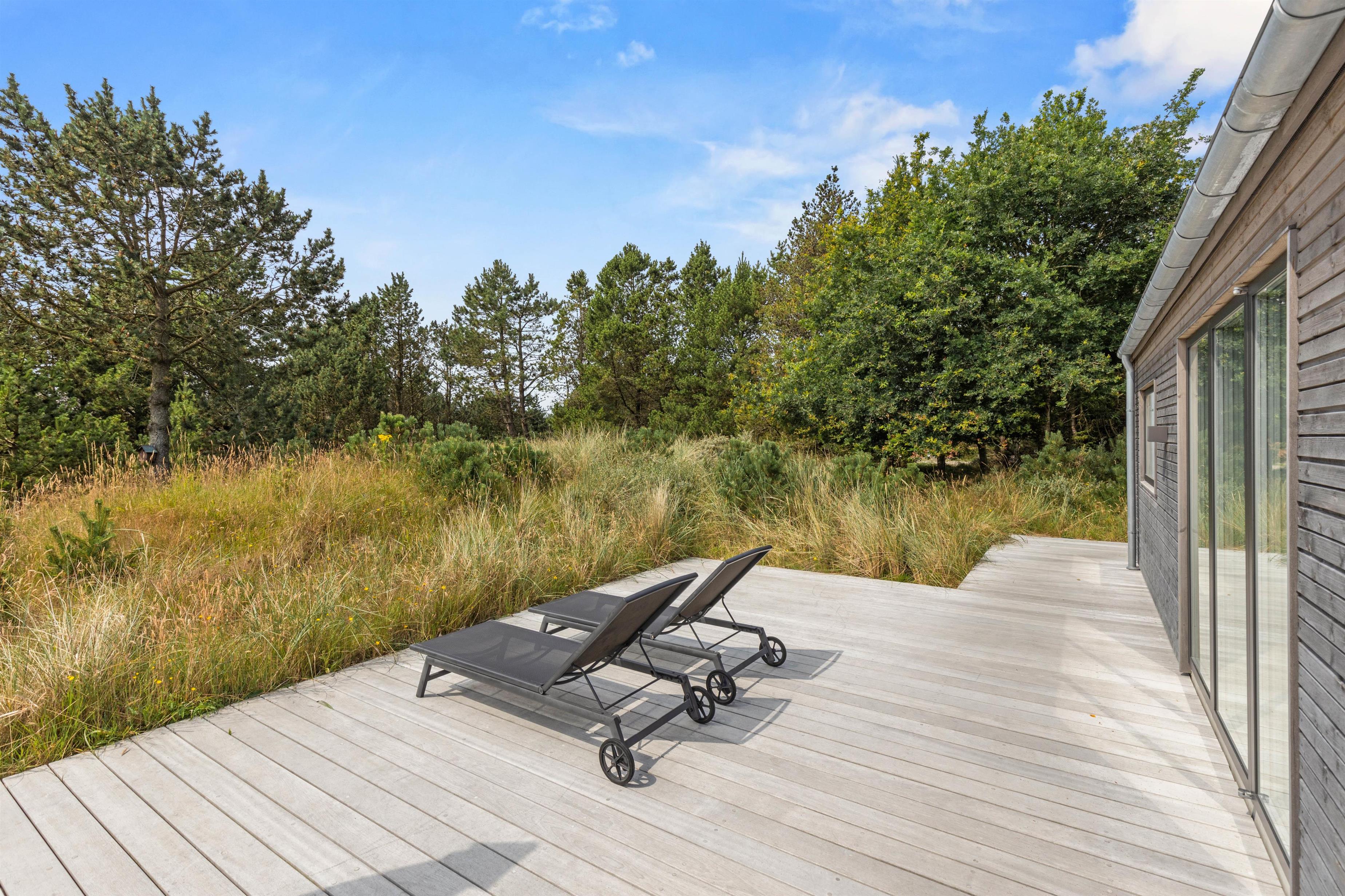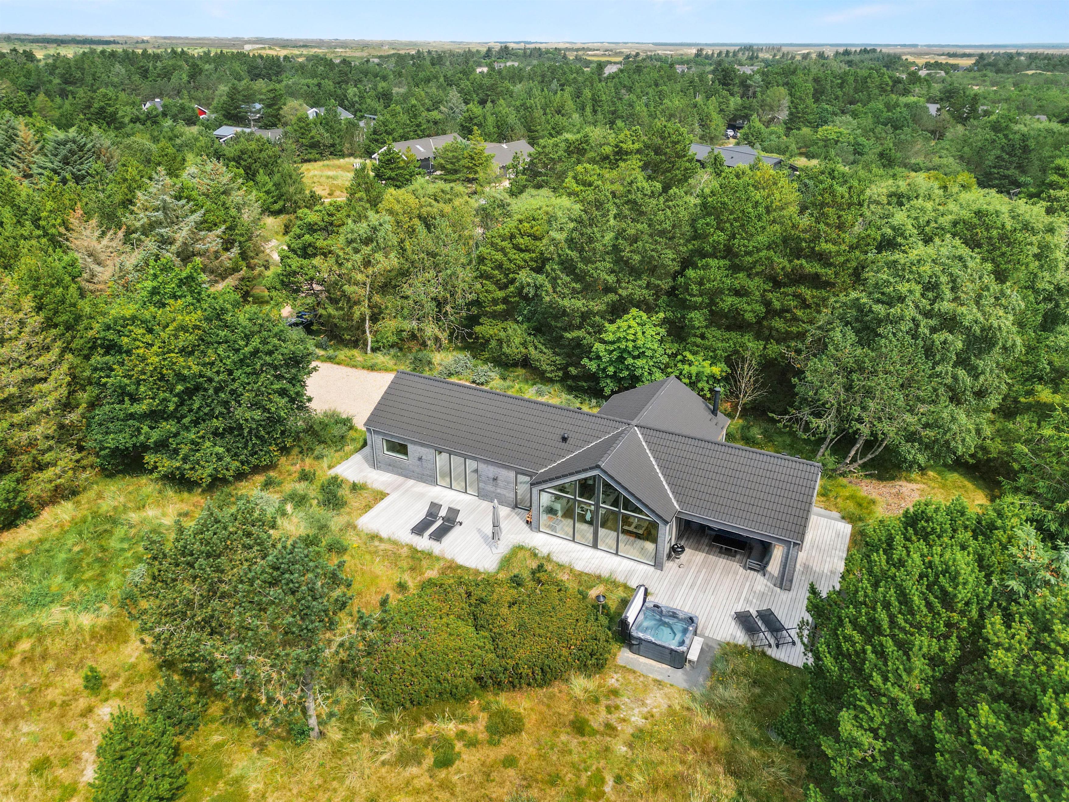 På en stor naturgrund kort vej fra Blåvands centrum ligger dette femstjernede aktivitetshus, der inviterer til en luksuriøs ferie for op til 8 personer. Den stilfulde indretning indbefatter blandt andet et billardbord, bordtennis, dart og så får I et fantastisk uderum med udendørs sauna og udespa.