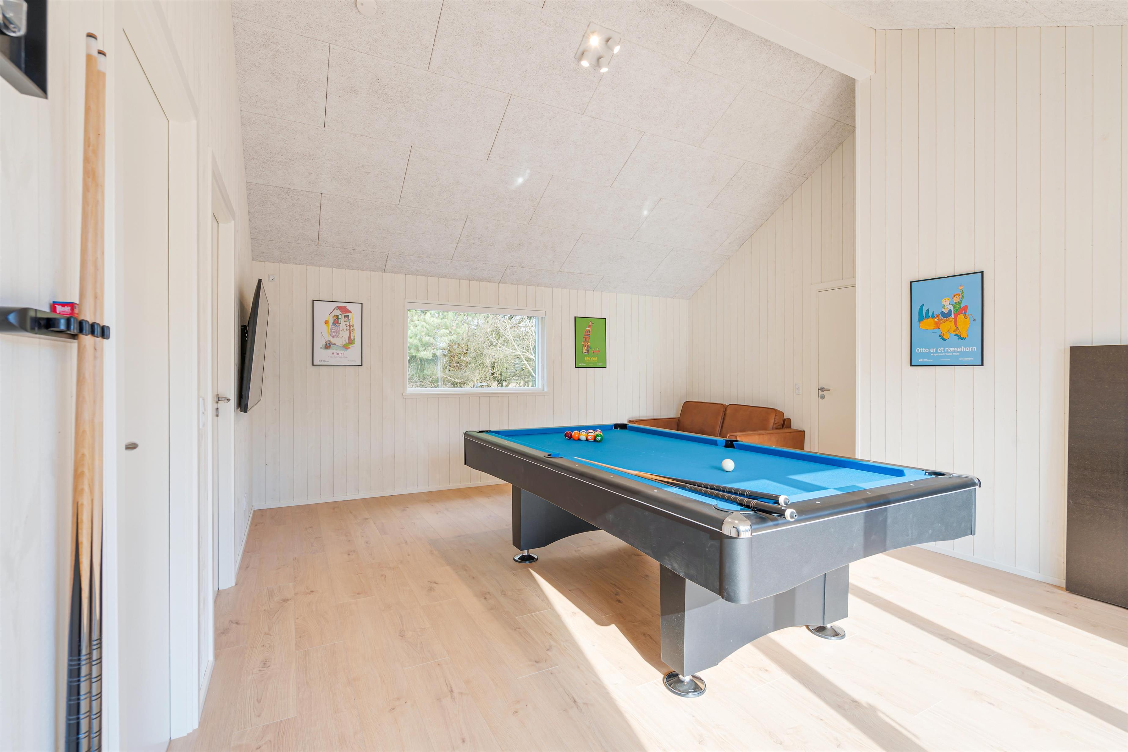 Feriehuset gemmer på masser af højdepunkter, og her bliver alle interesser mødt: Således kan de aktive feriegæster byde hinanden op til et spil billard eller bordtennis, mens de resterende tager en slapper på sofaen – måske med et godt glas rødvin og brændeovnens knitren i baggrunden. Alternativt er der også dart at underholde sig med.