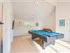 Stilfuld indretning med billardbord, brændeovn og gulvvarme i hele huset