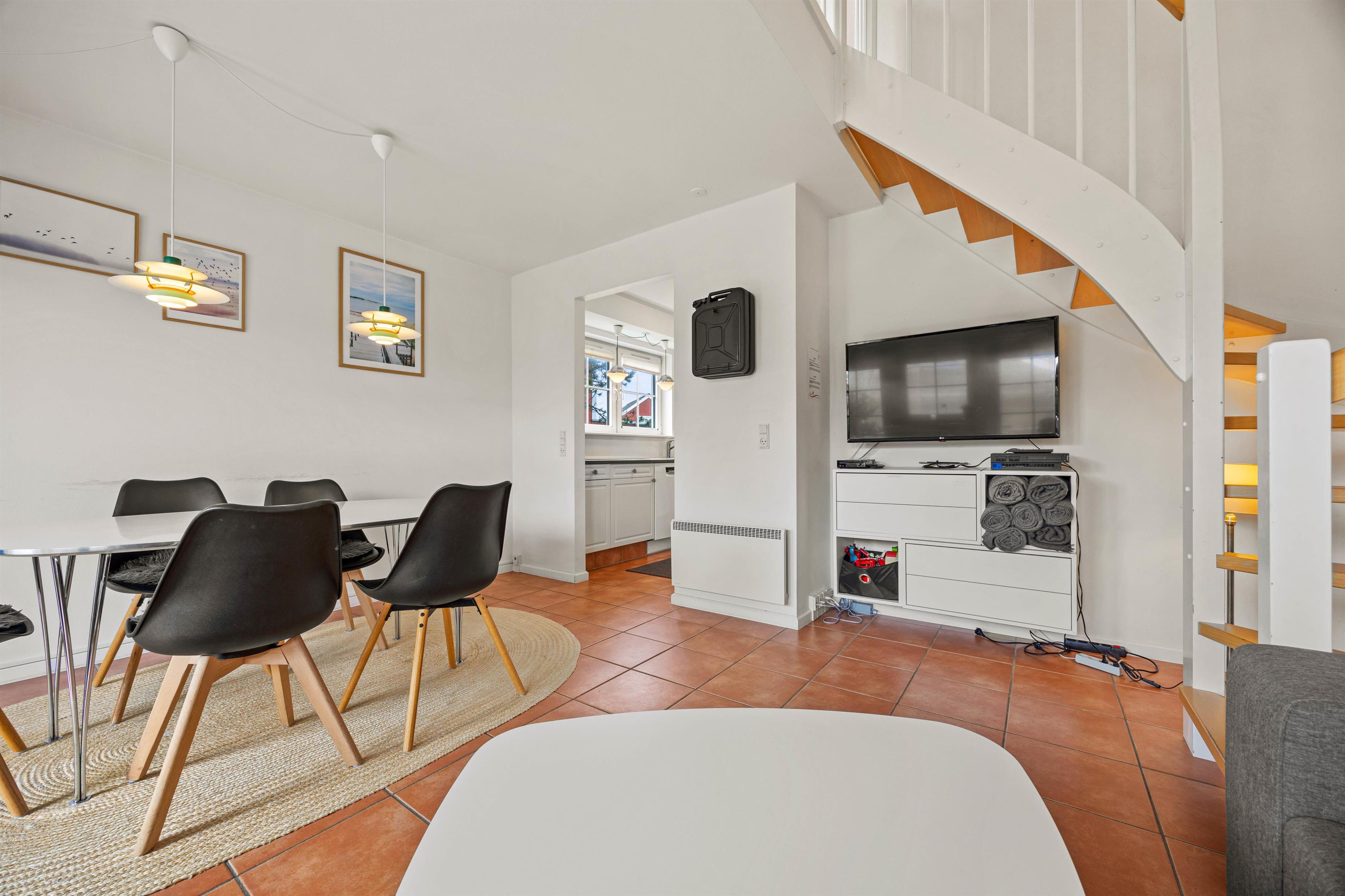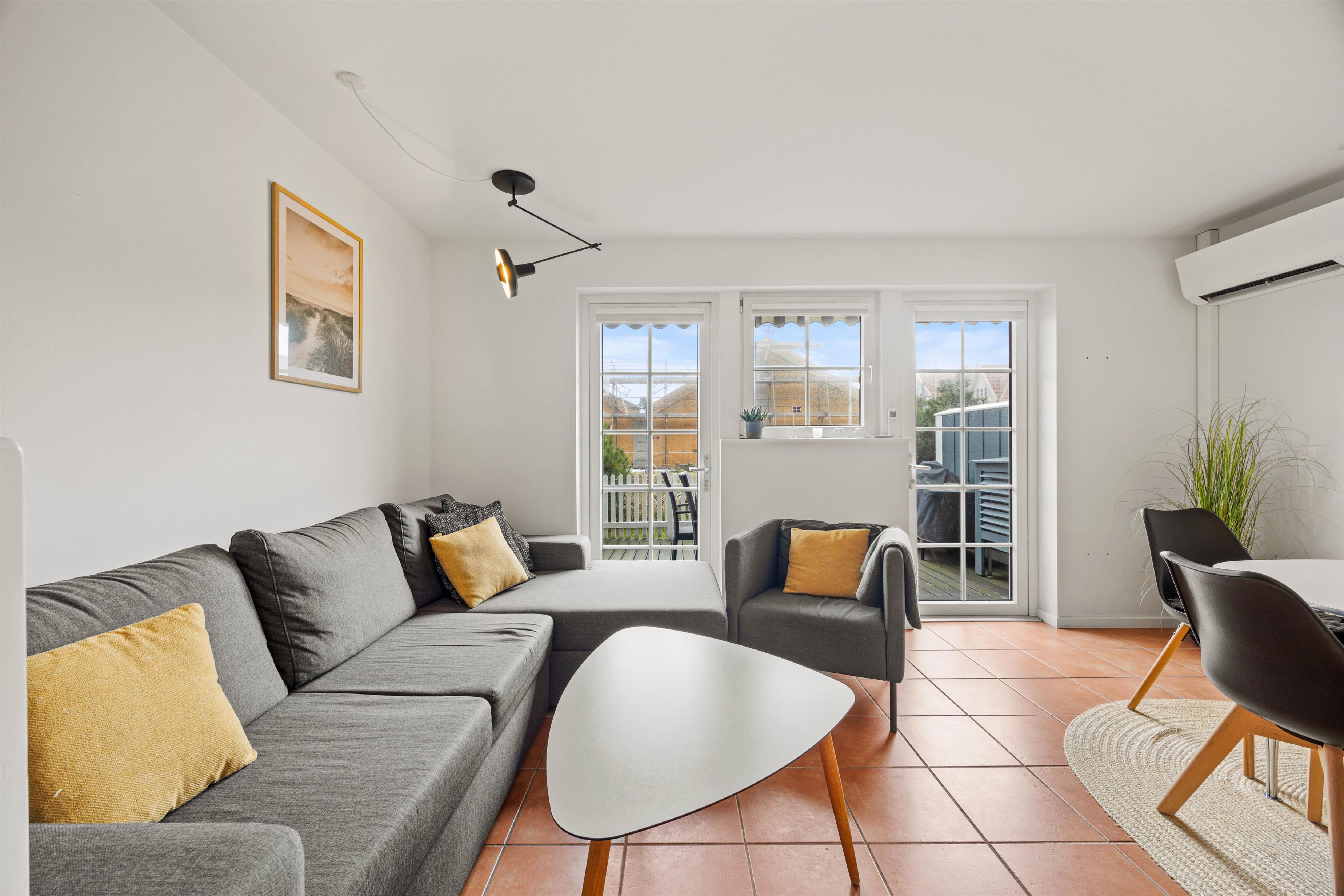 Feriehuset i Blåvand imponerer med en rummelig opholdsstue på 92 m2. De moderne faciliteter inkluderer bekvemmeligheder som en opvaskemaskine, en separat 40-liters fryser samt både vaskemaskine og tørretumbler. Gulvvarmen i badeværelset skaber en varm og behagelig atmosfære, mens den energibesparende luft-til-luft varmepumpe, sørger for den idéelle temperatur og et godt indeklima året rundt.