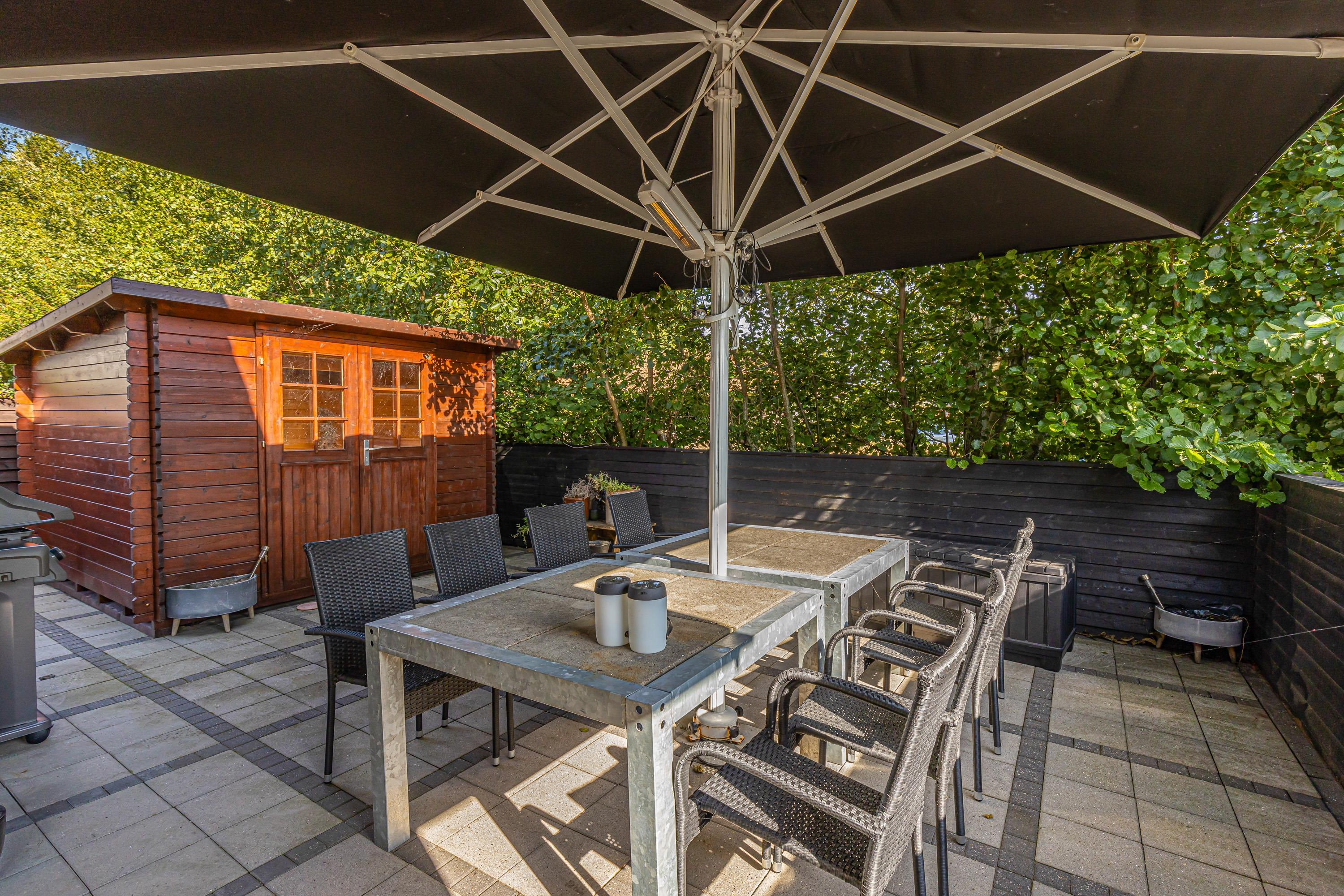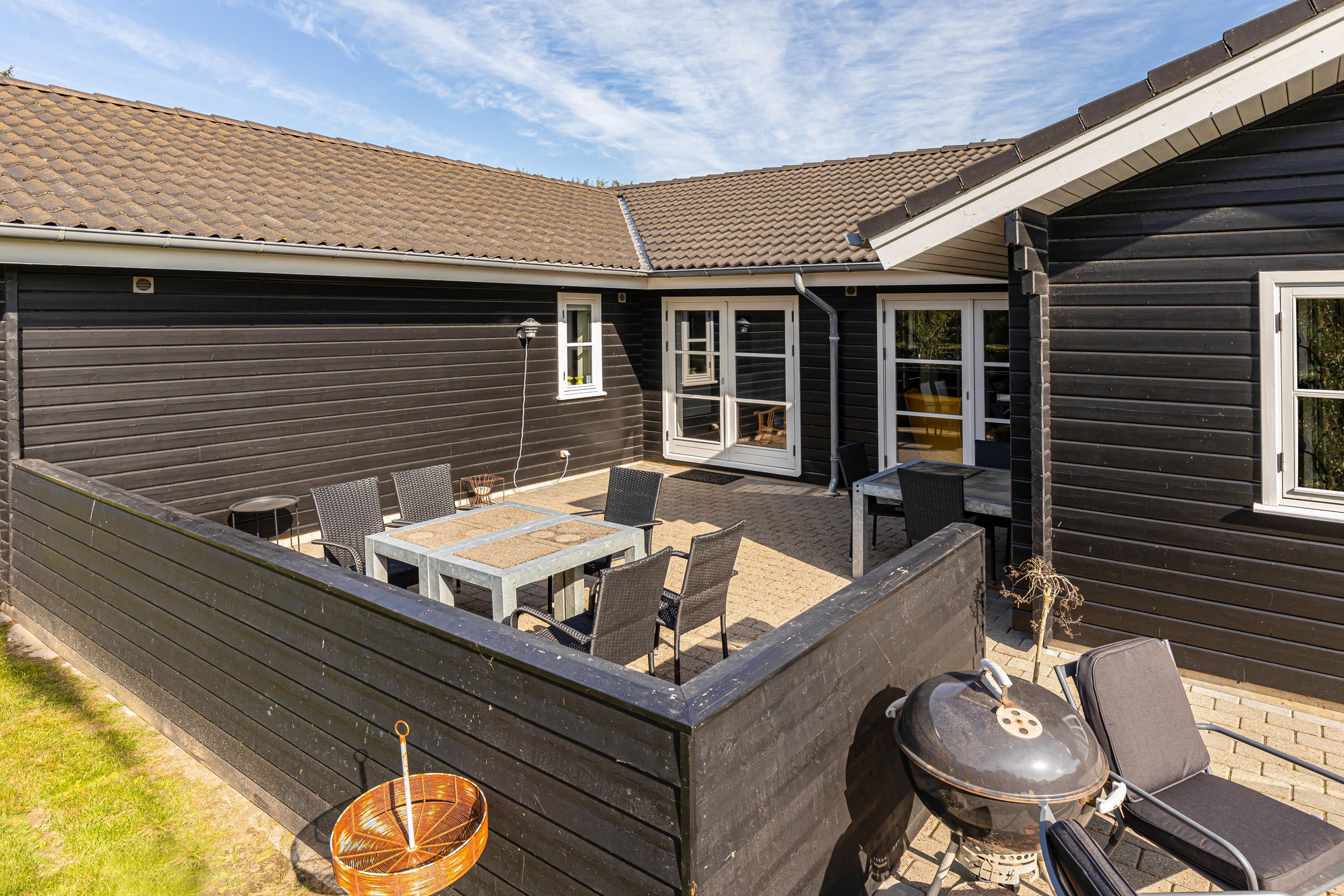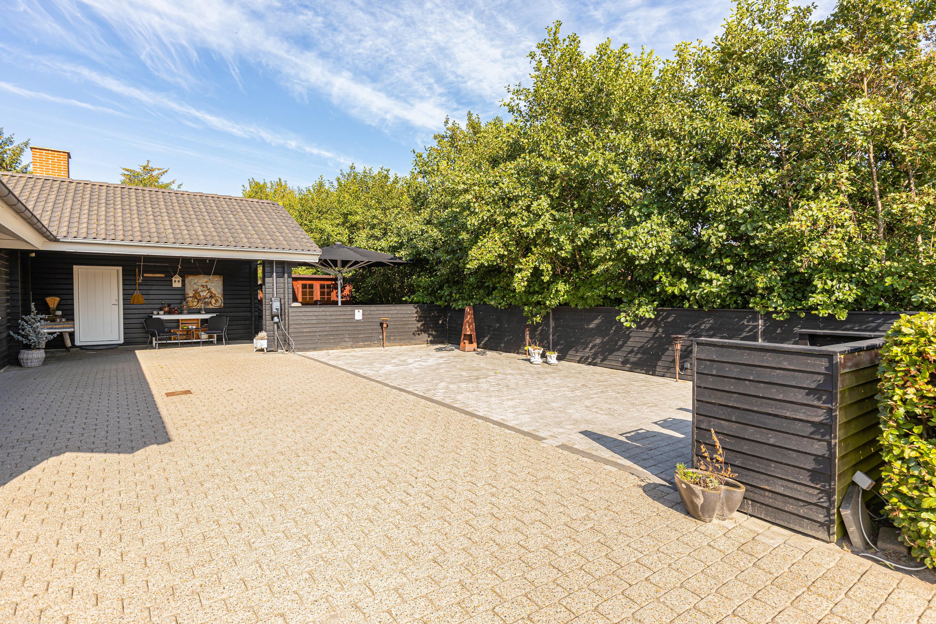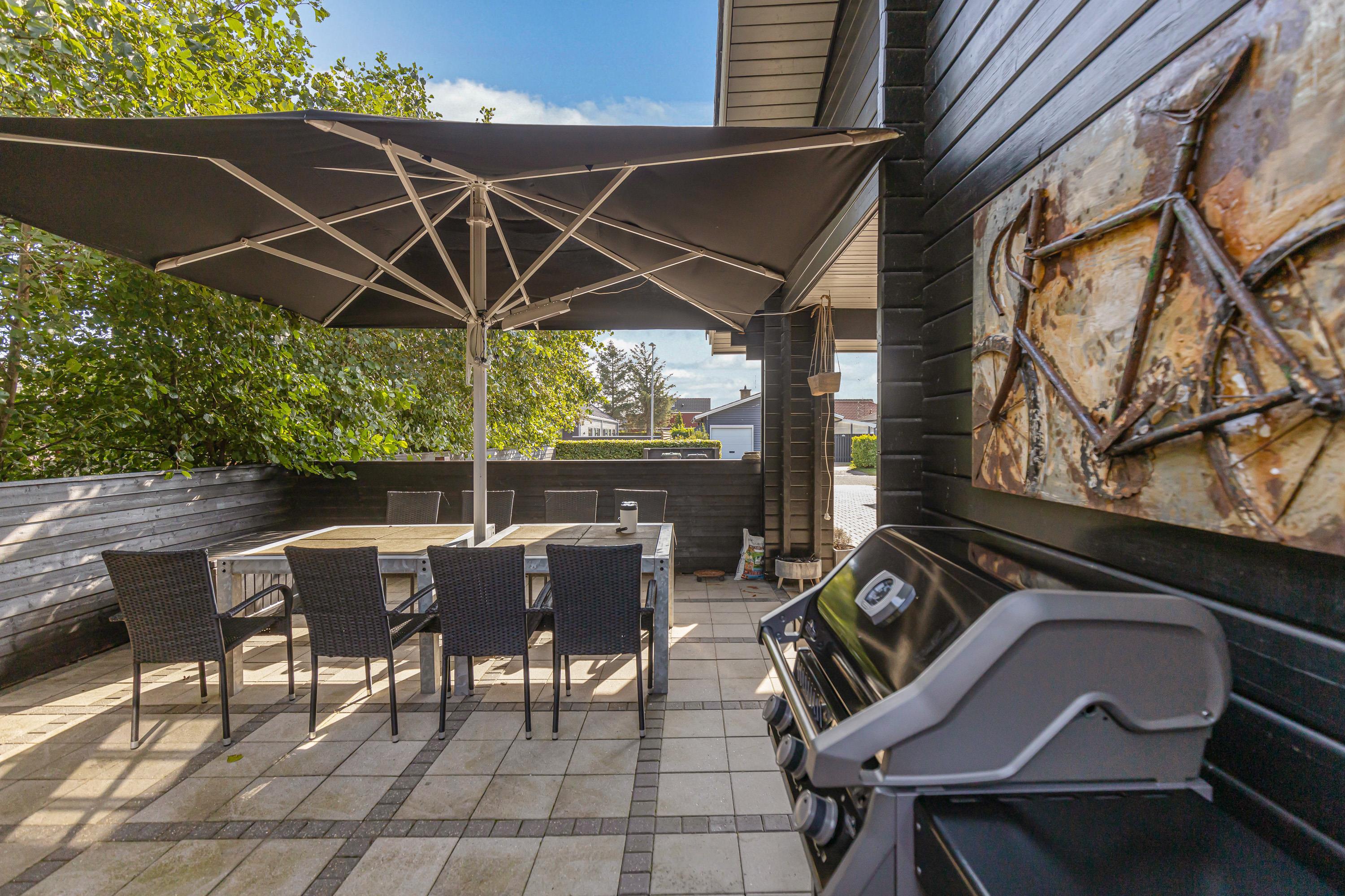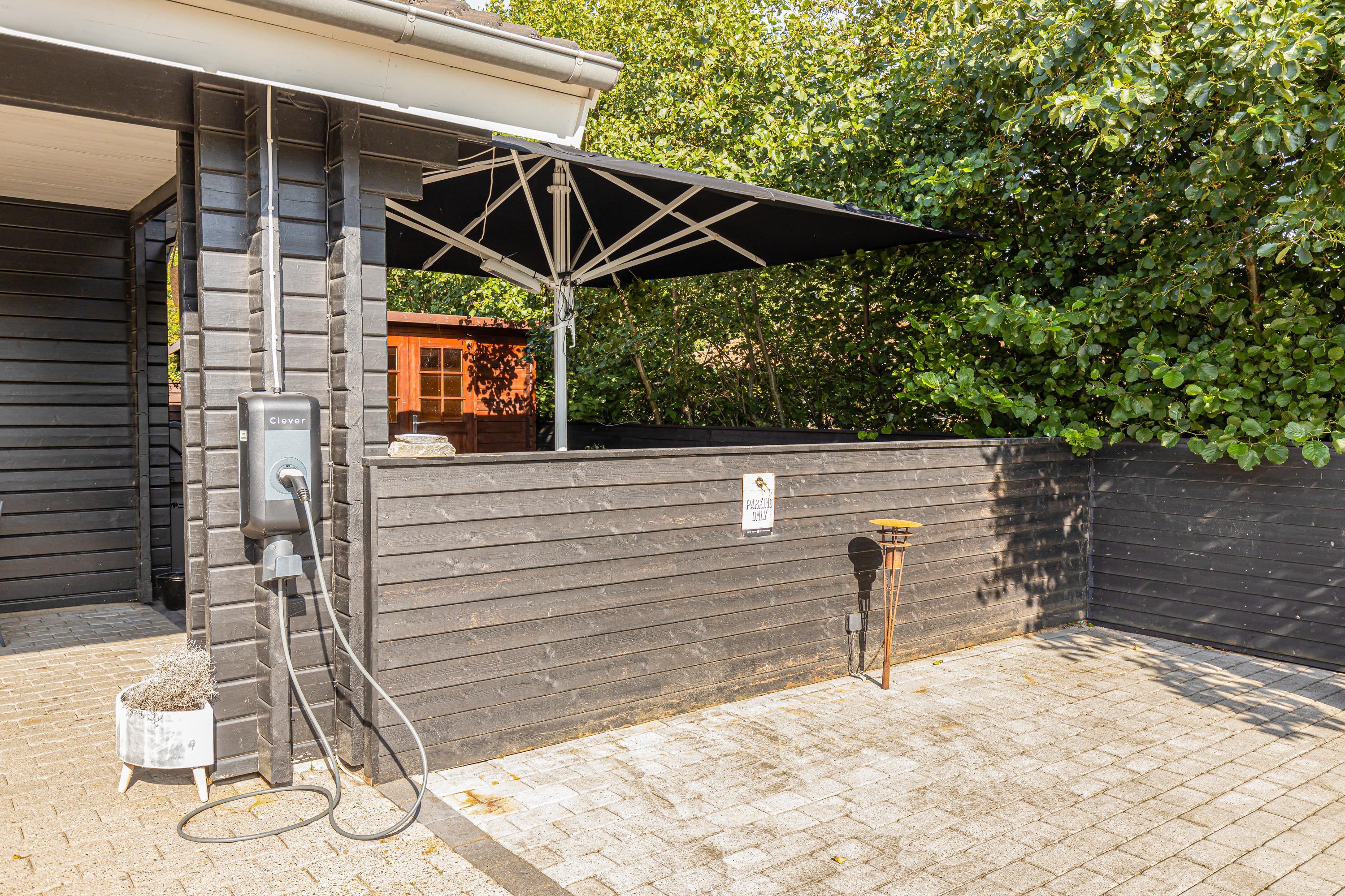 Den ene terrasse er delvist afskærmet, så I kan sidde i skygge, hvis solen er for skarp. Den anden terrasse er lukket af, så hundene nemt kan luftes, uden at de stikker af. I har også en gasgrill til rådighed, så I nemt og hurtigt kan tilberede et lækkert måltid. Hvis I kører el-bil, så har sommerhuset sin helt egen lademulighed, som I kan benytte.