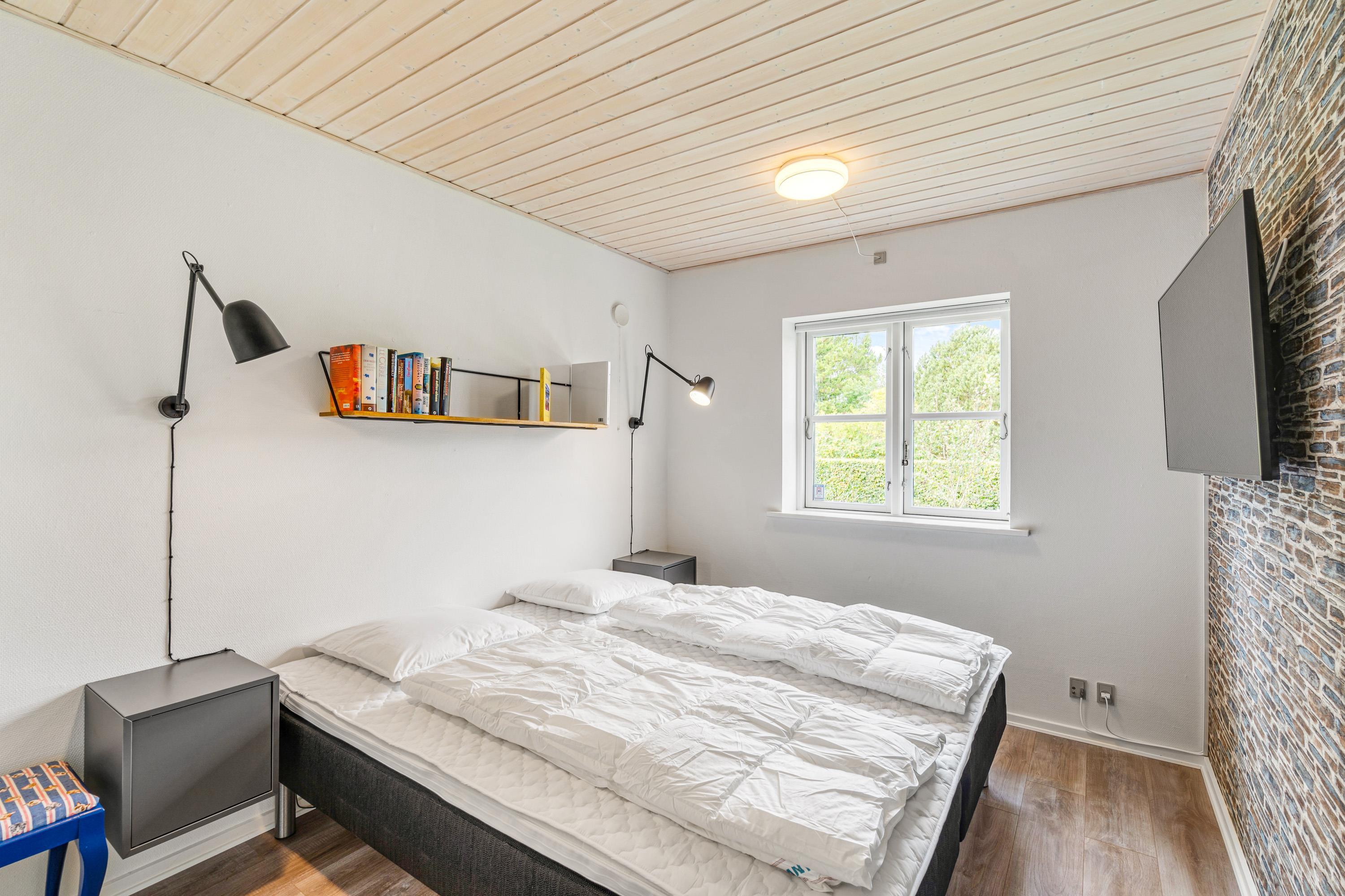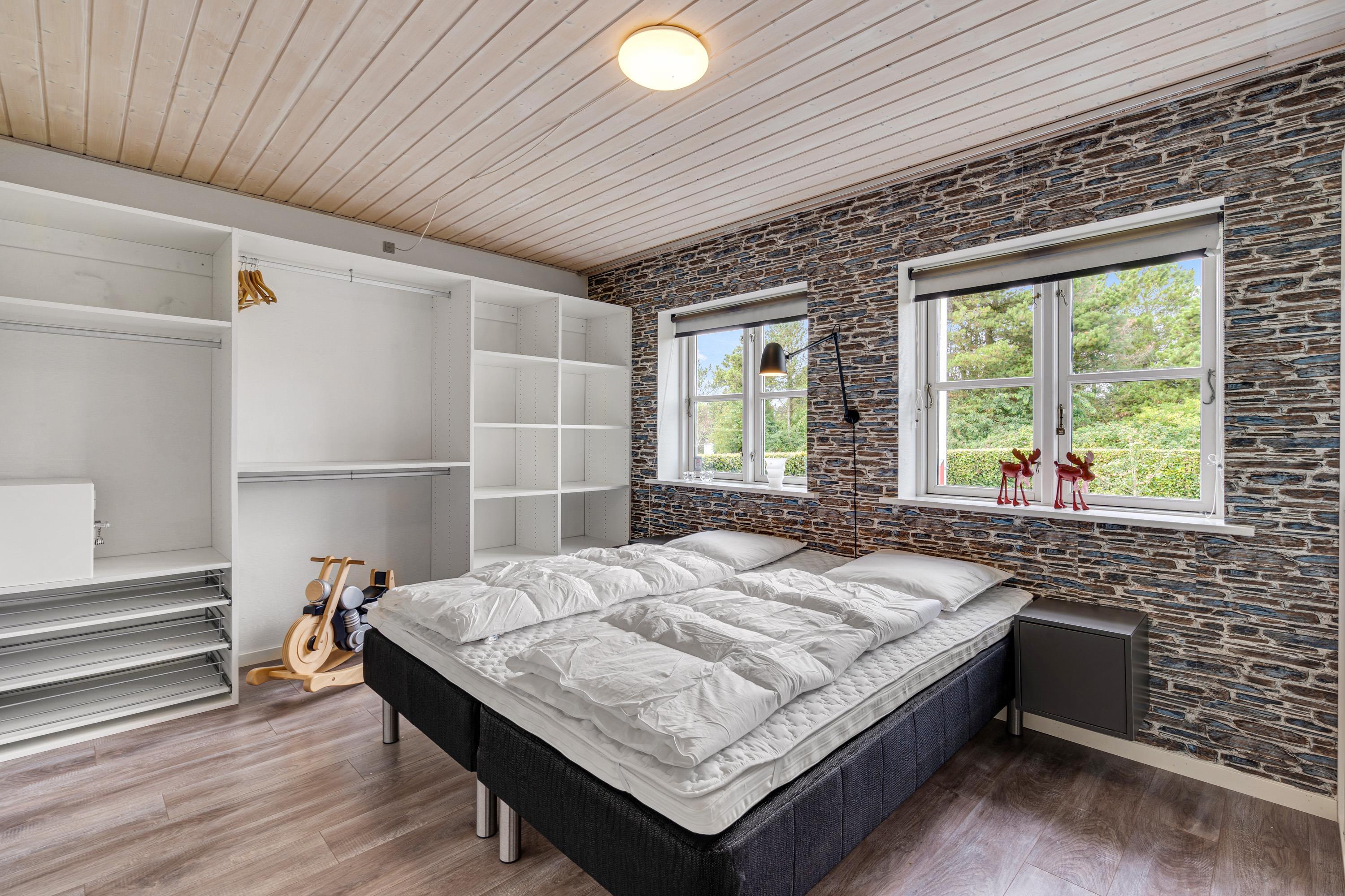 Sommerhuset har 2 badeværelser, og det er derfor oplagt, hvis I er to familier, som holder ferie sammen, så hver familie kan få sit eget. De 2 badeværelser er selvfølgelig begge udstyret med gulvvarme. Sommerhuset har 4 soveværelser, hvor alle er indrettet med dobbeltseng, så I kan få en god søvn på jeres ferie.