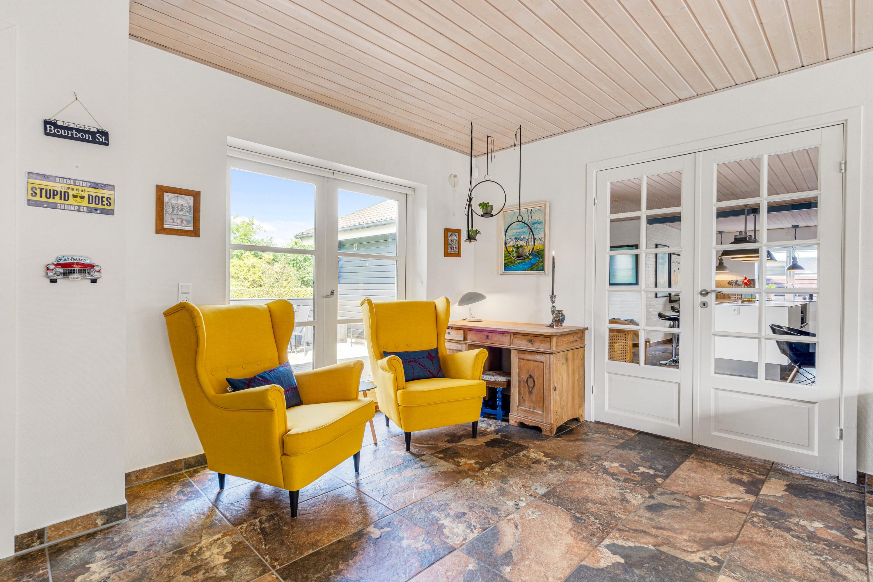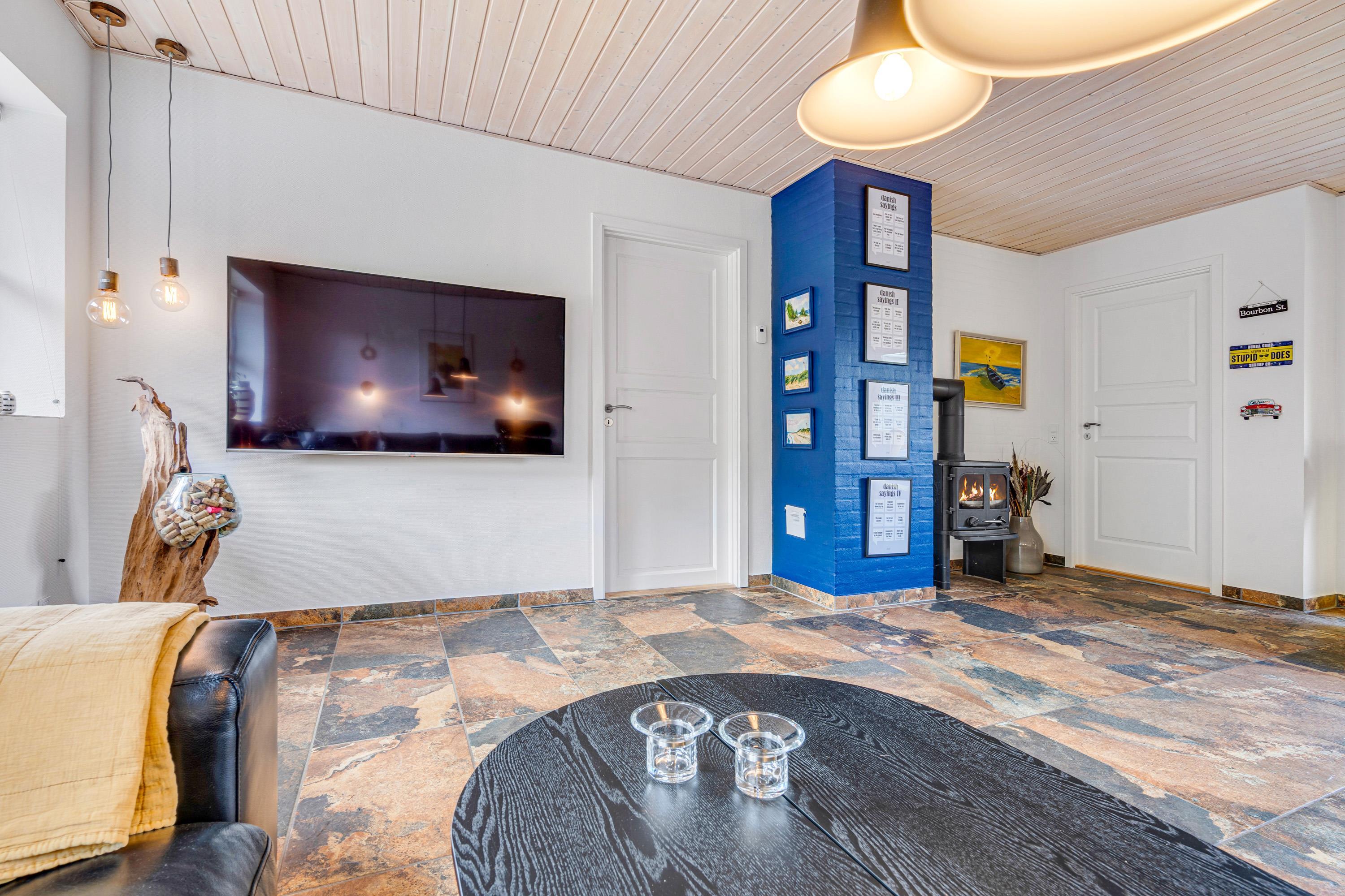 I stuen kan hele familien samles efter en god dag ved standen. Her har sommerhusets tv en chromecast, så I kan streame alle jeres yndlingsfilm, lige præcis når I har lyst.