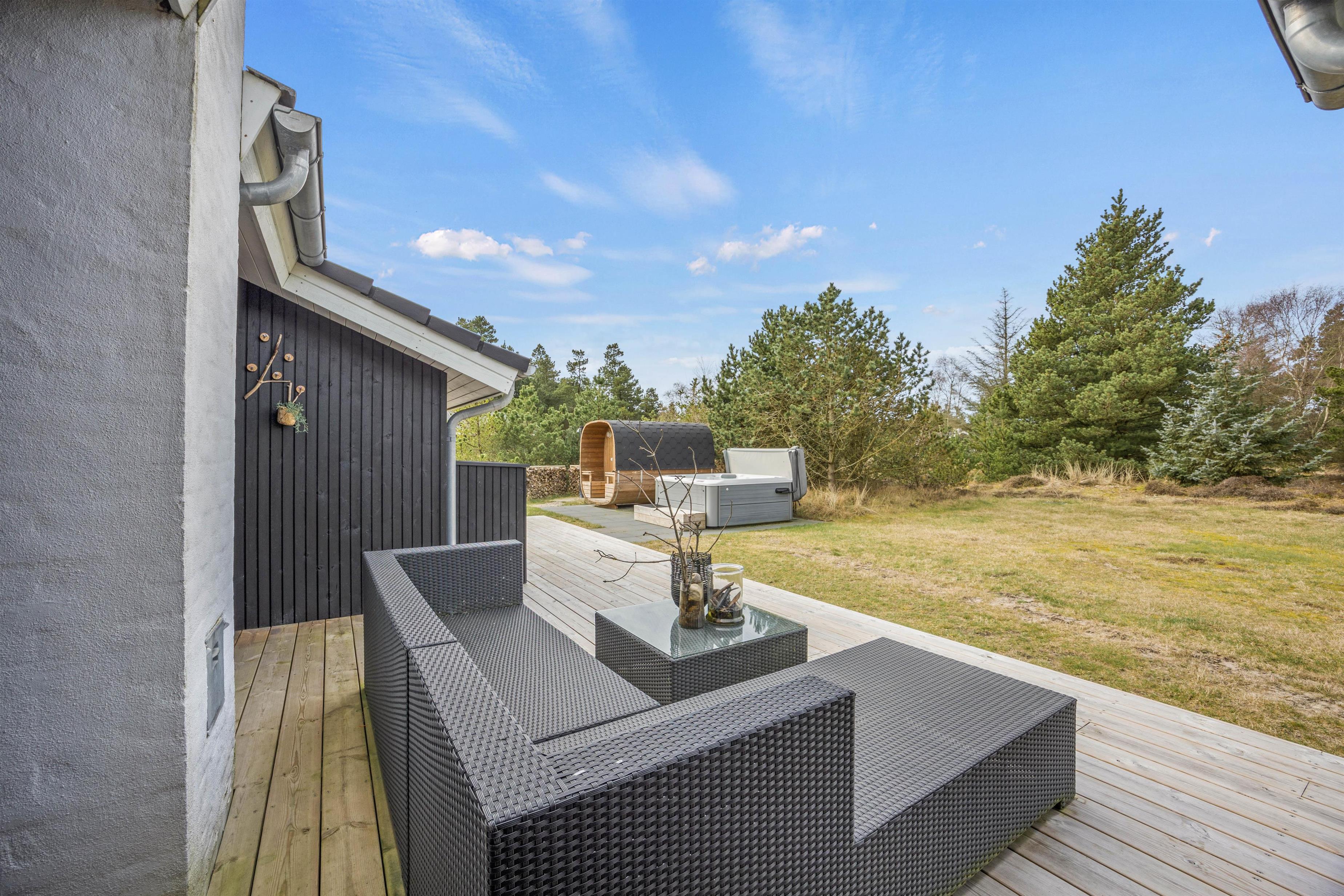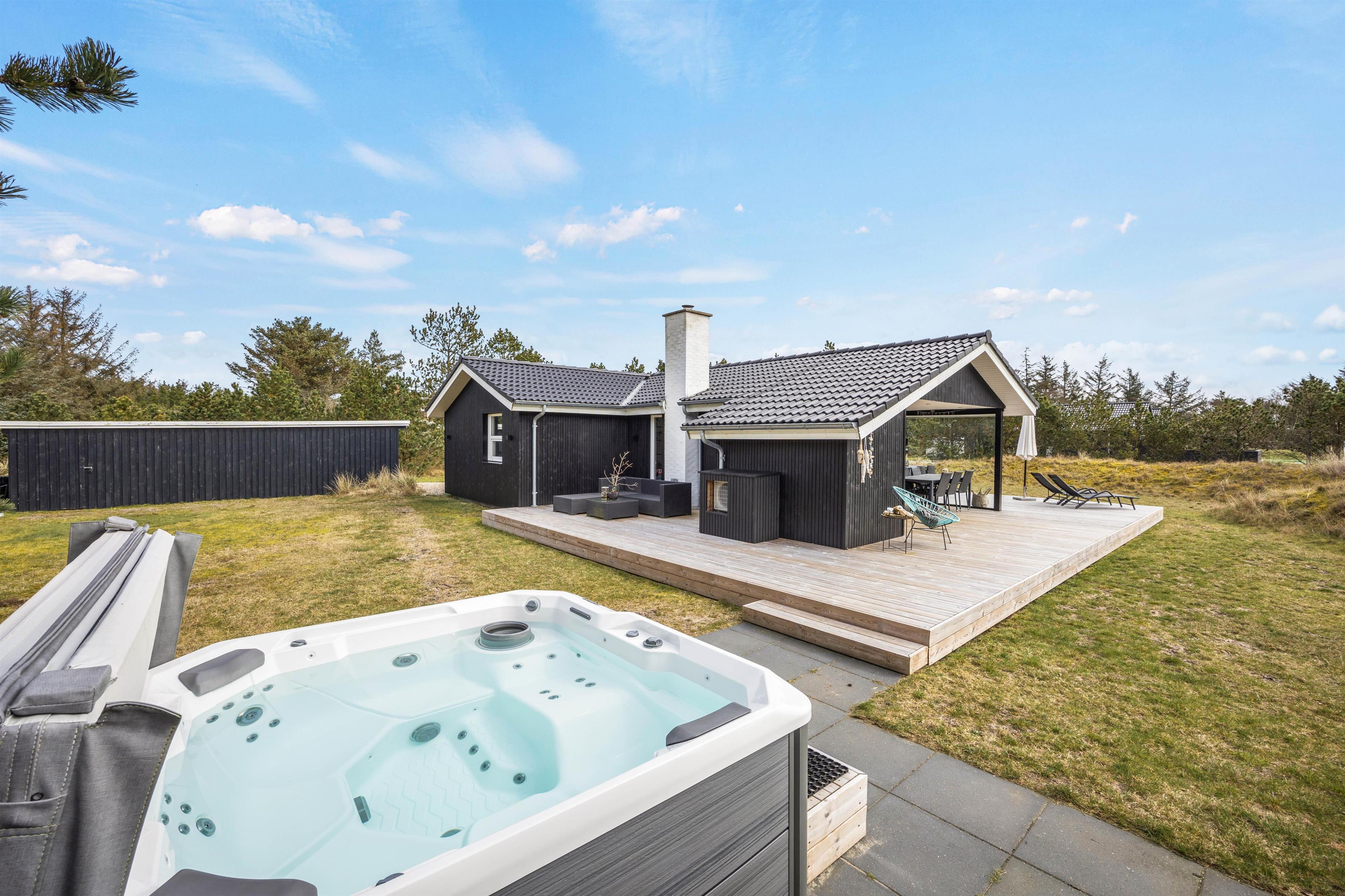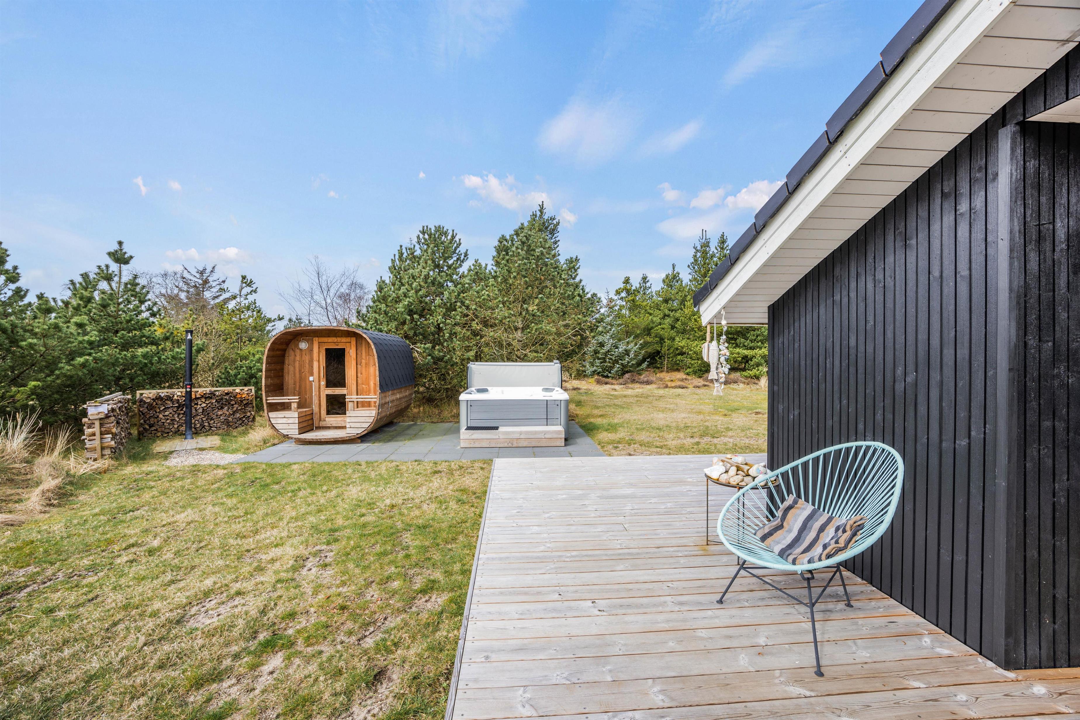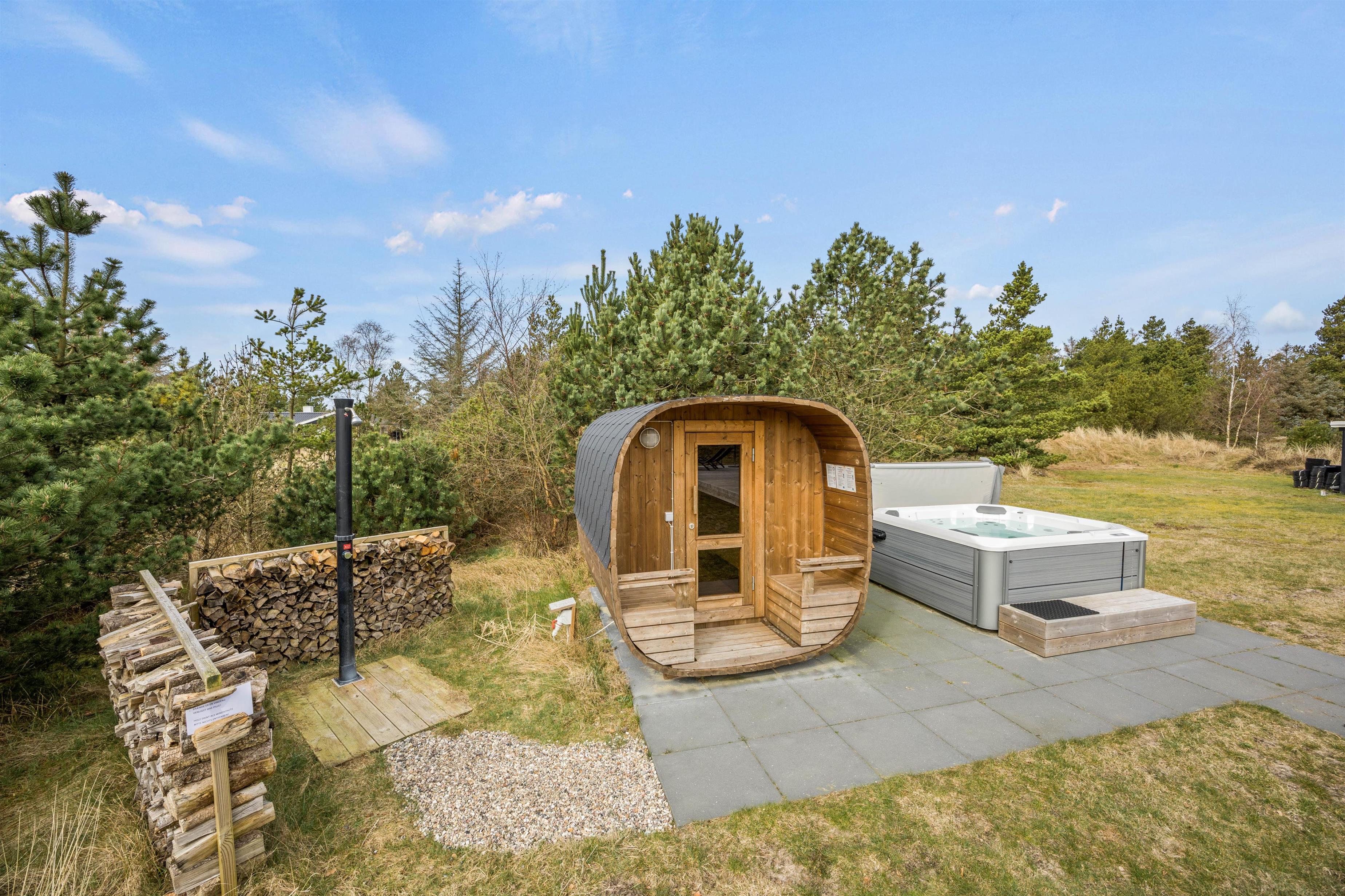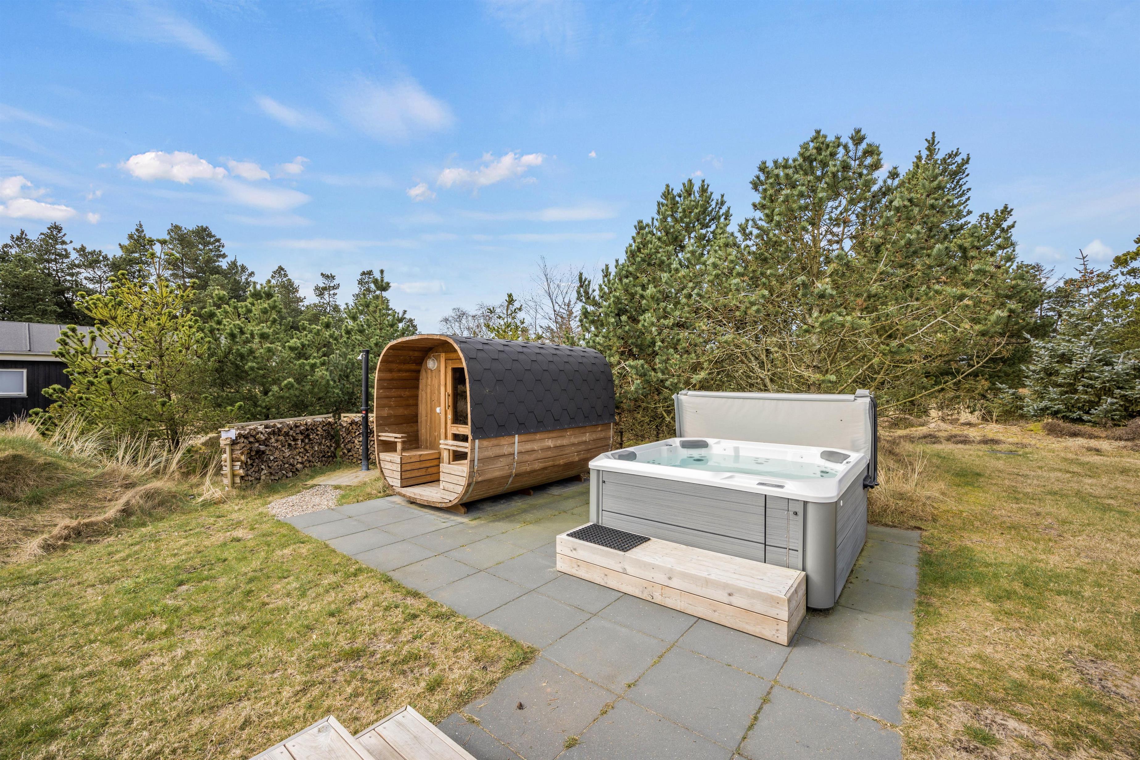 Her på denne dejlige naturgrund finder i et udespa og en udesauna - perfekt til et boblende bad, uanset om det er sommer eller vinter. Her kan i nyde udsigten til stjernehimlen og tage en afslappende tur i saunaen.