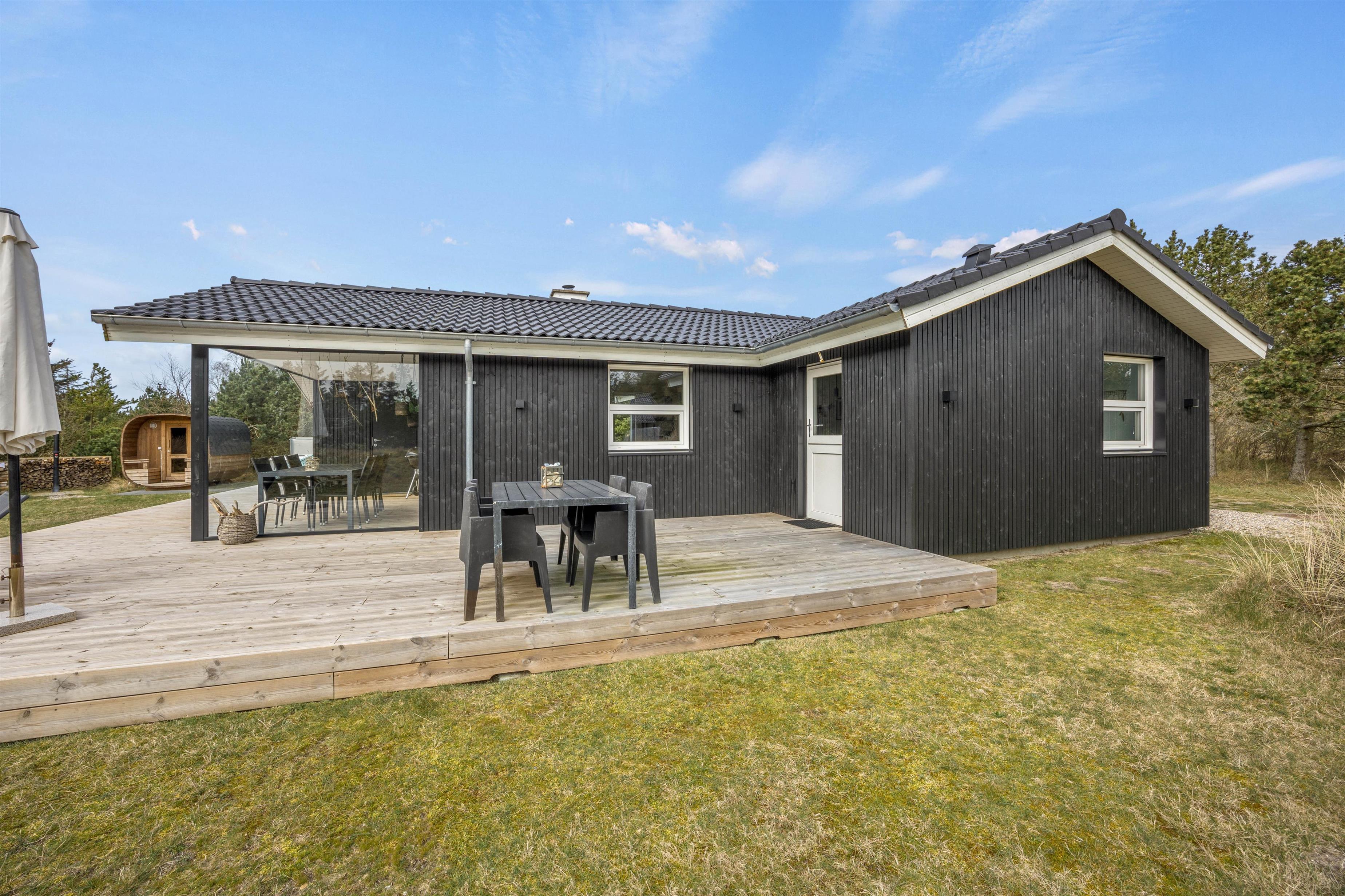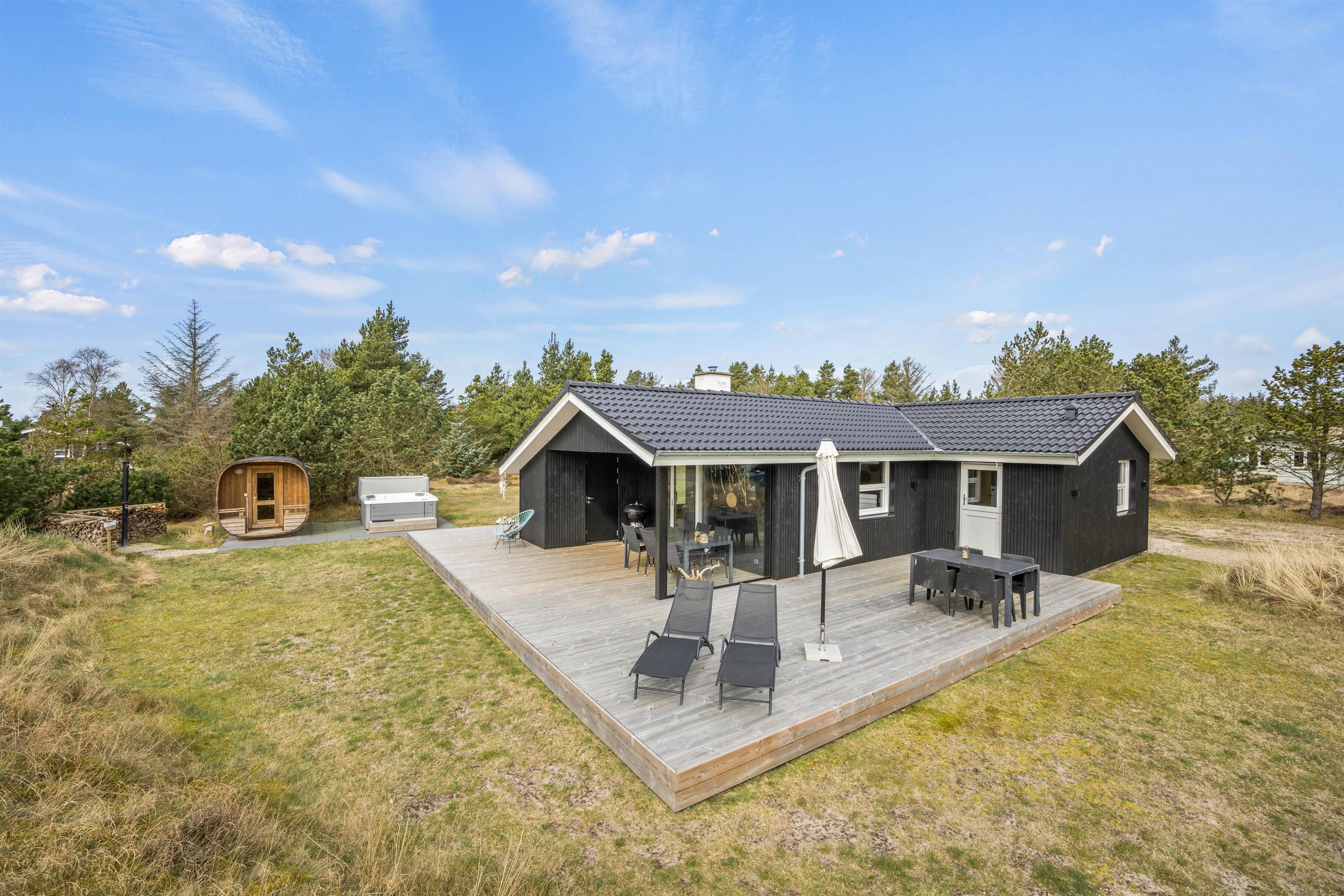 I det naturskønne Blåvand ligger dette hyggelige i 2021 nyrenoverede feriehus til 6 personer. Det sorte træhus har en helt speciel charme over sig både udvendigt og indvendigt, og der er lagt op til en afstressende sommerhusferie med wellness i herlige omgivelser.