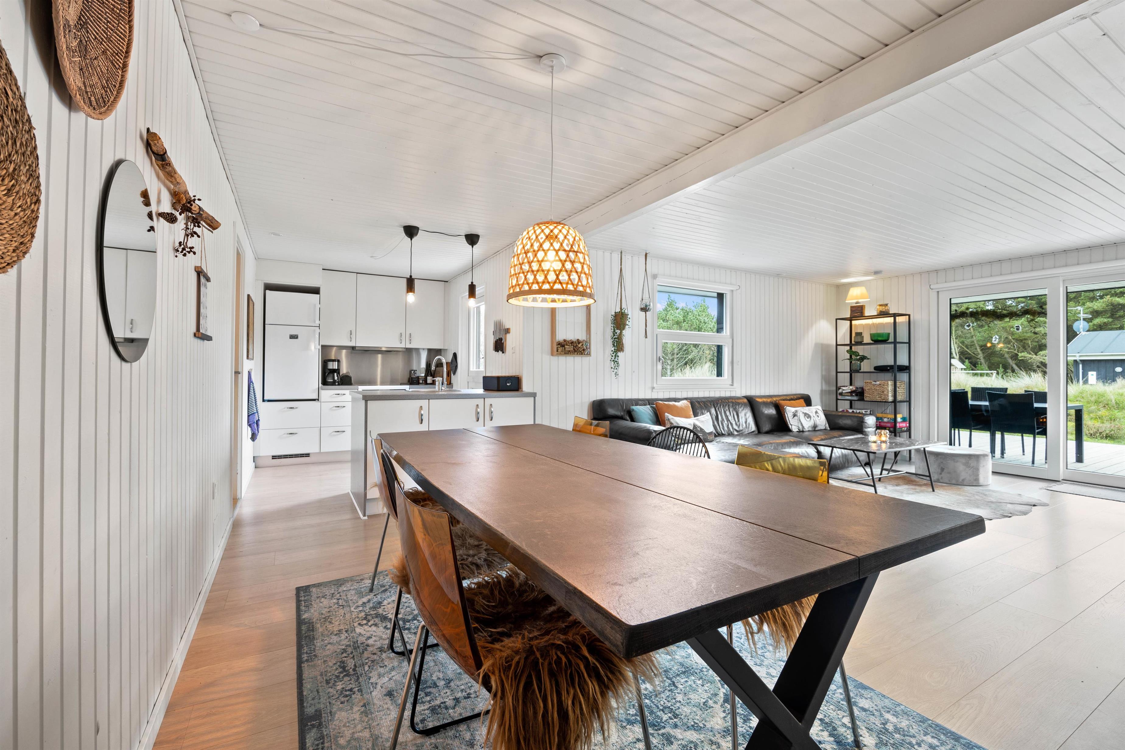 Det hyggelige feriehus på Sandtoftevej 62 leder straks tankerne hen på en dejlig sommerhusferie i det grønne. Indvendigt vil I blive budt velkommen af en lys og venlig indretning der skaber en imødekommende atmosfære. Stue og køkken er slået sammen til ét stort opholdsrum, og her kan hele familien samles til et hyggeligt kortspil, spændende filmaftener og gode måltider.