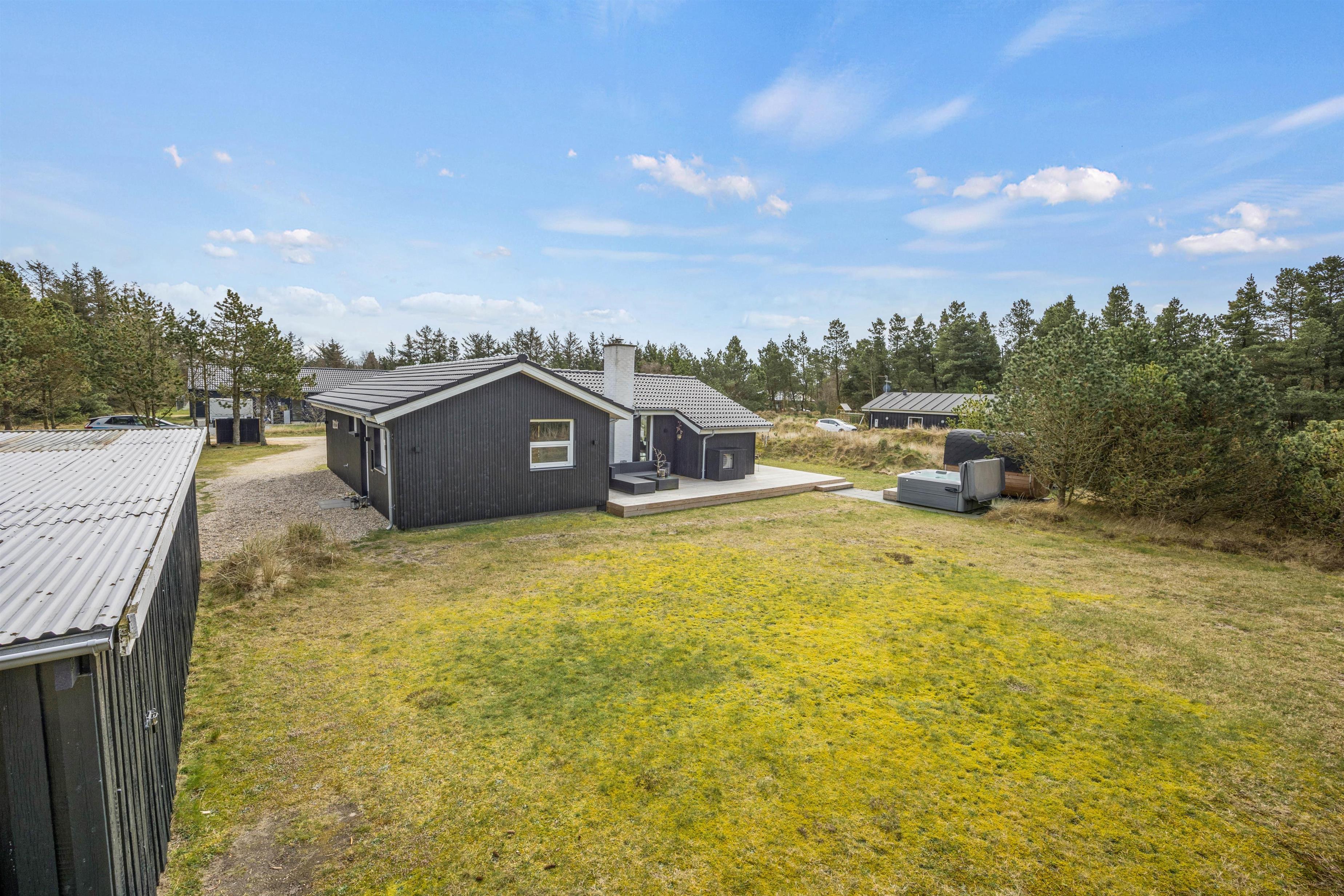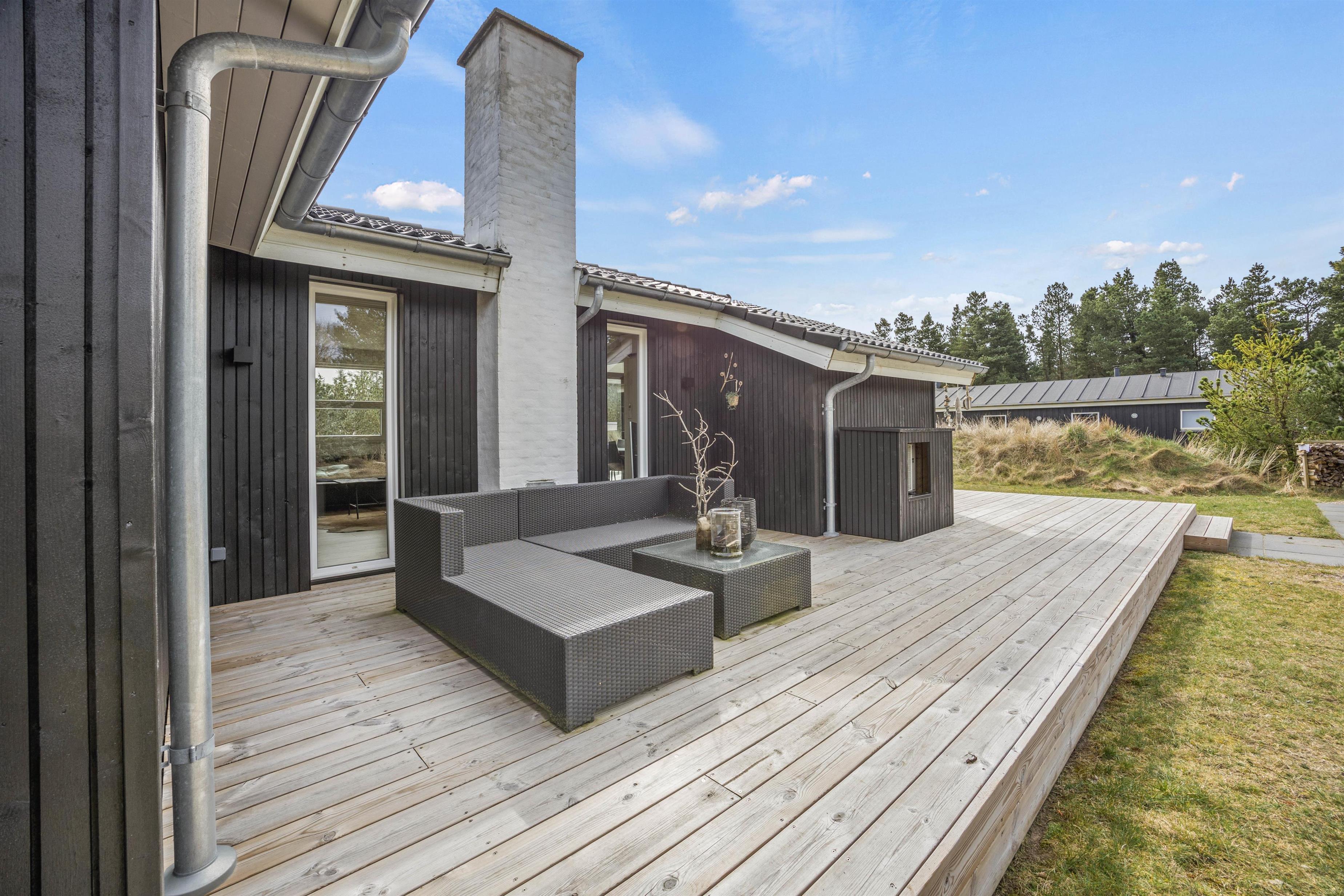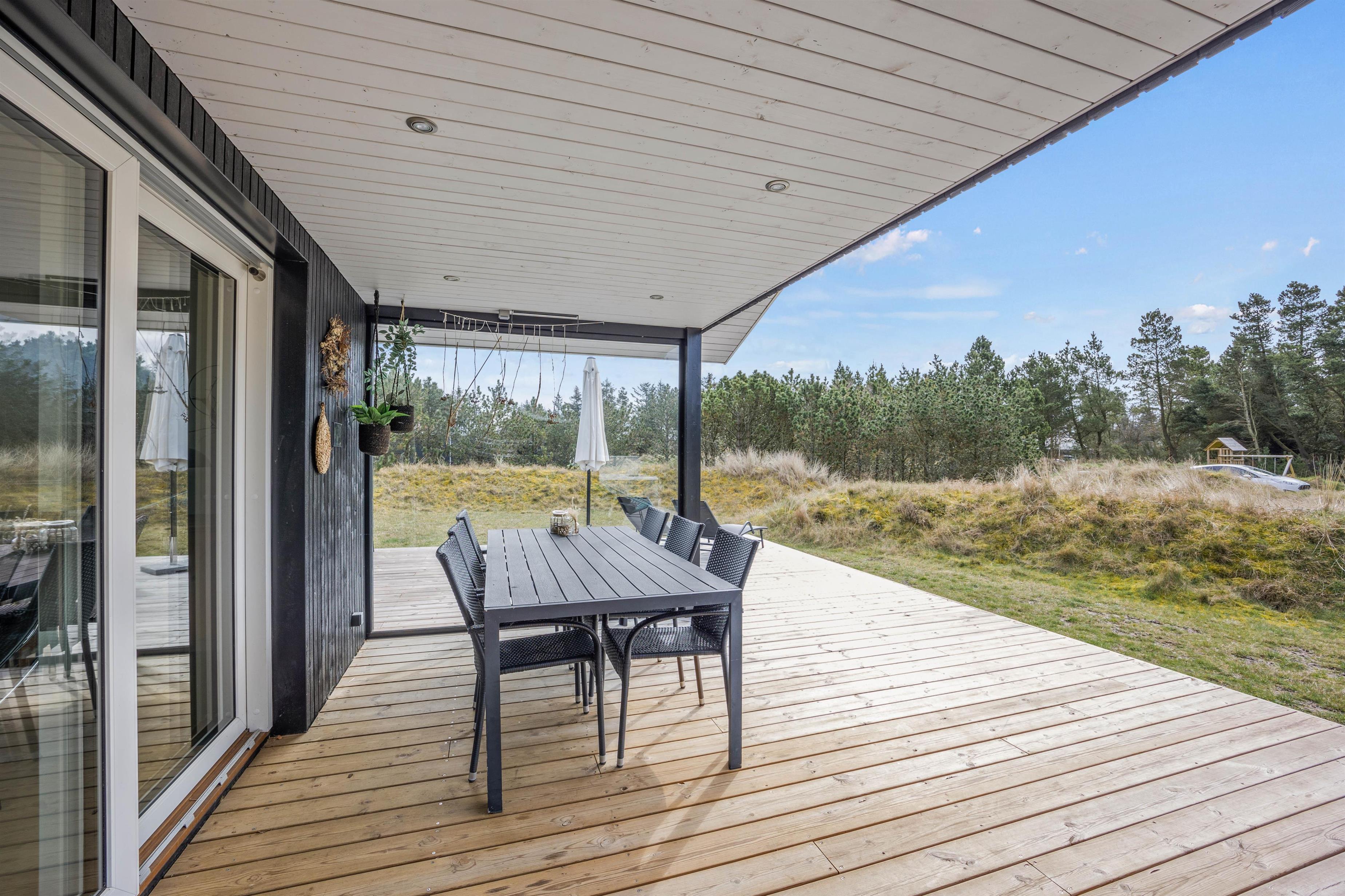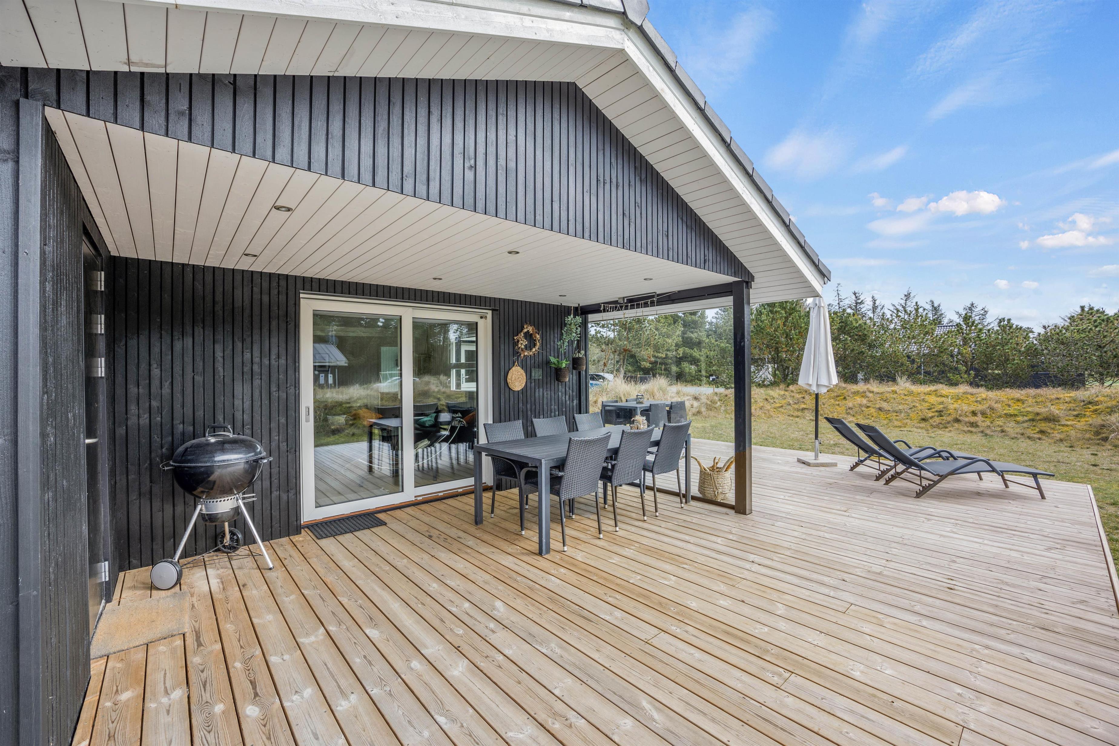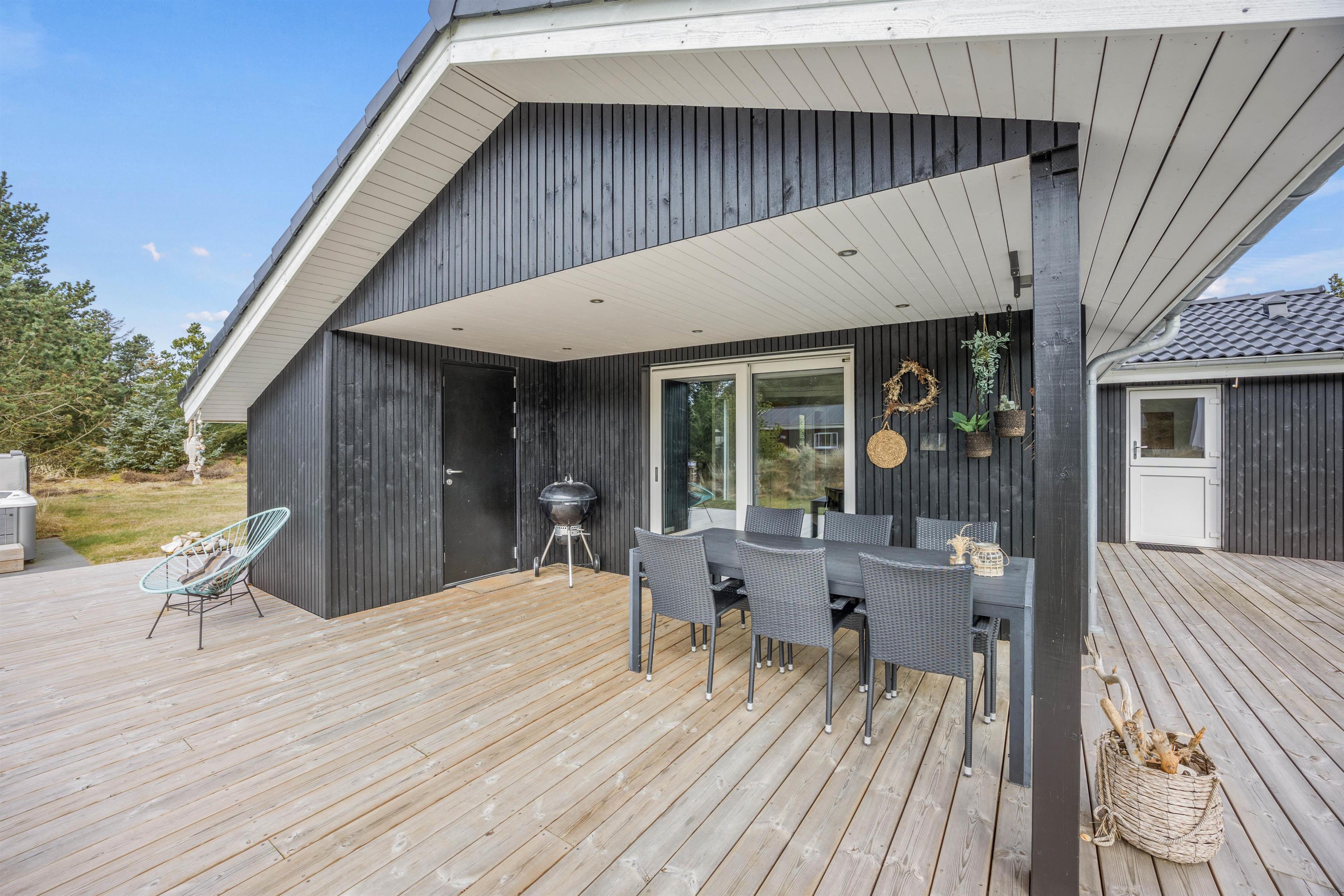 Huset har både en overdækket og en åben terrasse, hvor alle kan finde deres plads i solen. Der er både sørget for havemøbler, liggestole og en grill, så I kan slappe af i det gode vejr og de naturskønne omgivelser.