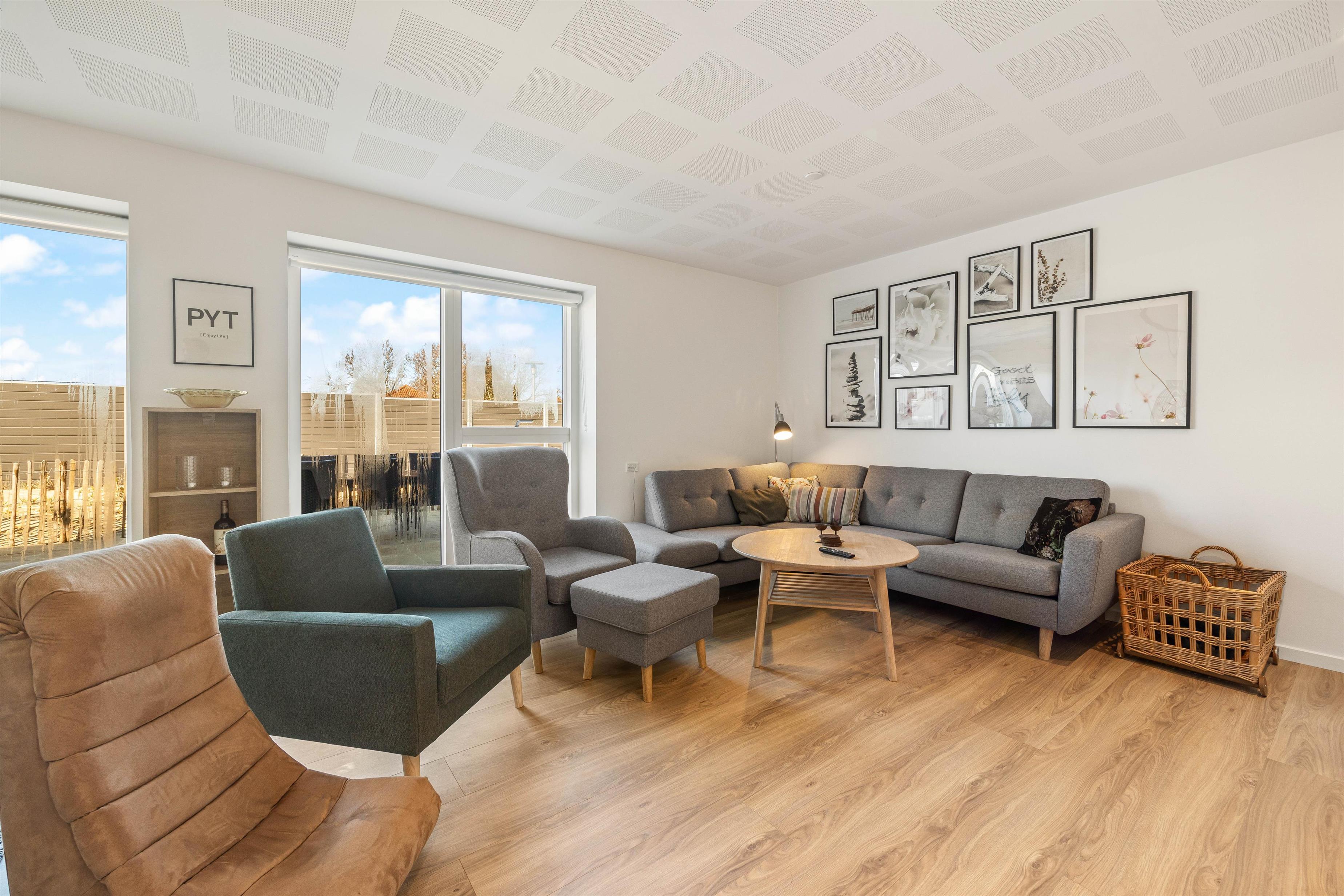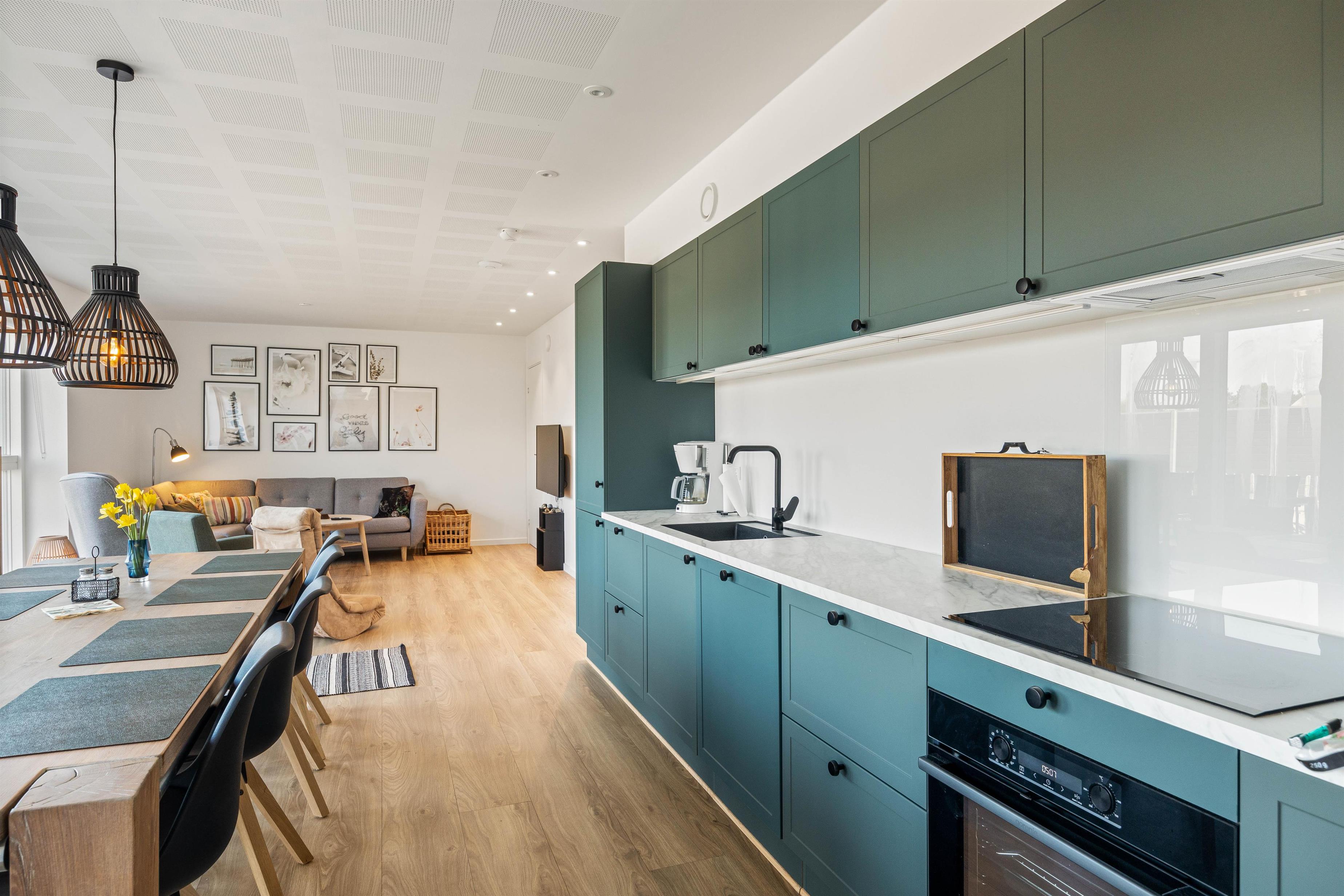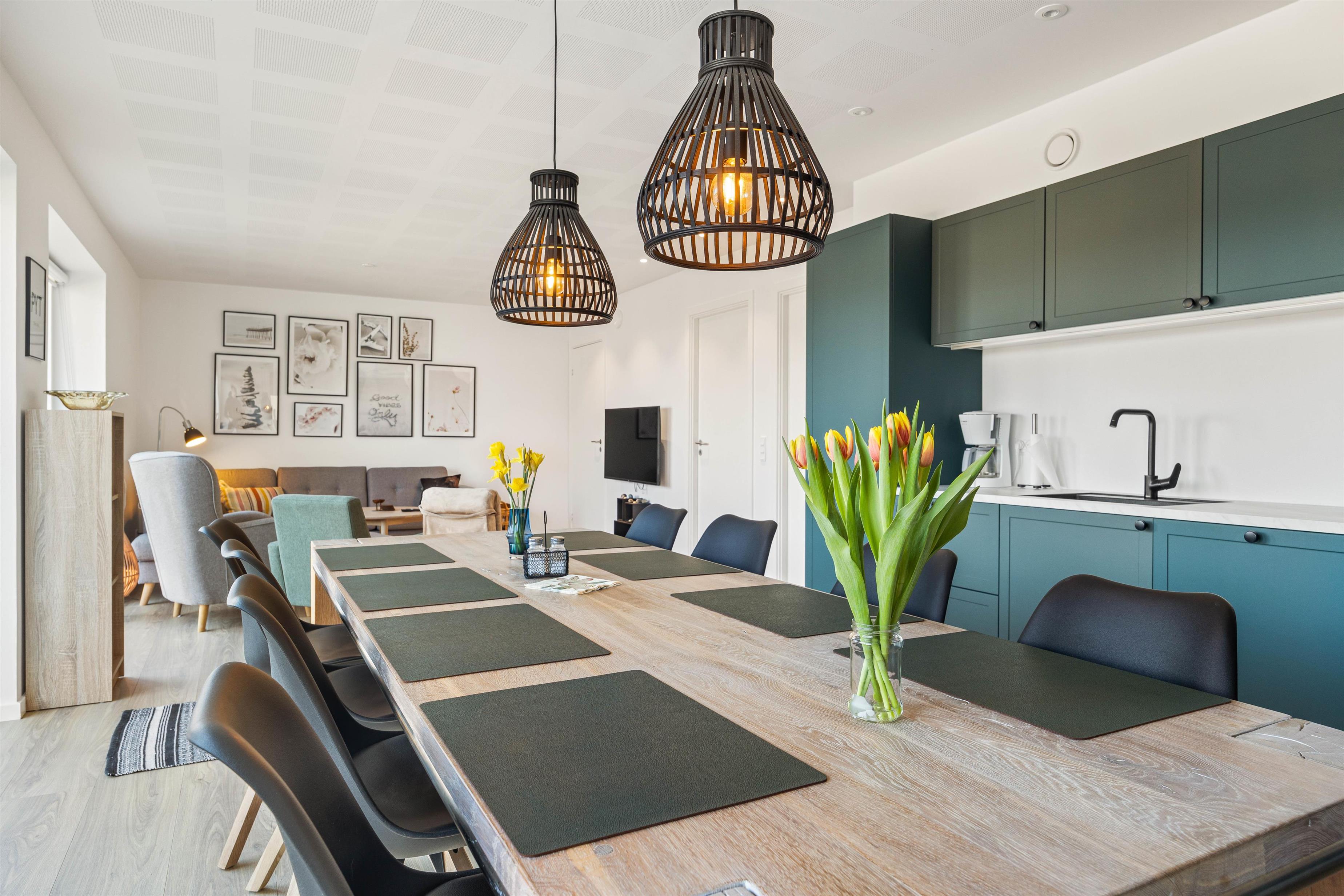 Indendørs i ferielejligheden vil I opleve en moderne og lys indretning, der sammen med det gode lysindfald er med til at skabe den rette ferieatmosfære – der er ingen tvivl om, at I vil føle jer godt tilpas her!