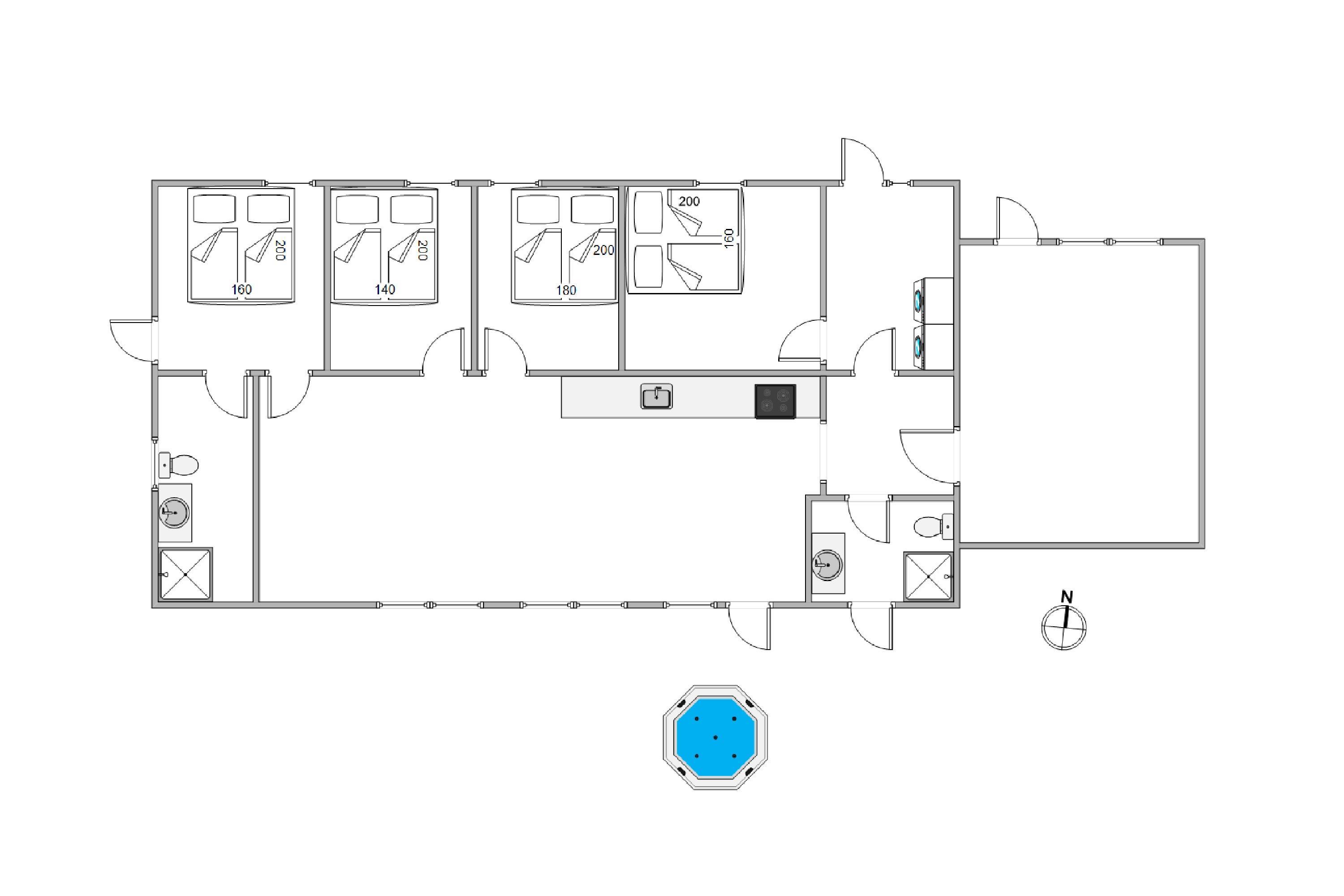 I denne 143 kvadratmeter store ferielejlighed venter jer 4 gode soveværelser, der alle er indrettet med dobbeltsenge, hvor I kan samle ny energi til feriedagene i Blåvand. Næste morgen skal I ikke bekymre jer om kø til badeværelset, da I har 2 badeværelser i feriehuset. Både på badeværelserne, soveværelserne og i opholdsrummet har I gulvvarme, så I slipper for kolde fødder i løbet af ferien.