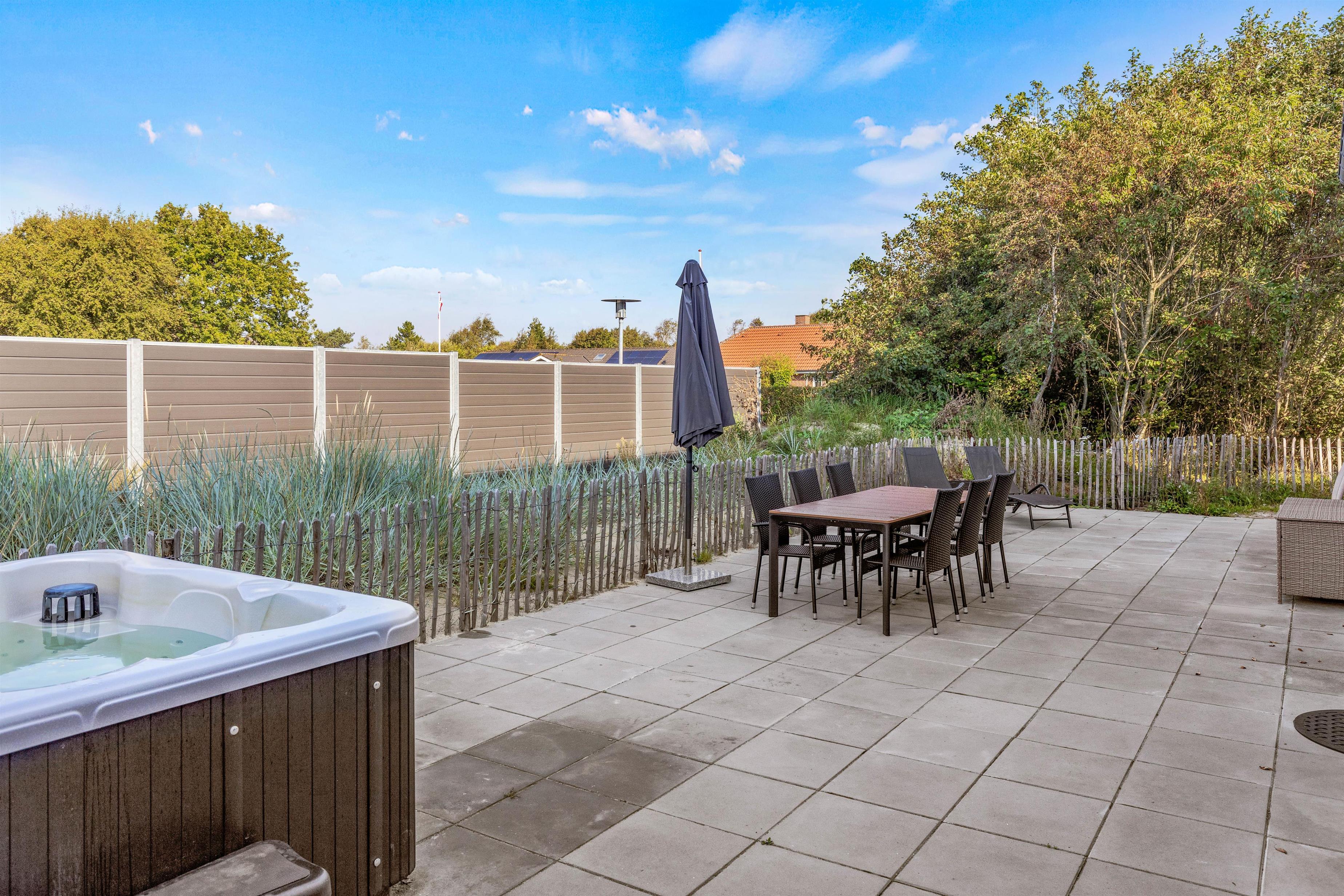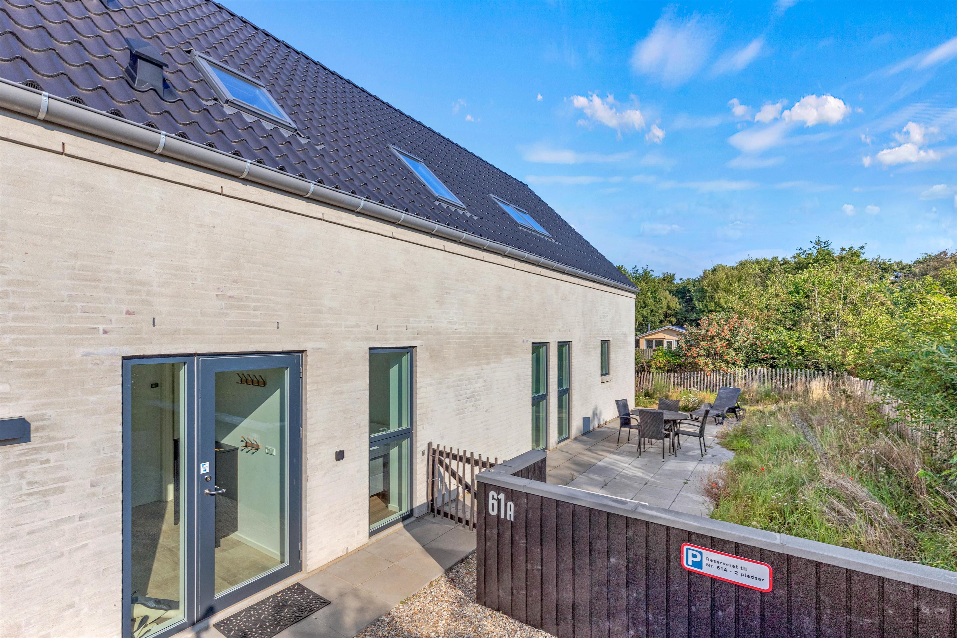 Udendørs venter jer et skønt udeområde, hvor I virkelig kan nyde de varme og solrige feriedage. Her har I en terrasse, hvor I kan sætte jer til rette i havemøbler og liggestole, mens I nyder solens varme stråler. På terrassen kan I også sagtens have jeres hund med, da terrassen er afskærmet og lukket.