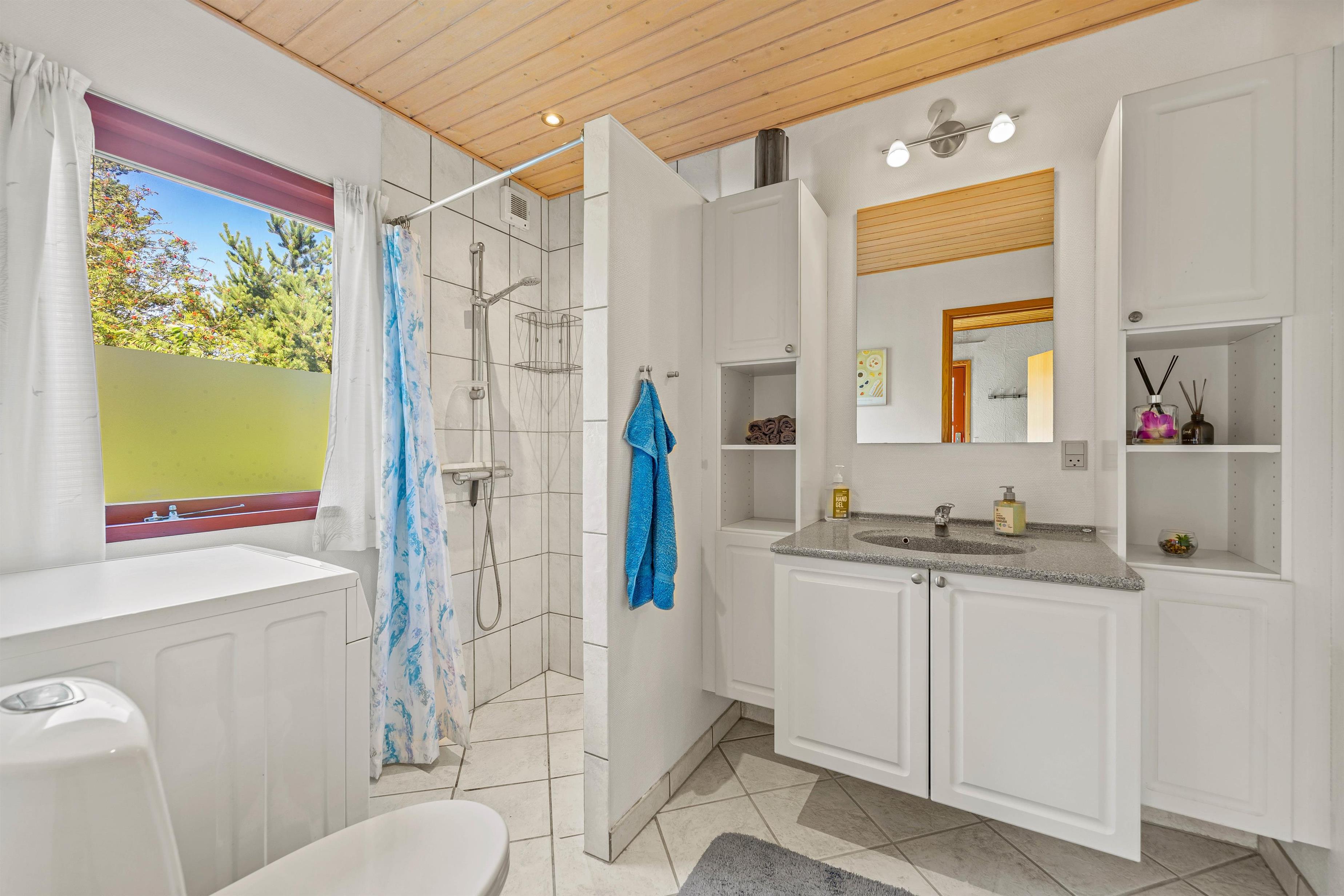 De 3 soveværelser er alle indrettet med dobbeltsenge, og i badeværelset med gulvvarme er der også en vaskemaskine, så man kan vaske tøjet, hvis det er blevet beskidt eller vådt på strandturen. Et godt sparetip: brug varmepumpen til opvarmning og spar på el-omkostningerne.