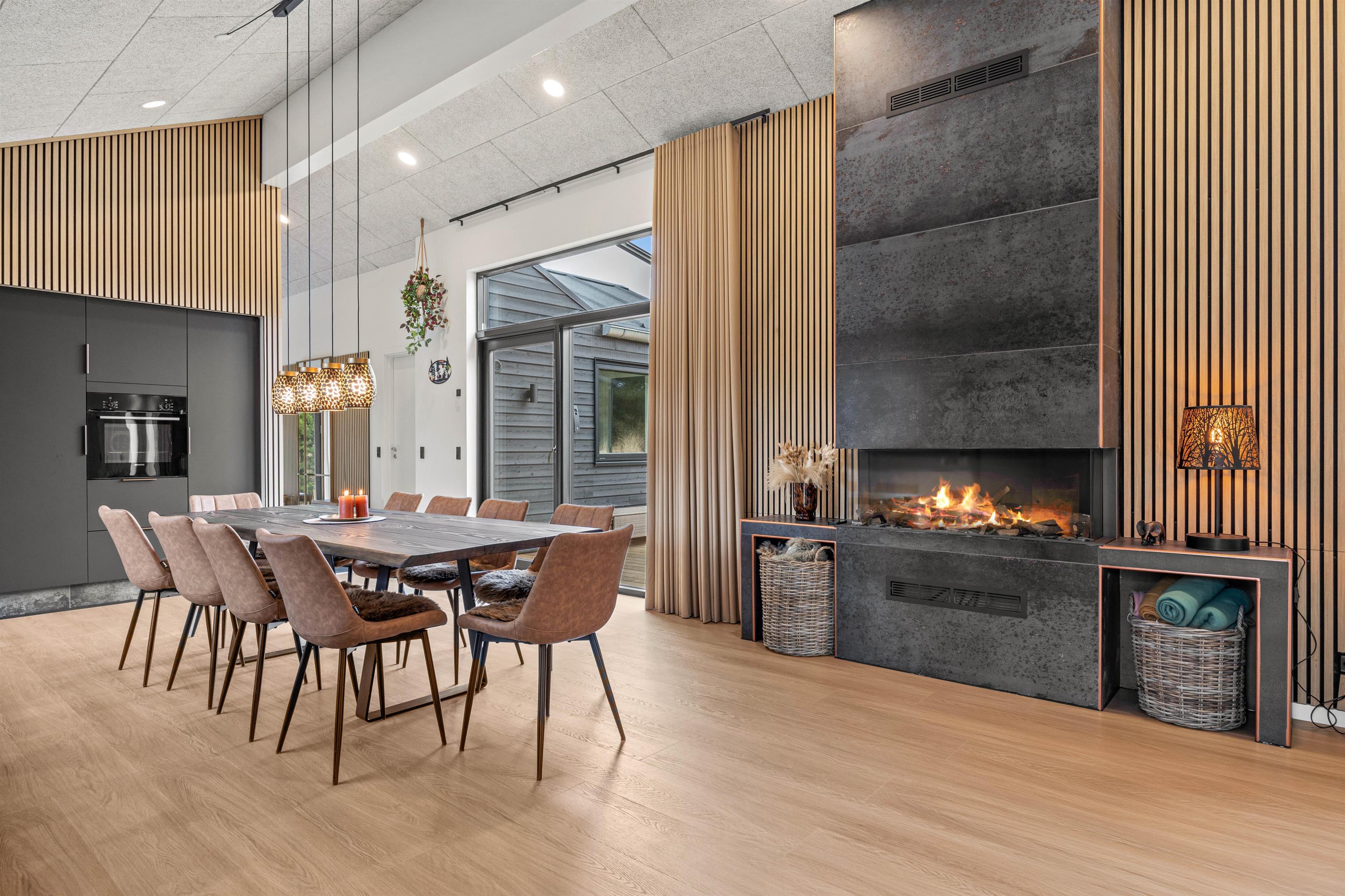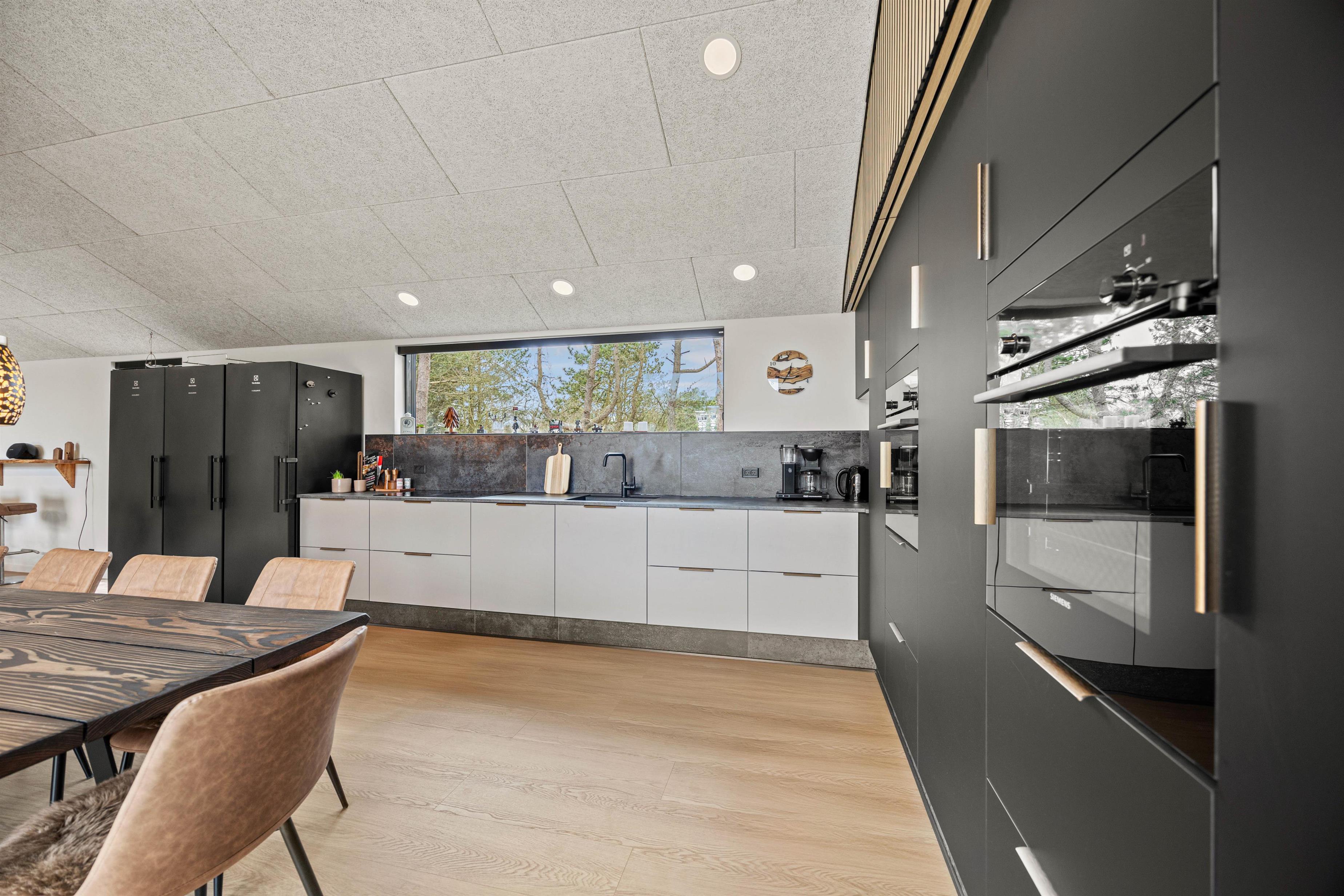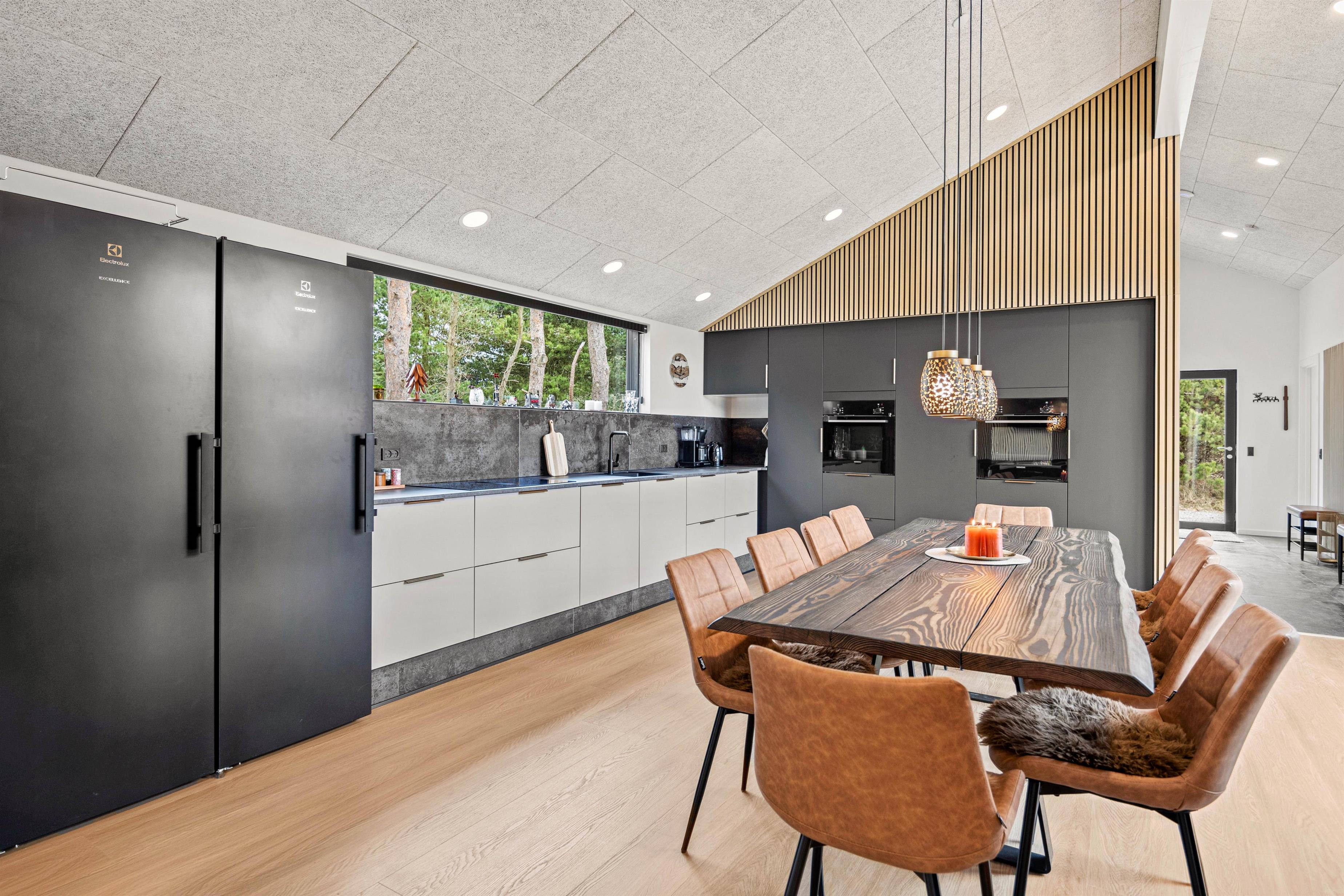 Indenfor i sommerhuset møder I en indretning, der oser af charme og omhu for detaljen. Husets hjerte er det åbne køkkenalrum, hvor I kan nyde varmen fra en hyggelig gaspejs og fordele mad og drikke i hele 2 køle/fryseskabe.