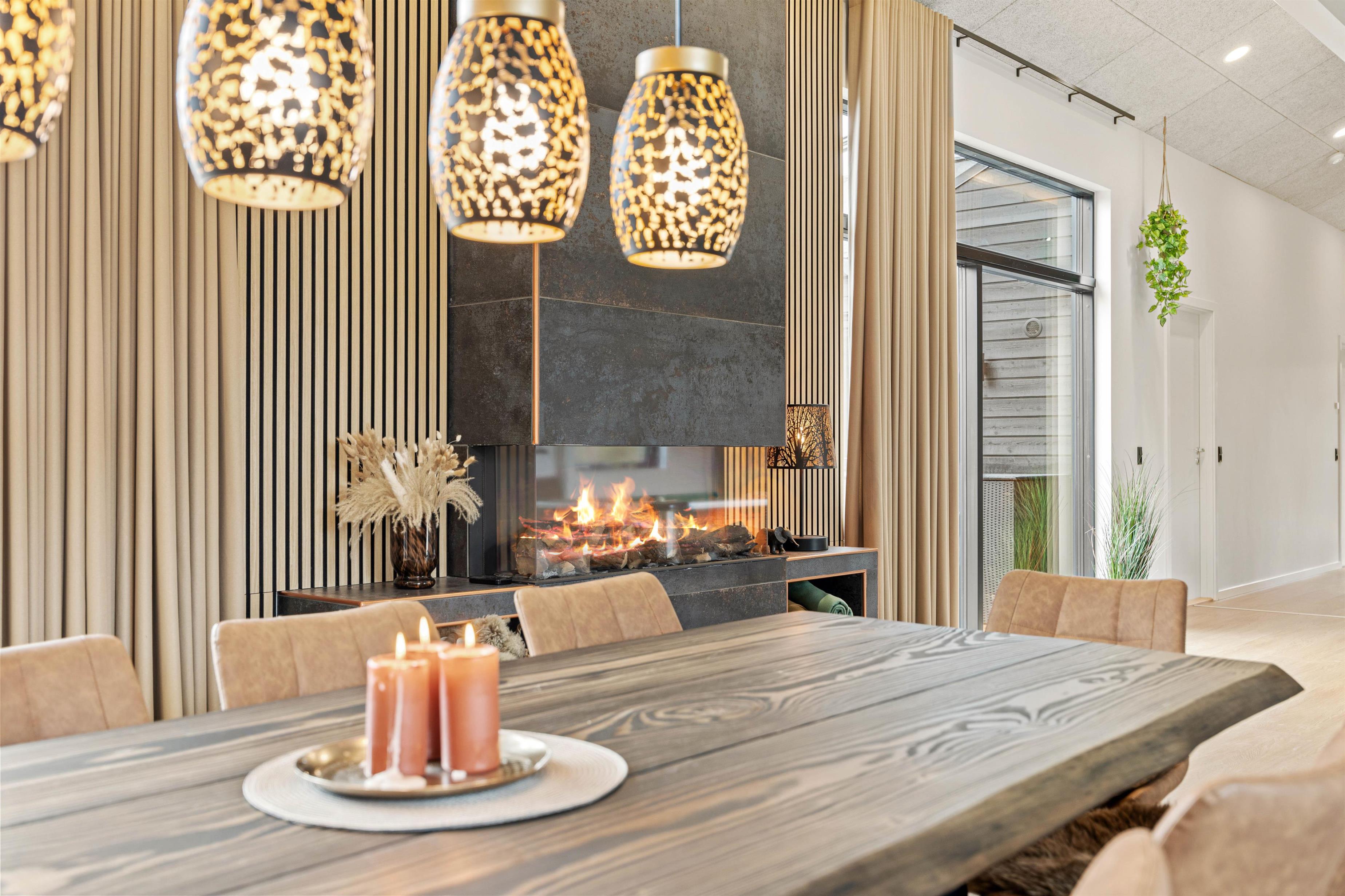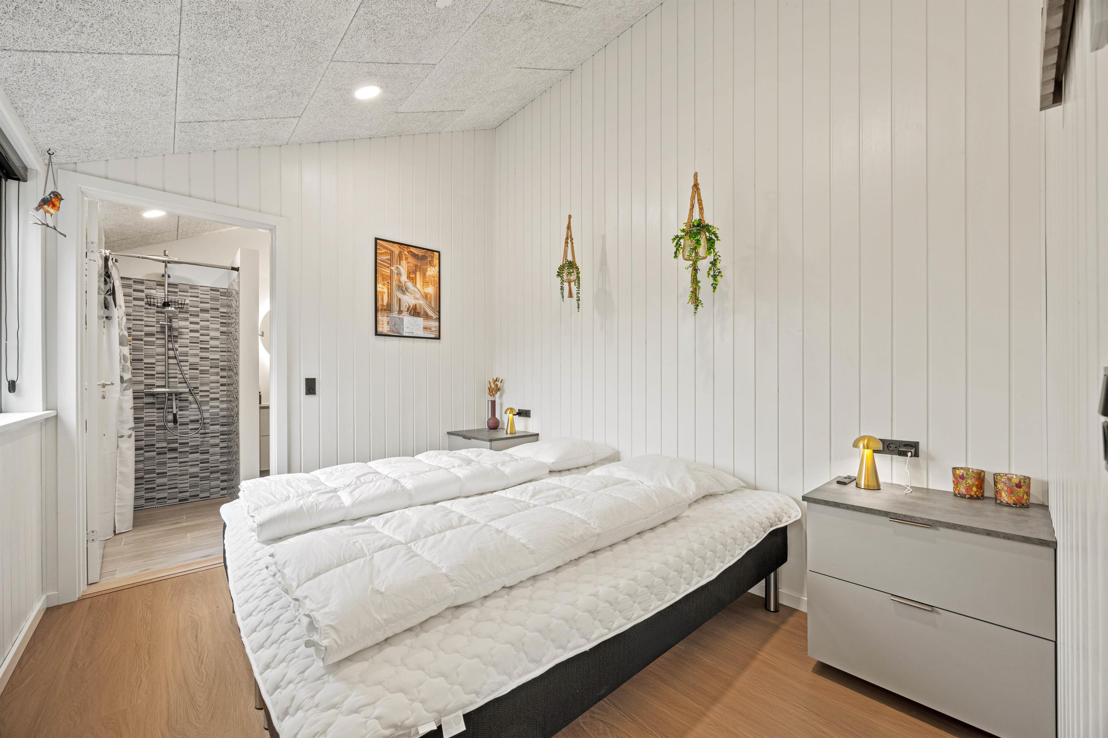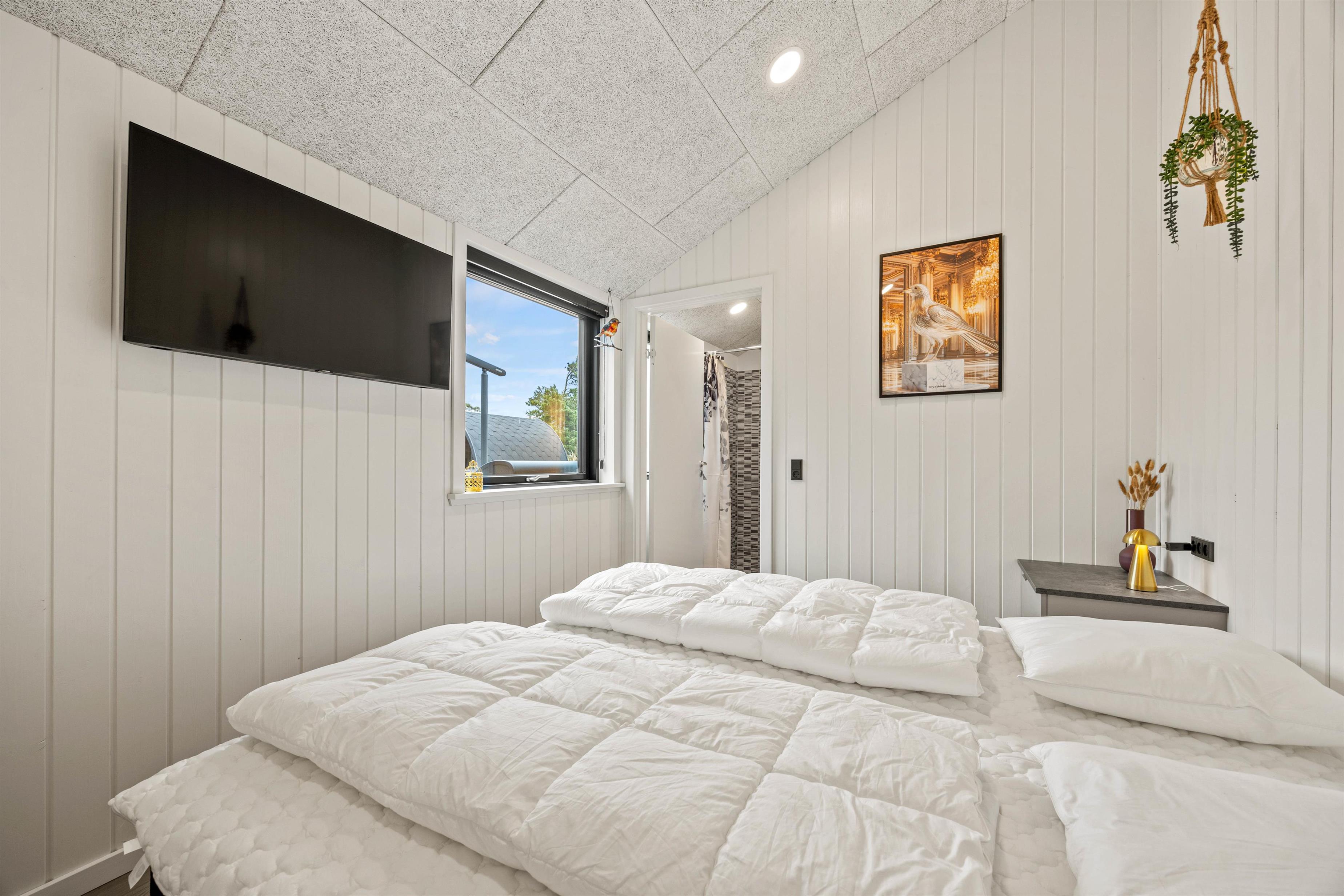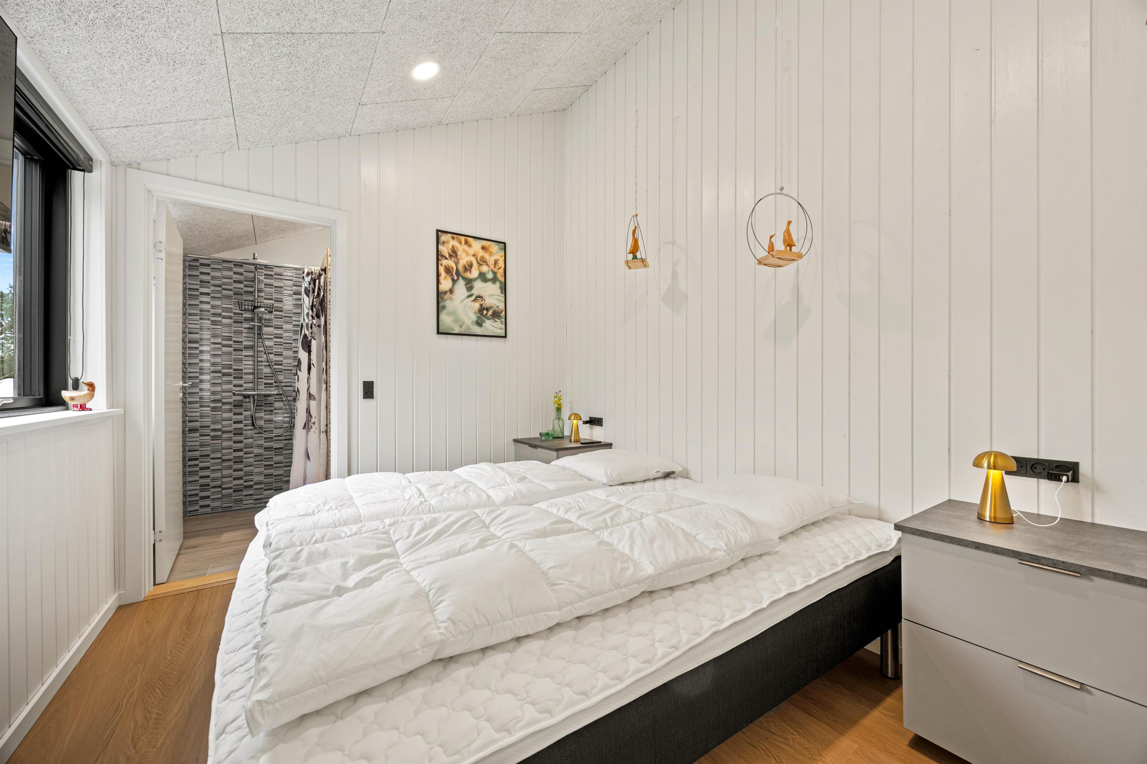 Indenfor i sommerhuset møder I en indretning, der oser af charme og omhu for detaljen. Husets hjerte er det åbne køkkenalrum, hvor I kan nyde varmen fra en hyggelig gaspejs og fordele mad og drikke i hele 2 køle/fryseskabe.