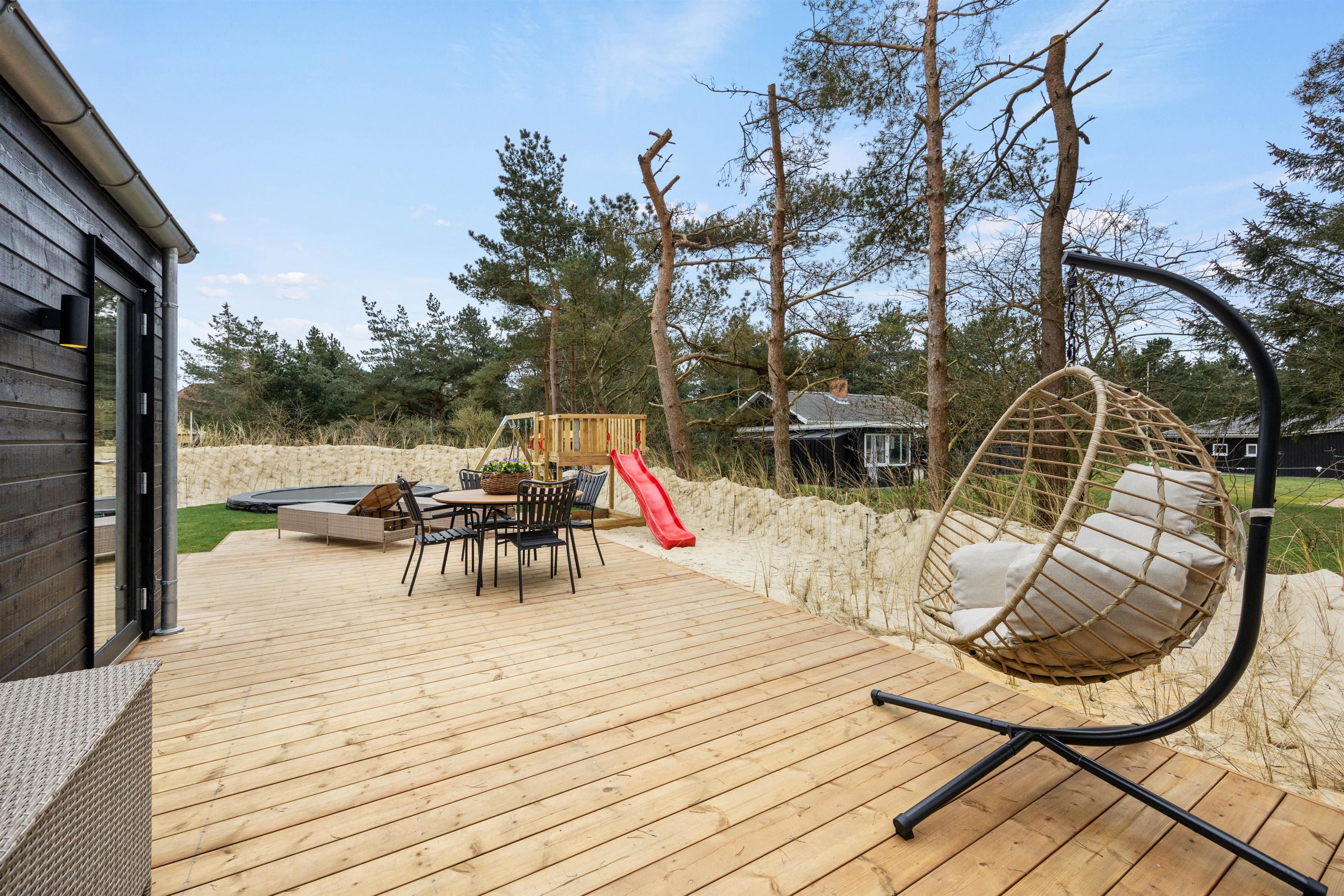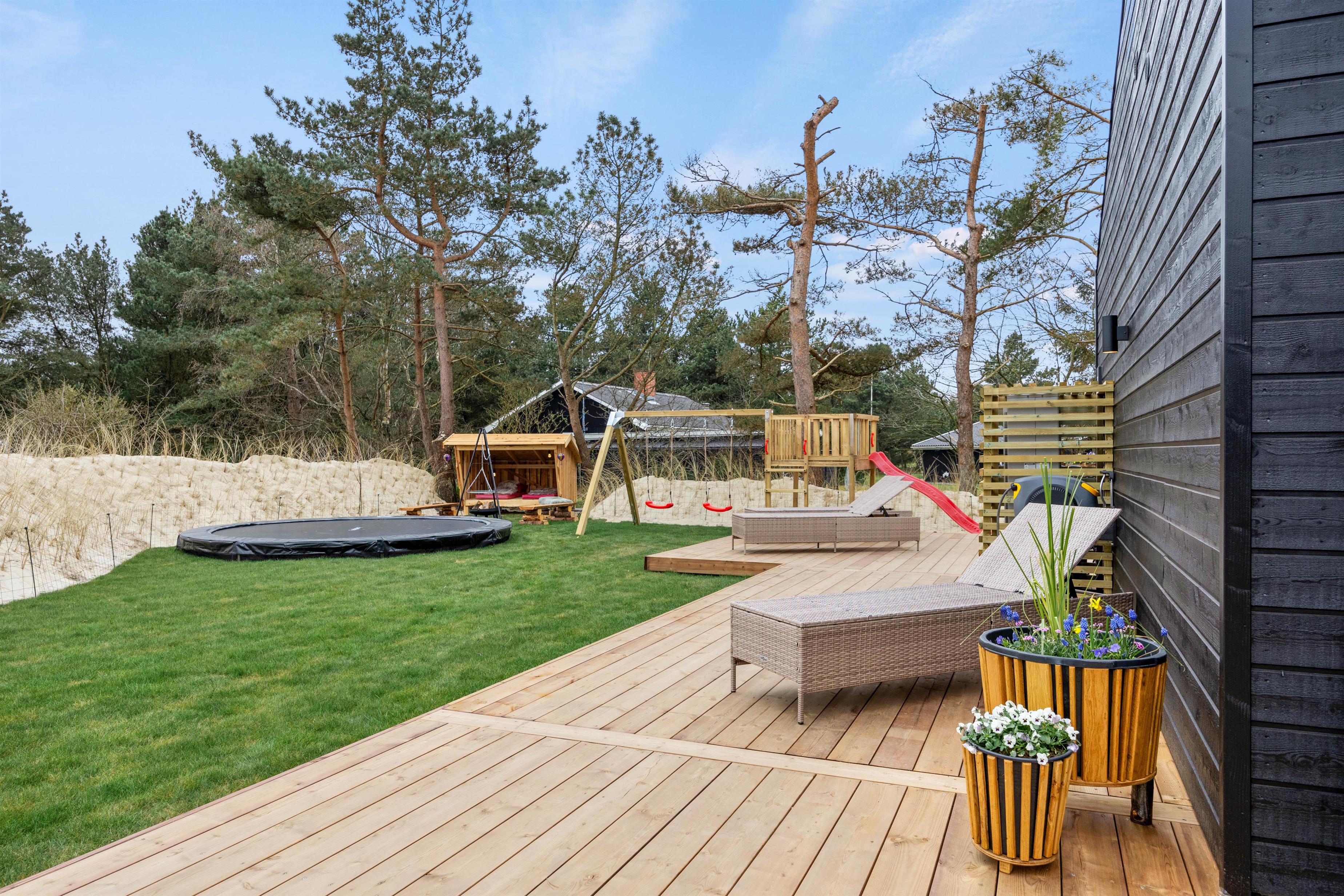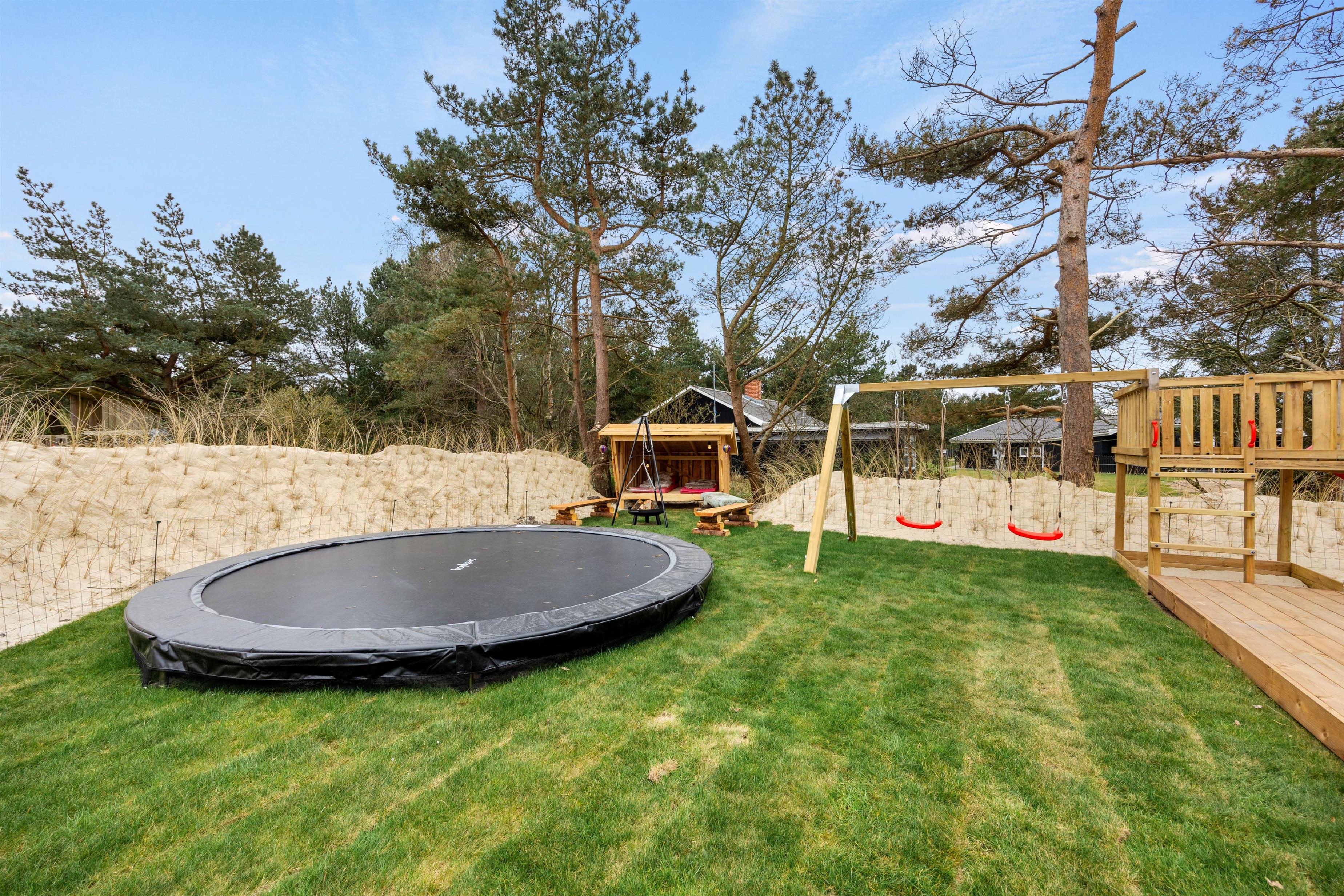 Fra terrassen breder der sig en udsigt over den store naturgrund, der er et sandt paradis for børnene med både trampolin, sandkasse og en gynge, og jeres hunde er der også tænkt på, idet der er lavet en indhegning til dem.